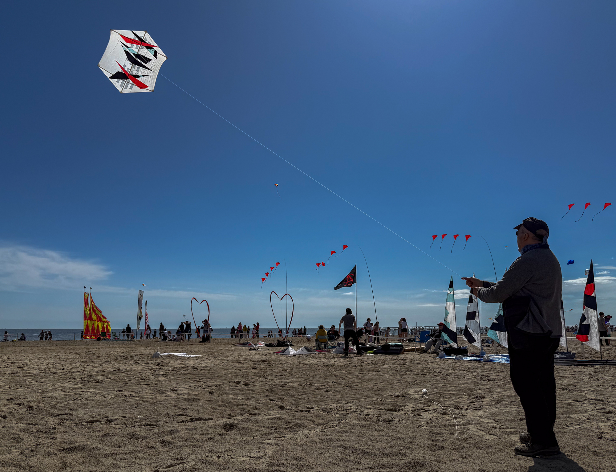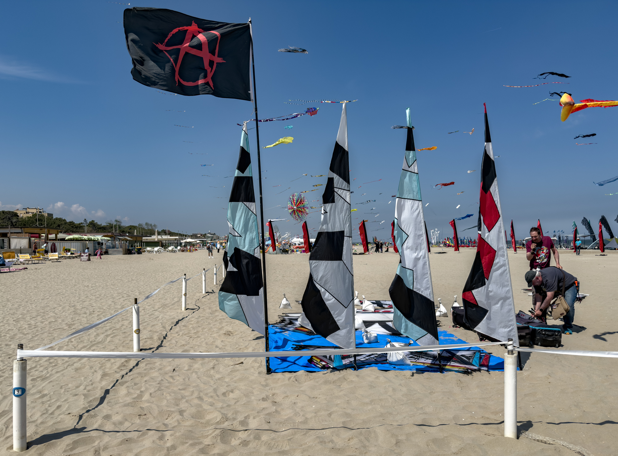 9:02am, 1st May 2025. The Rokkaku and Flare from Scott Skinner were set up first thing and flown with him soon after 10:00.