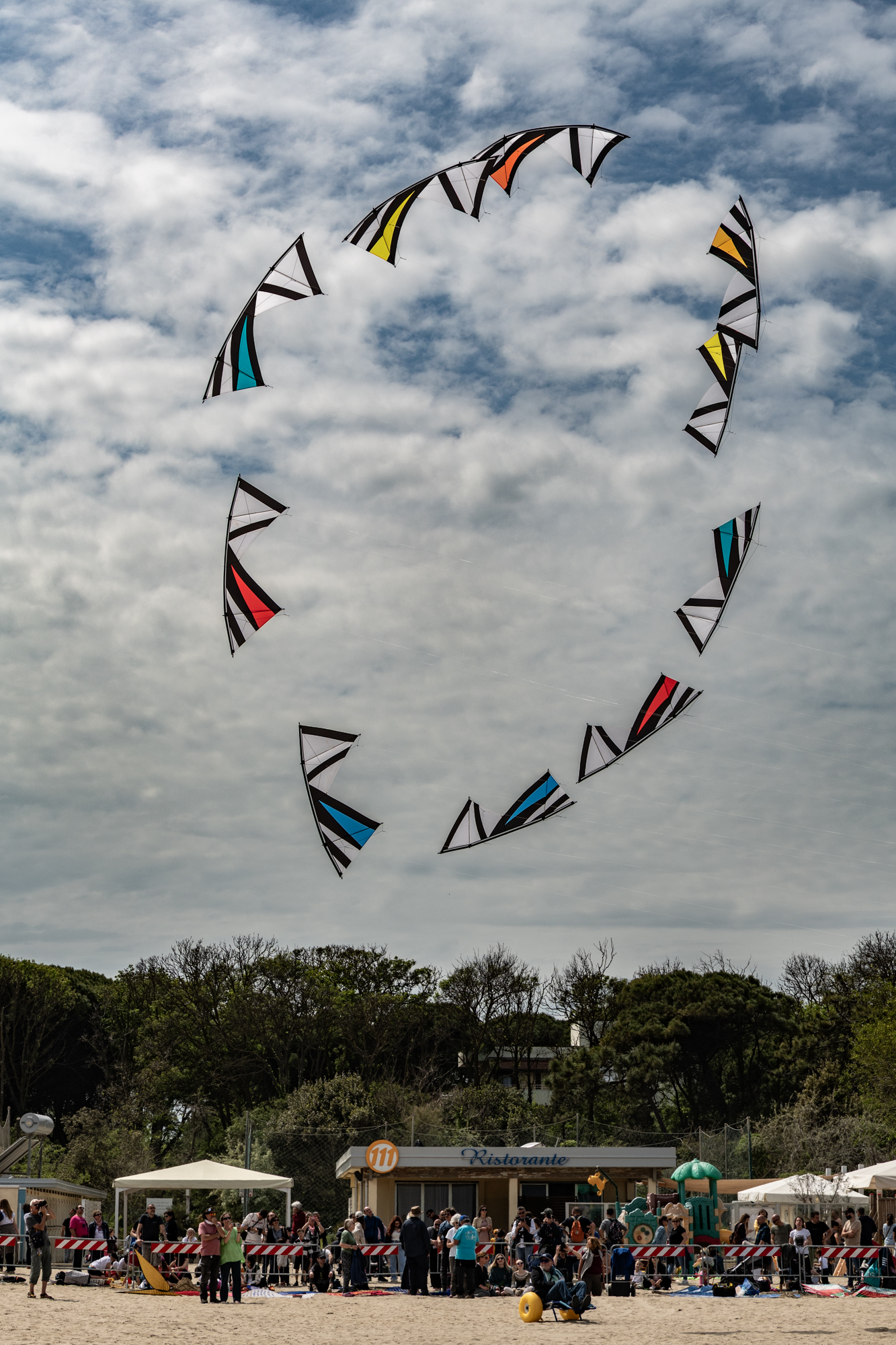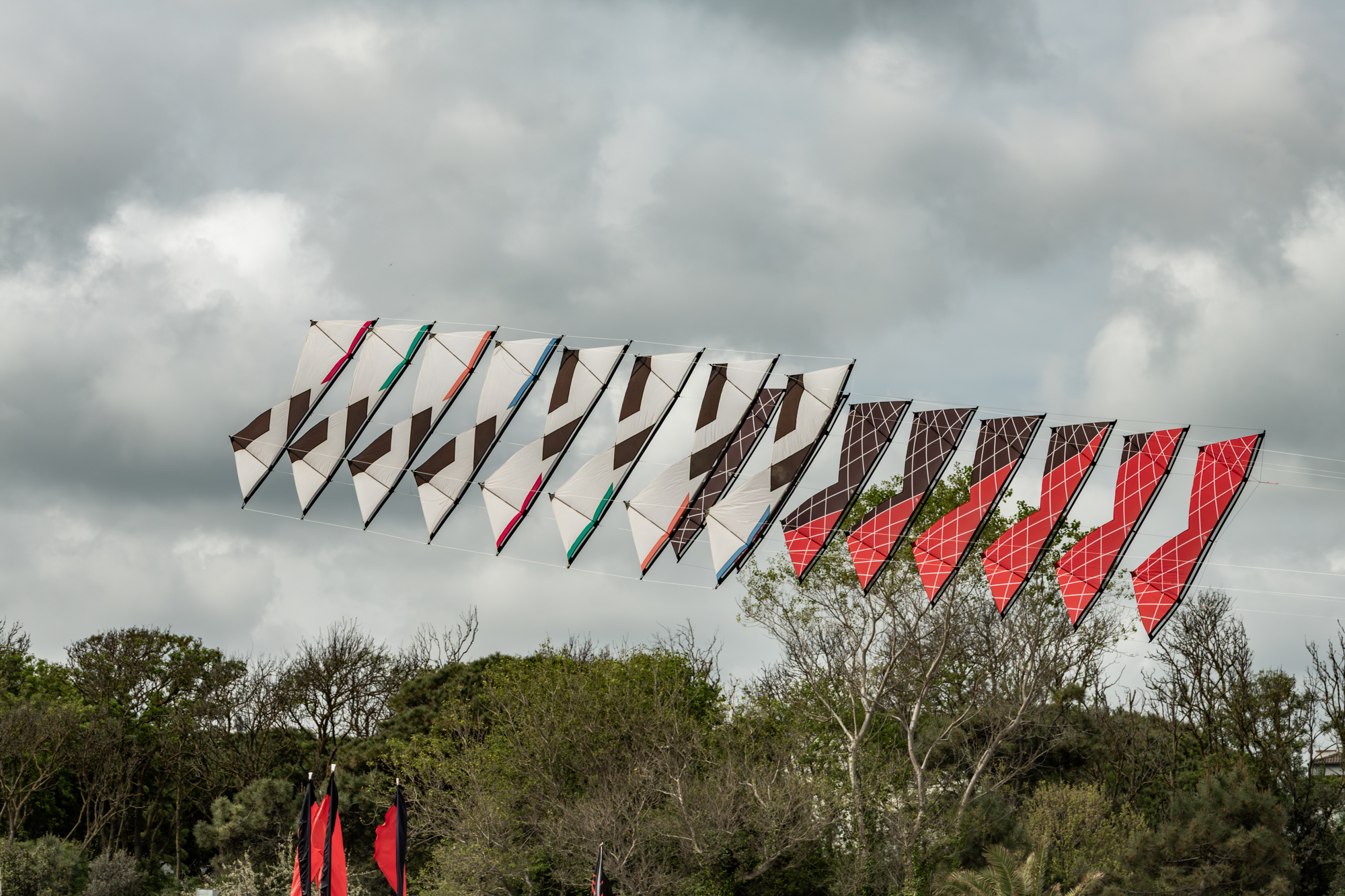 The 2008 Decs set needs some further adjustment as there are a few loose link lines and the final two kites are not engaging fully.