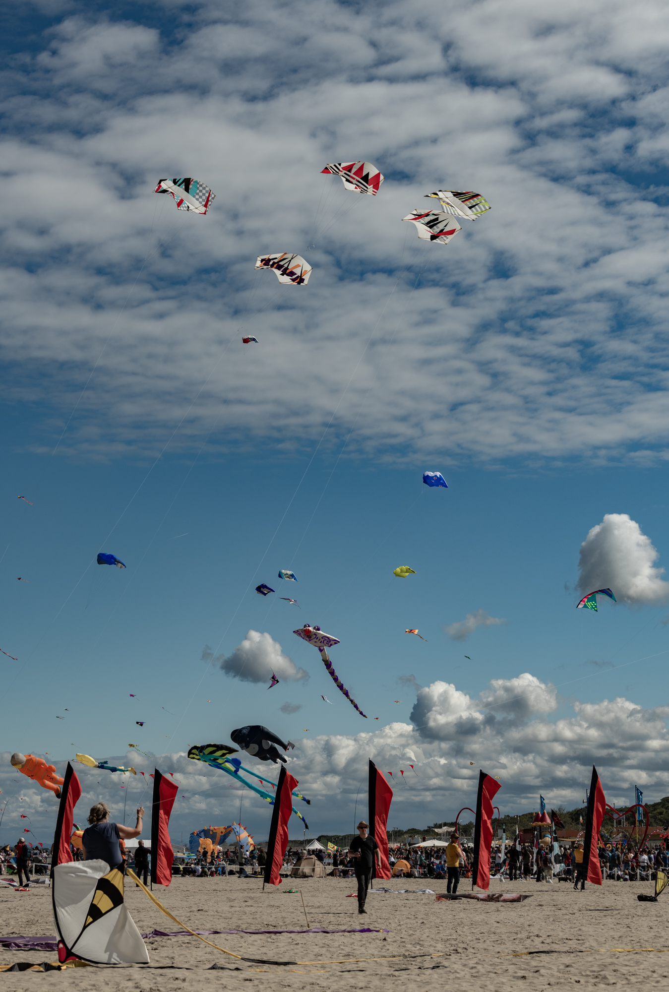 The wind conditions were near perfect and so the kites did not need to be worked in the sky. This was good because the fliers were not all experienced with flying large rokkaku kites.