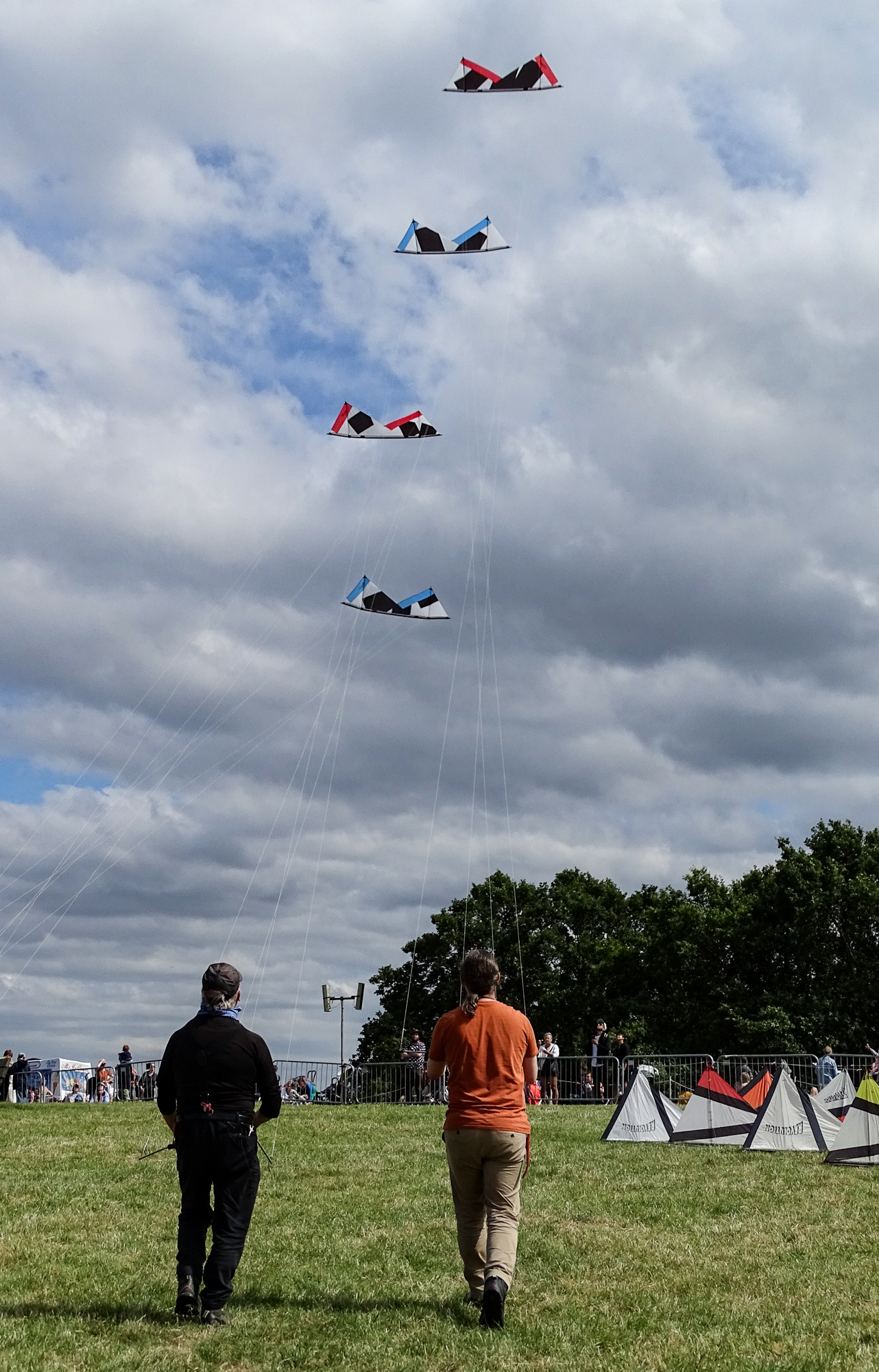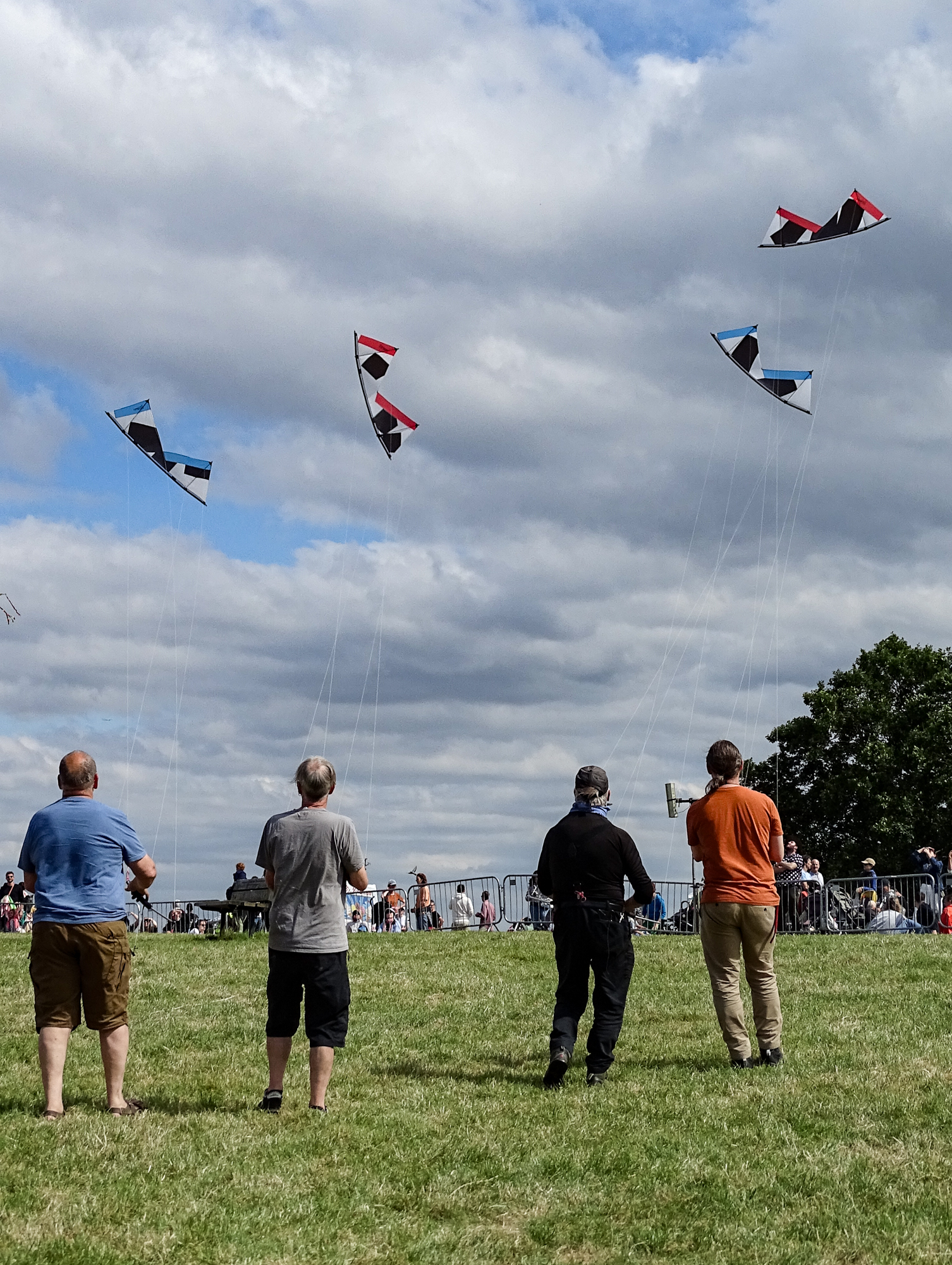 We took a selection of Jørgen Møller Hansen kites but the conditions and the proximity of other struggling fliers meant that we focused on flying the team kites on 100ft/30m lines and the Rev1 stack.