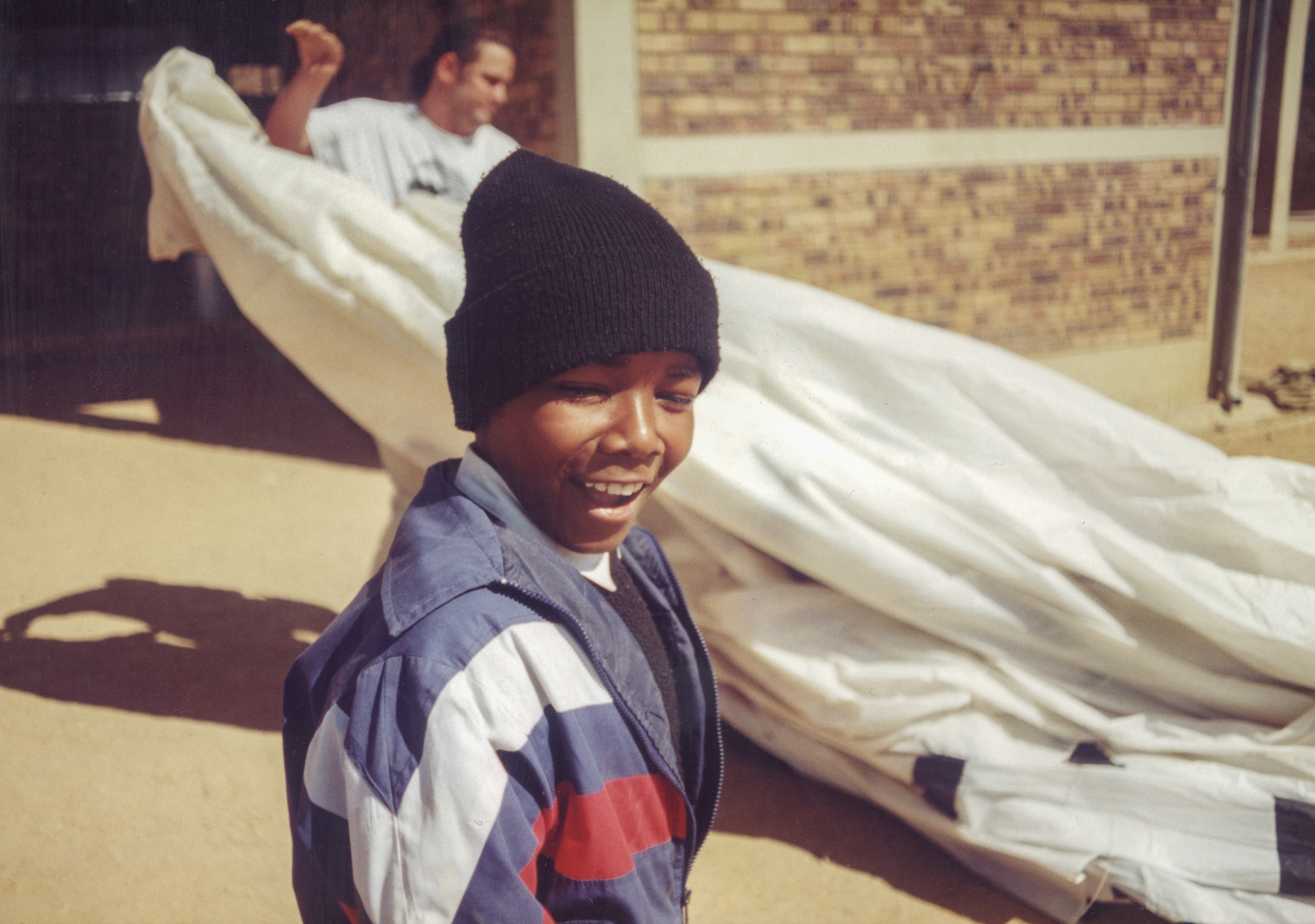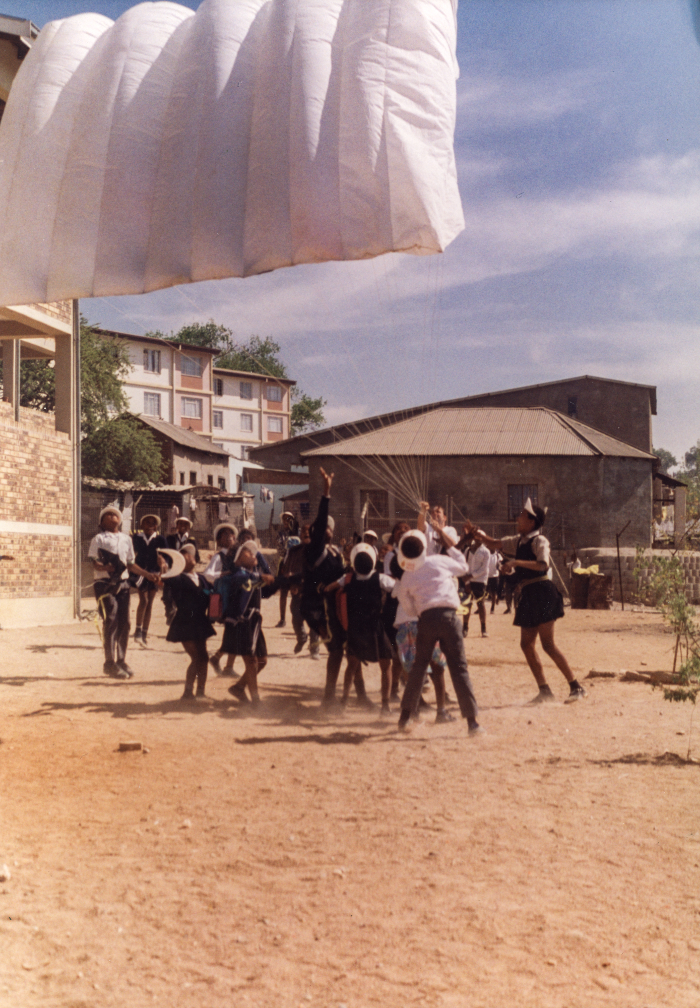 We flew the Parafoil on a short line at Alexandra in the school yard.