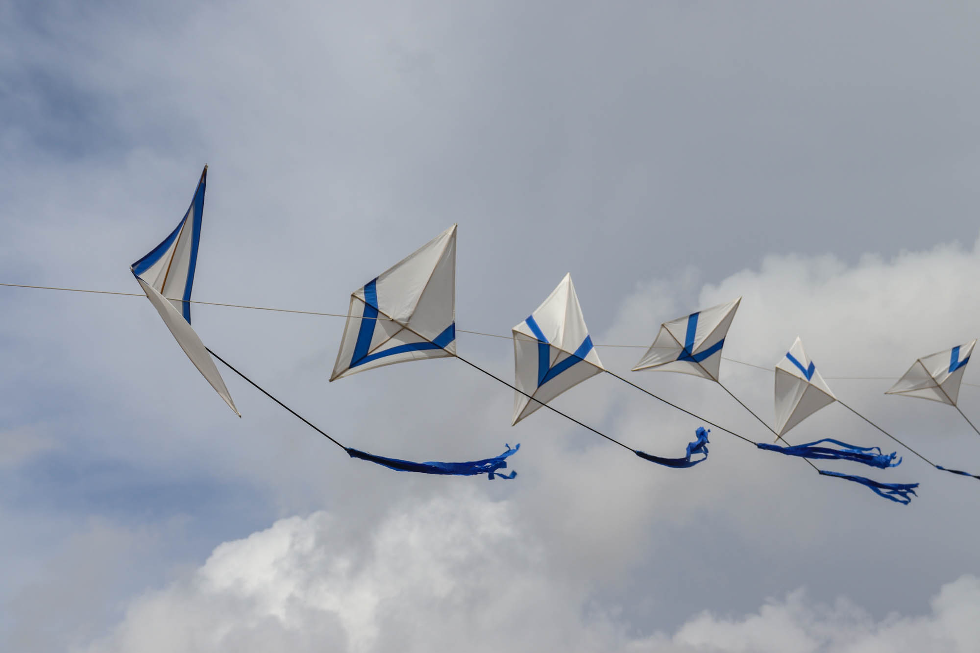 First time out for one section of the 81 kite JMH Rhombus-shaped kites 1985