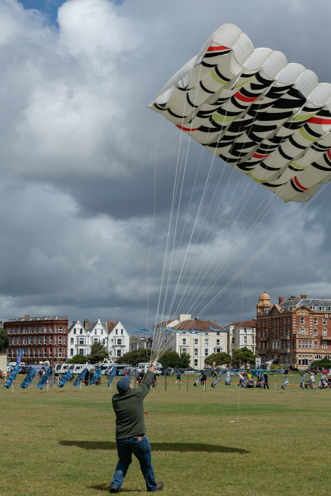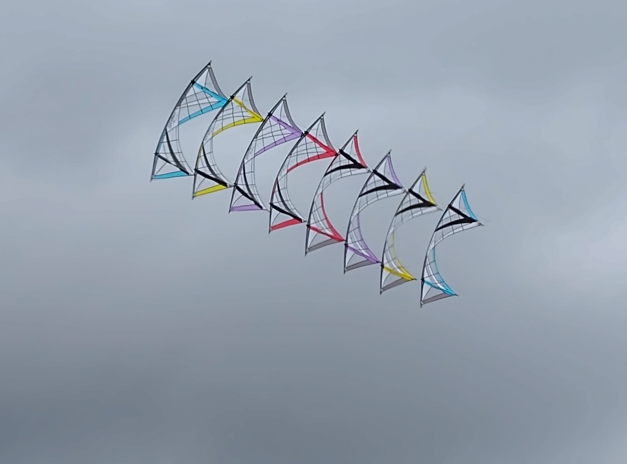 Setting up and launching the Double Malay stack was a challenge in the high wind. There were only a few broken spars. This was the first time that we used top end anchors while preparing the sails for launch in the upright position.