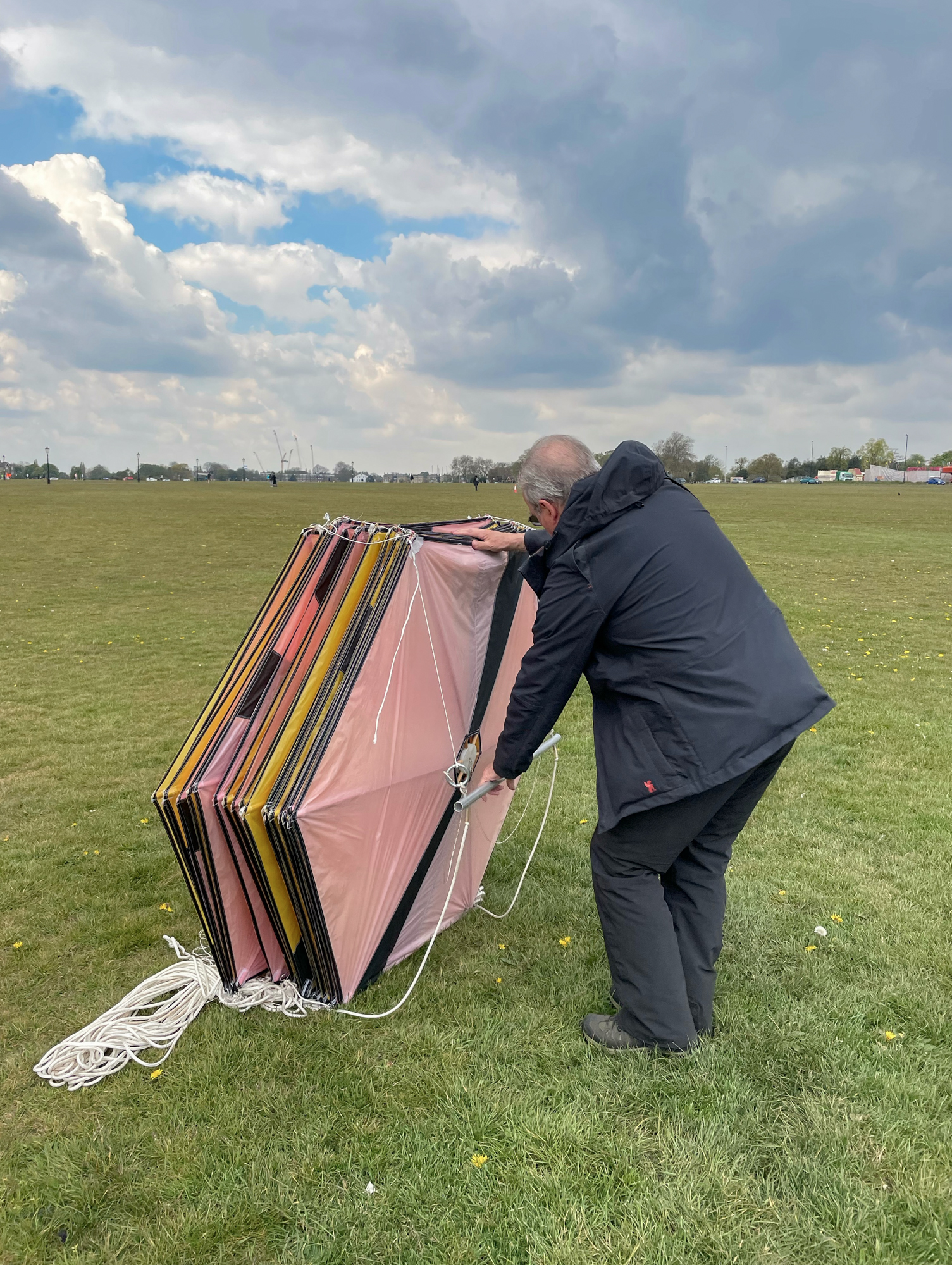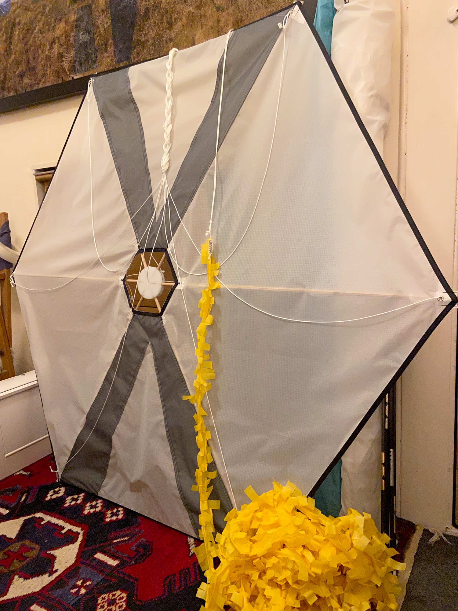 One yellow sail is missing and so a white and grey version will be made, like the pilot kite, to replace the missing element.