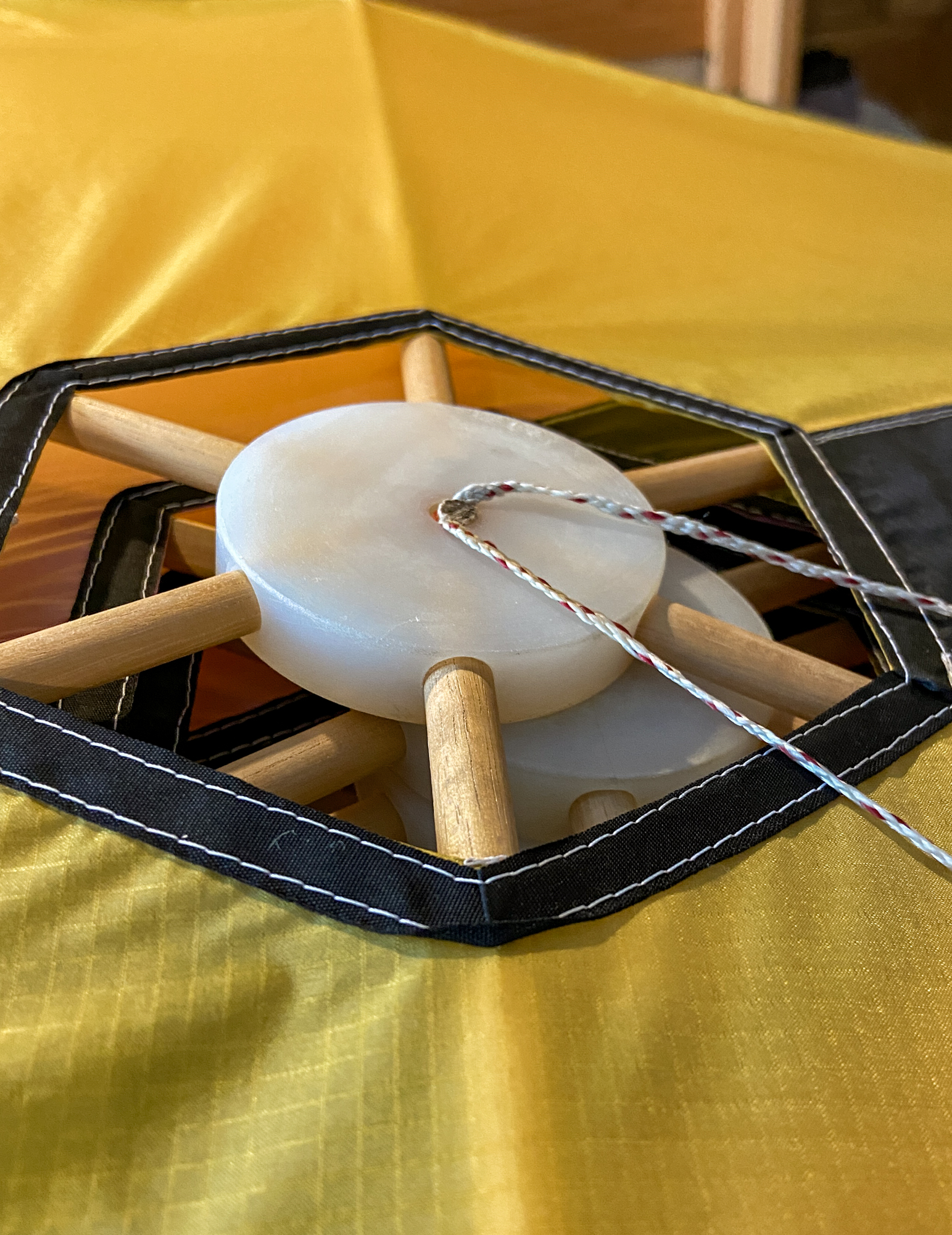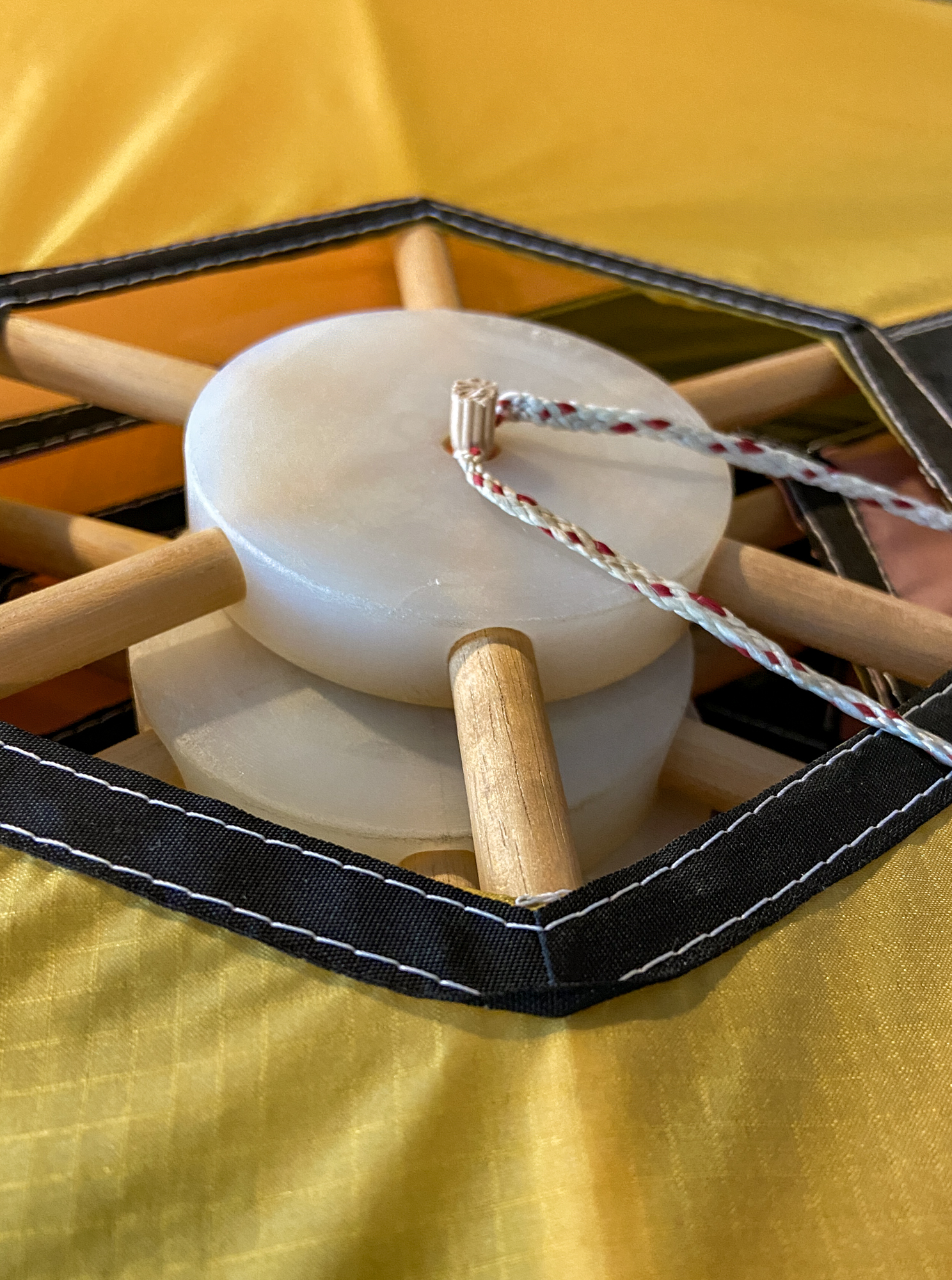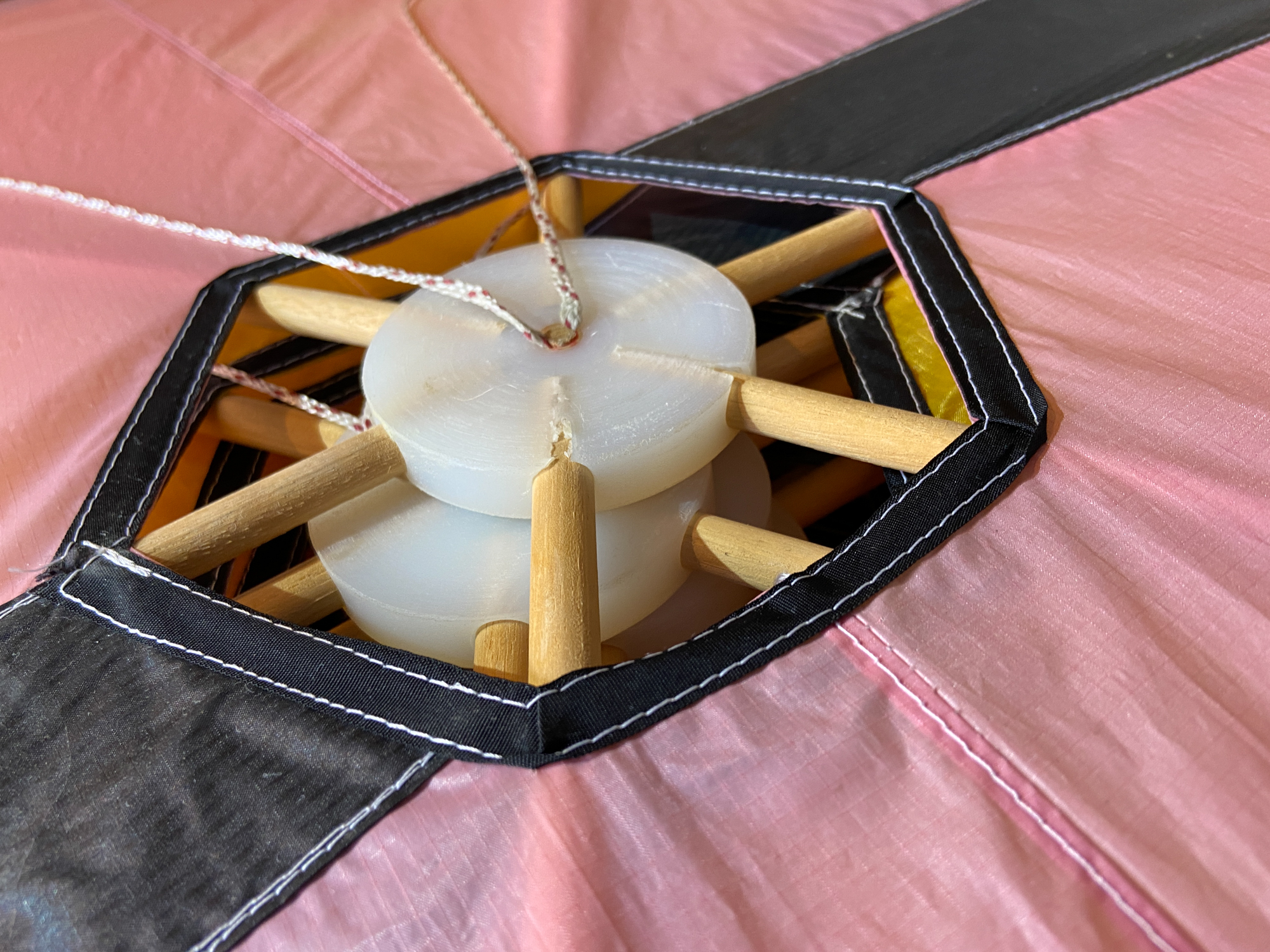 When preparing the lower stack for taking to the field to insert the missing sail I had noticed a twisted flying line and wondered how it would resolve. It did resolve without issue but a couple of the sails had been flipped and needed re-setting. Quite a few of the central fixing points had twists in the lines.