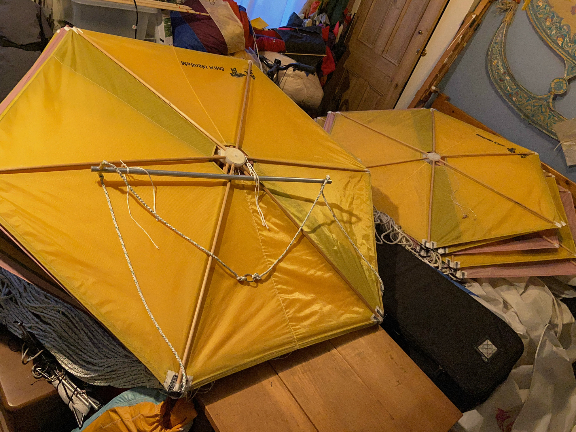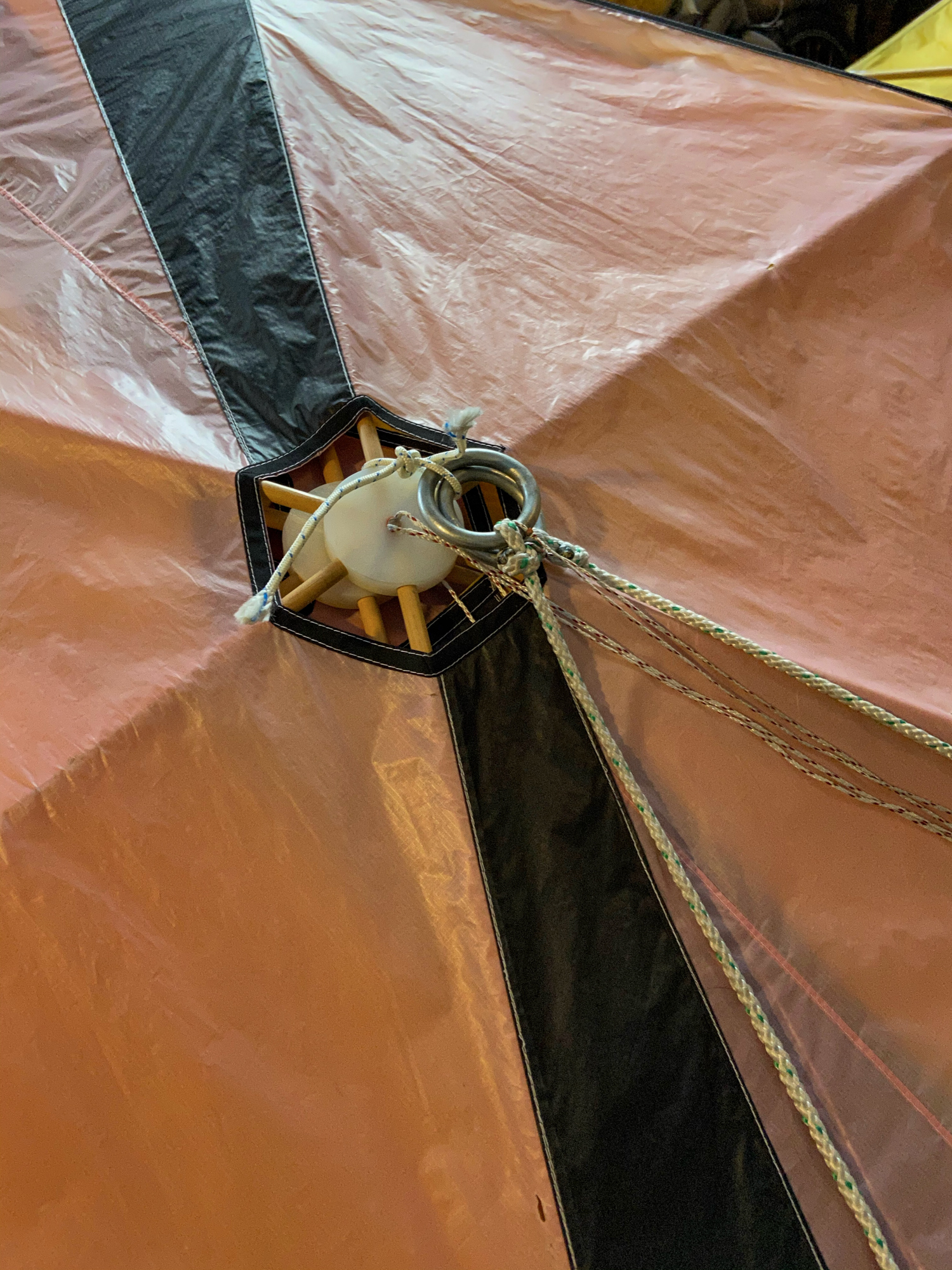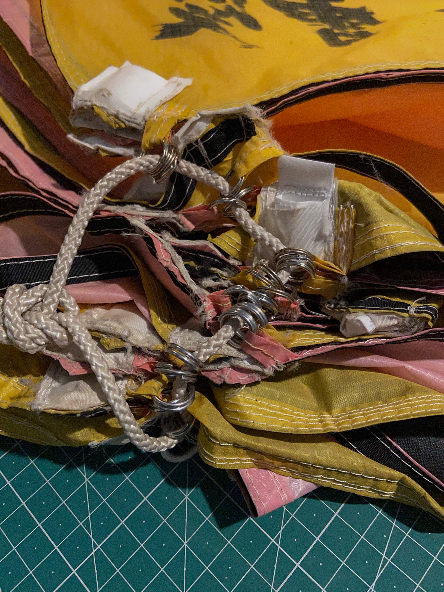 The main lines had been tied on the field and the bridle lines were looped in. In order to find the un-attached bridle loops everything had to be untied, not least, the apparent knots.