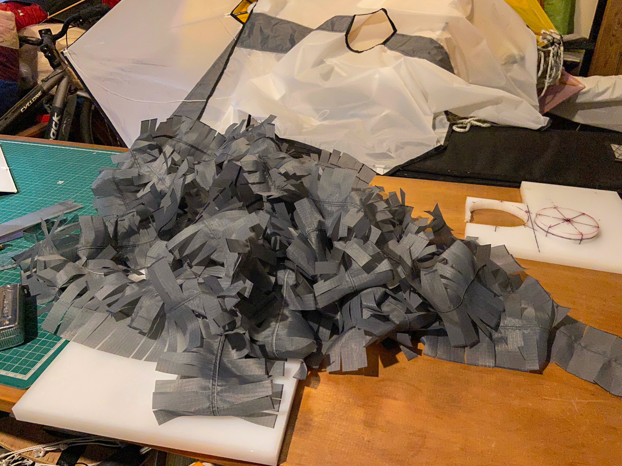 10 original spars were replaced with new ones and then the kites were prepared for the the final fixes to this set as at 30th January 2021.