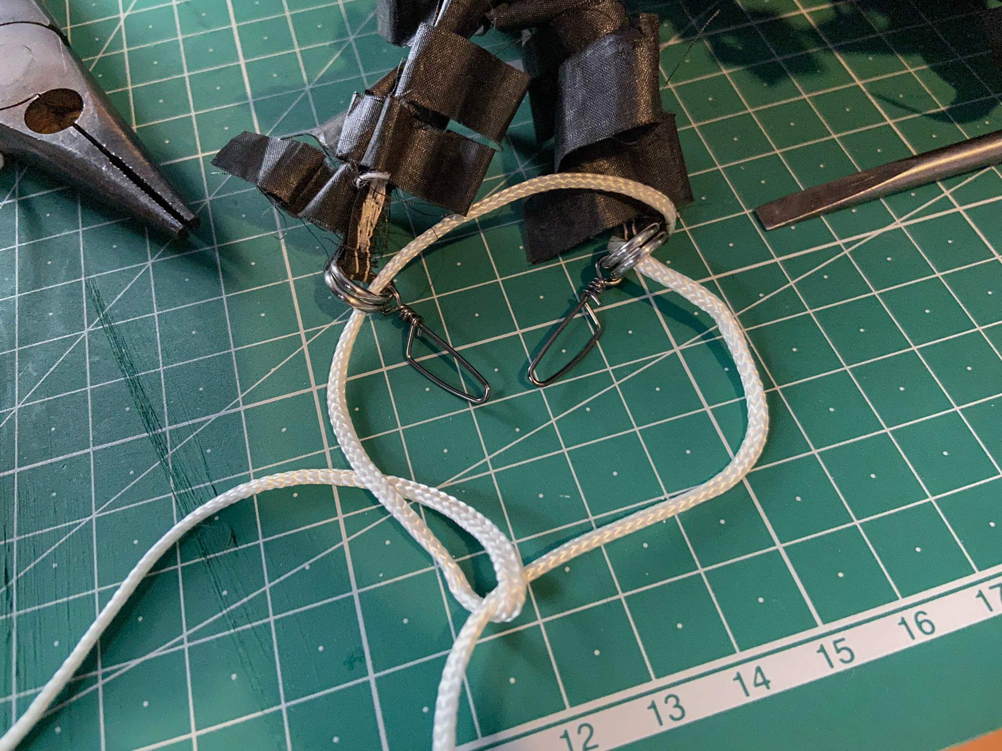 Two 12.5m tails completed, awaiting 105cm lengths for sail attachment legs.