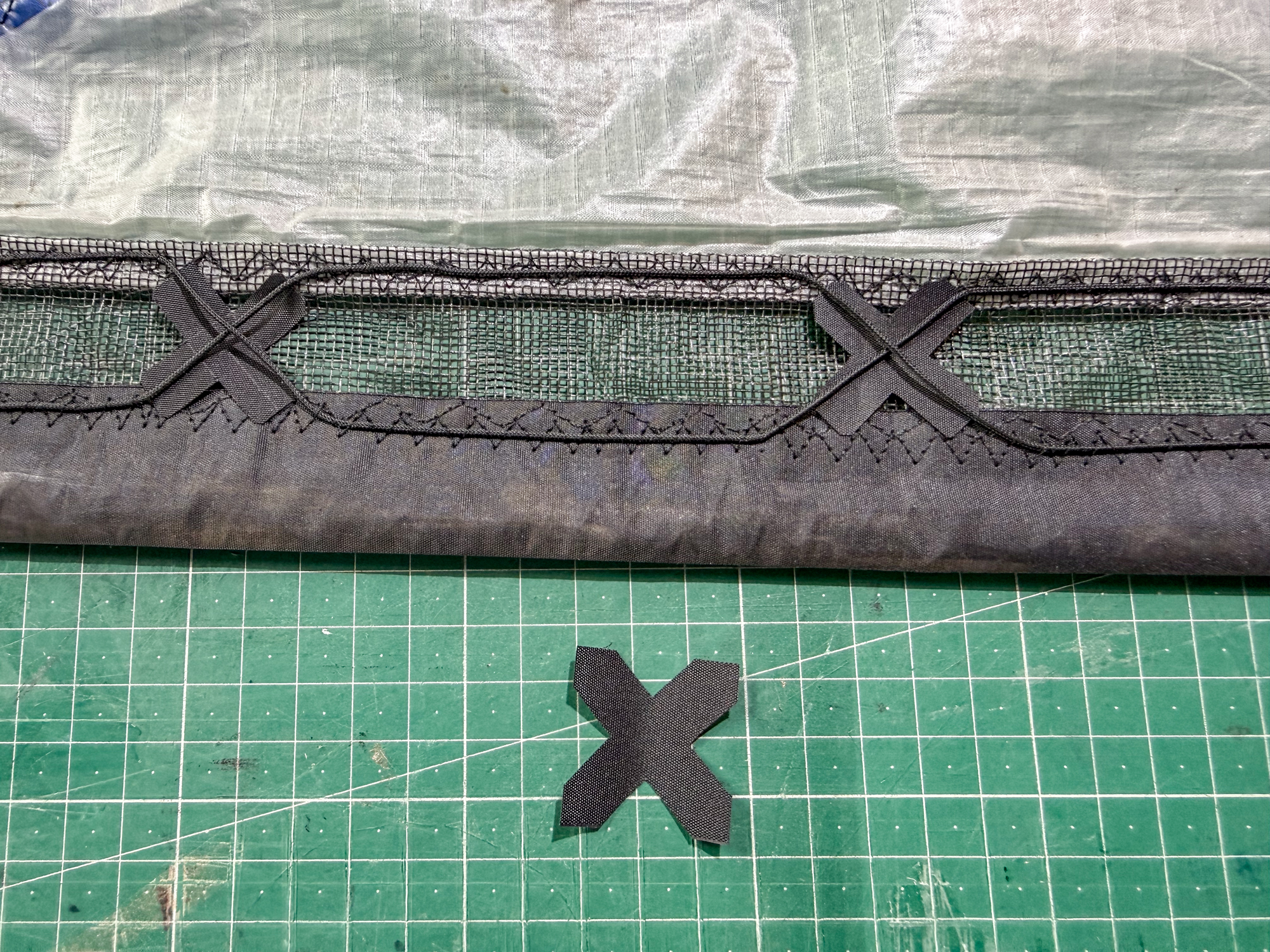 An accurate template will be needed for cutting the dacron Xs.
