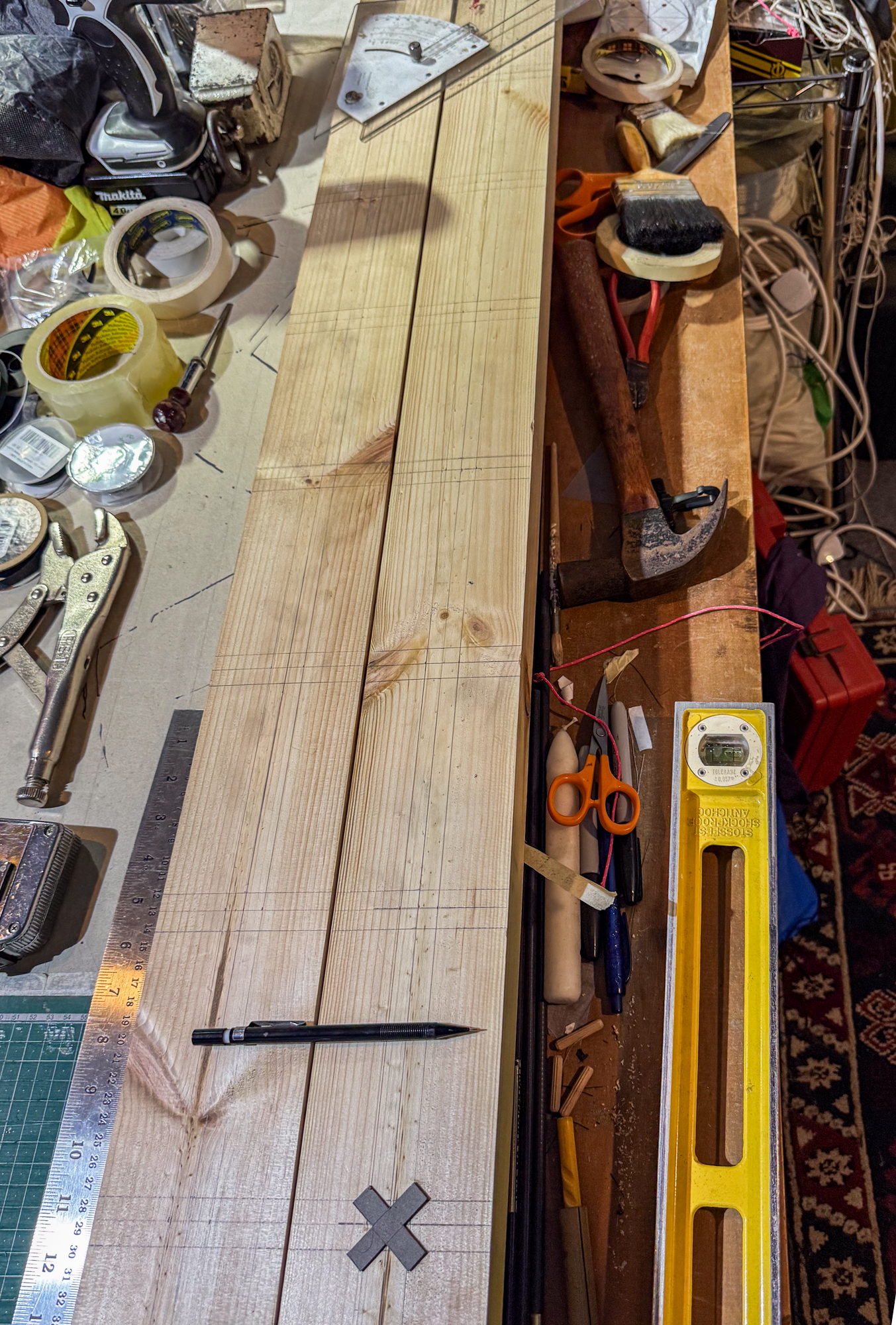 Xs were taped in place to start.