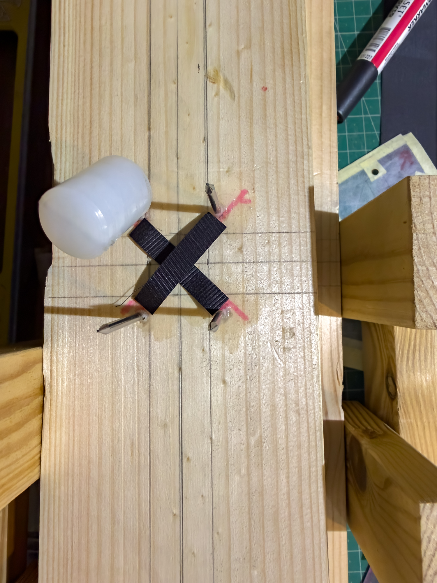 Although it may not make a lasting difference the nail heads in the jig have been re-glued and left to set.