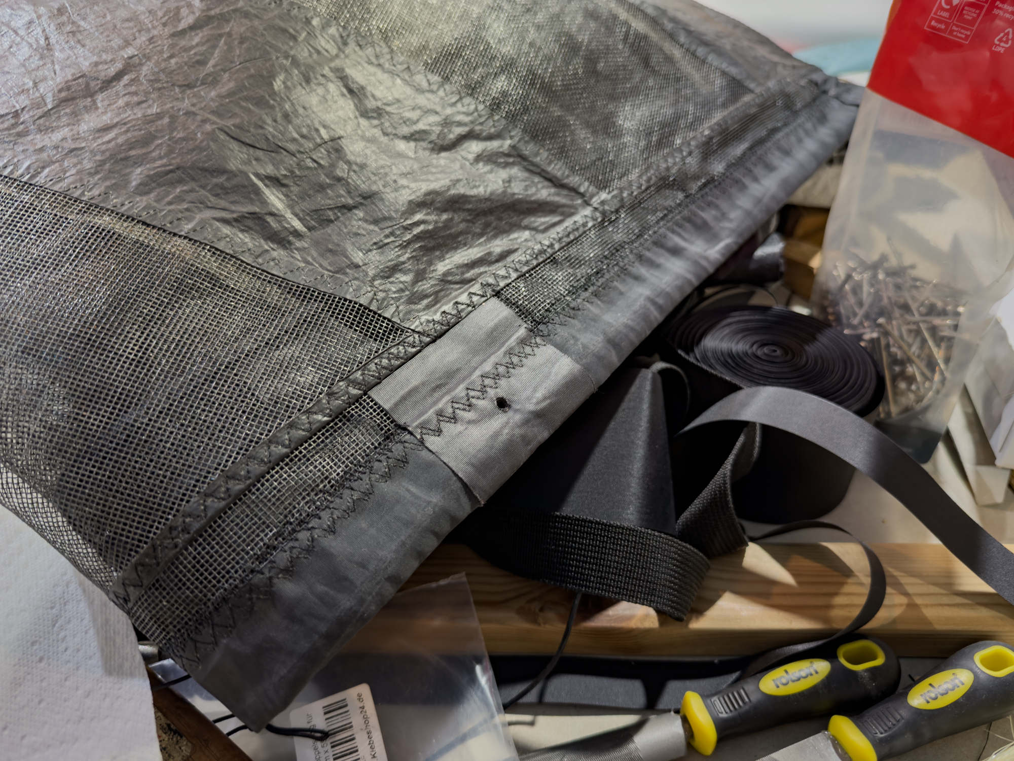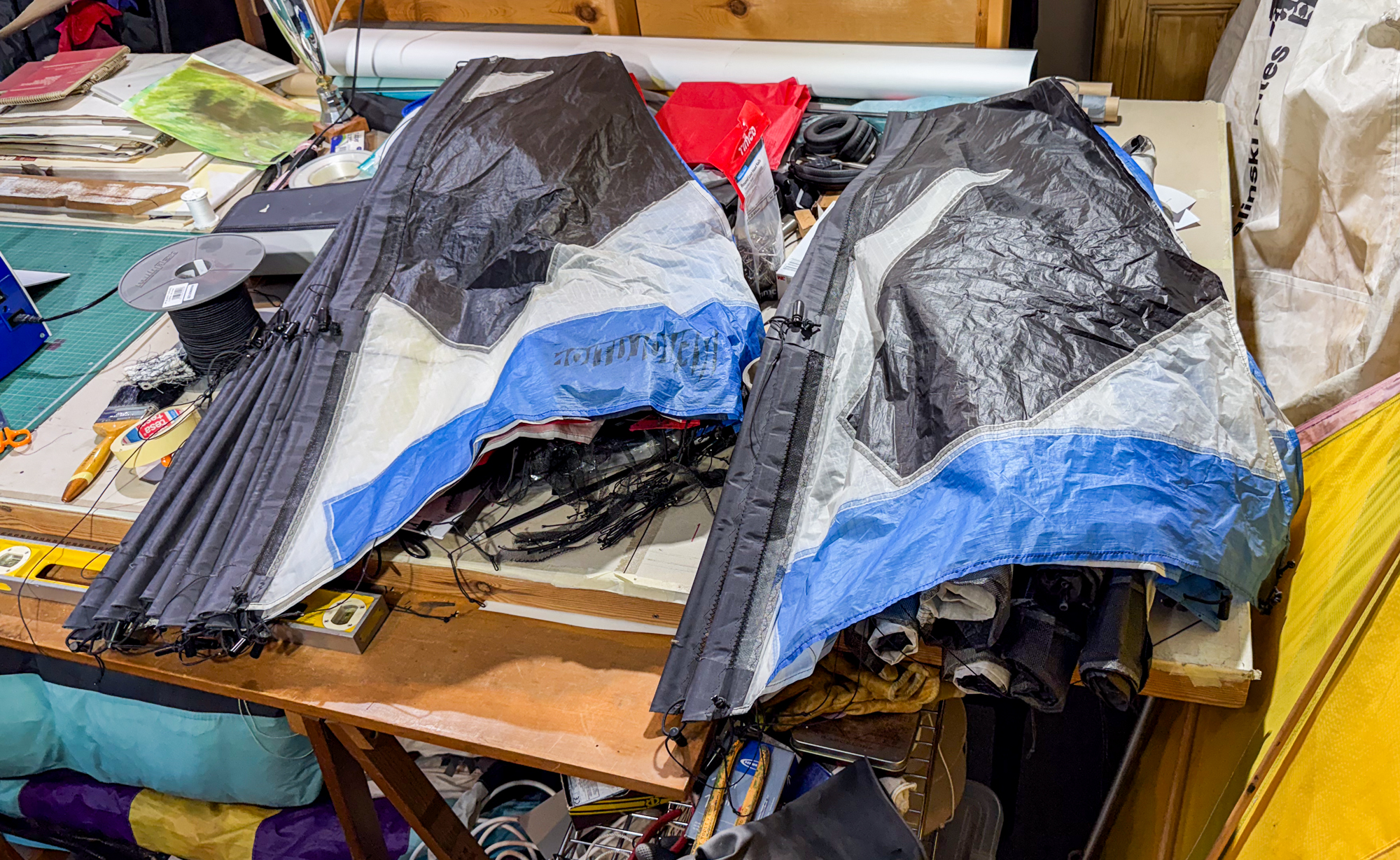 Remains of the leading edge gauze from the eight 2009 sails.