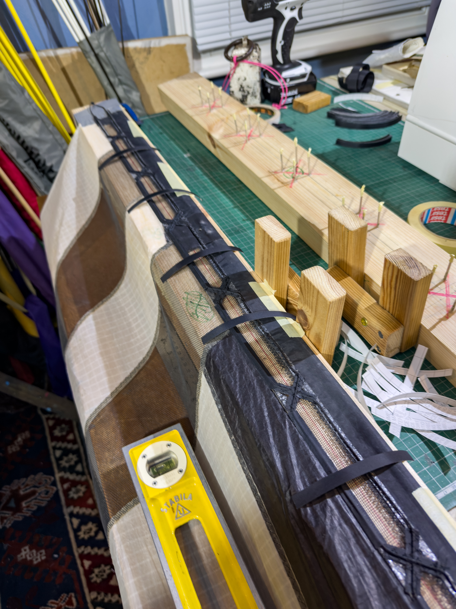 Half the long tapes in place, the final sail!