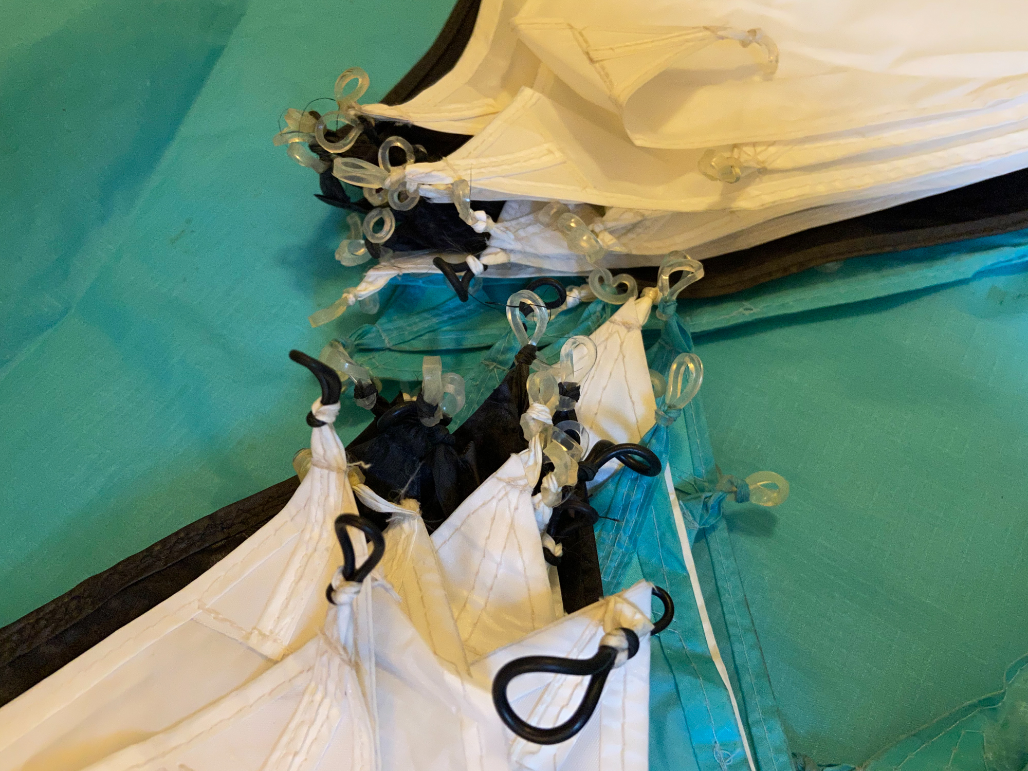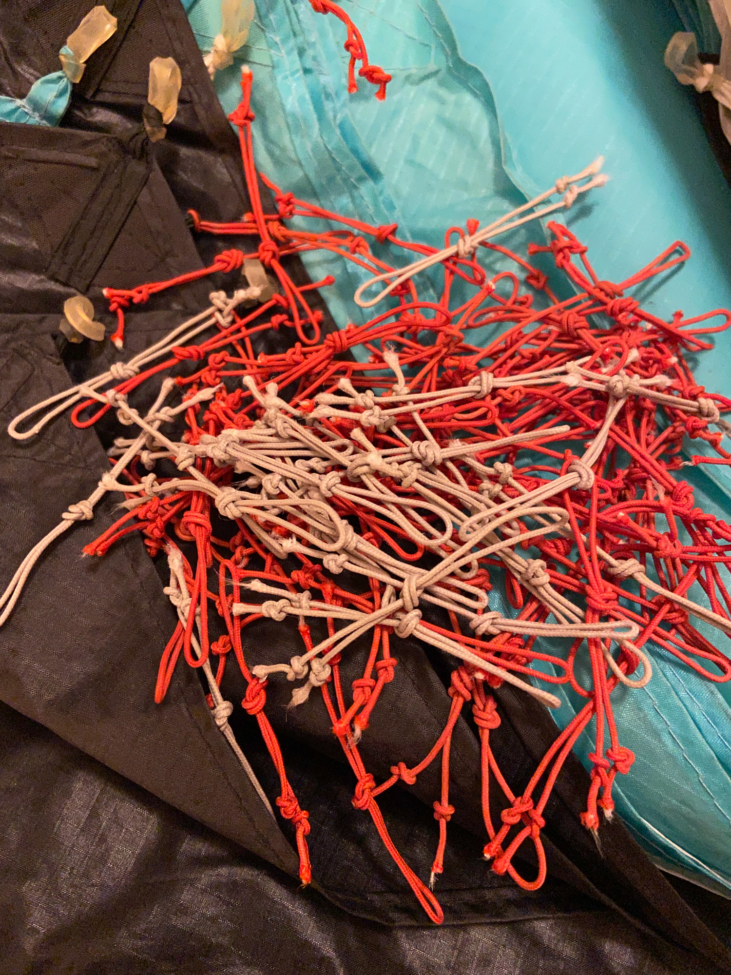 Trial build with knotted line loops.