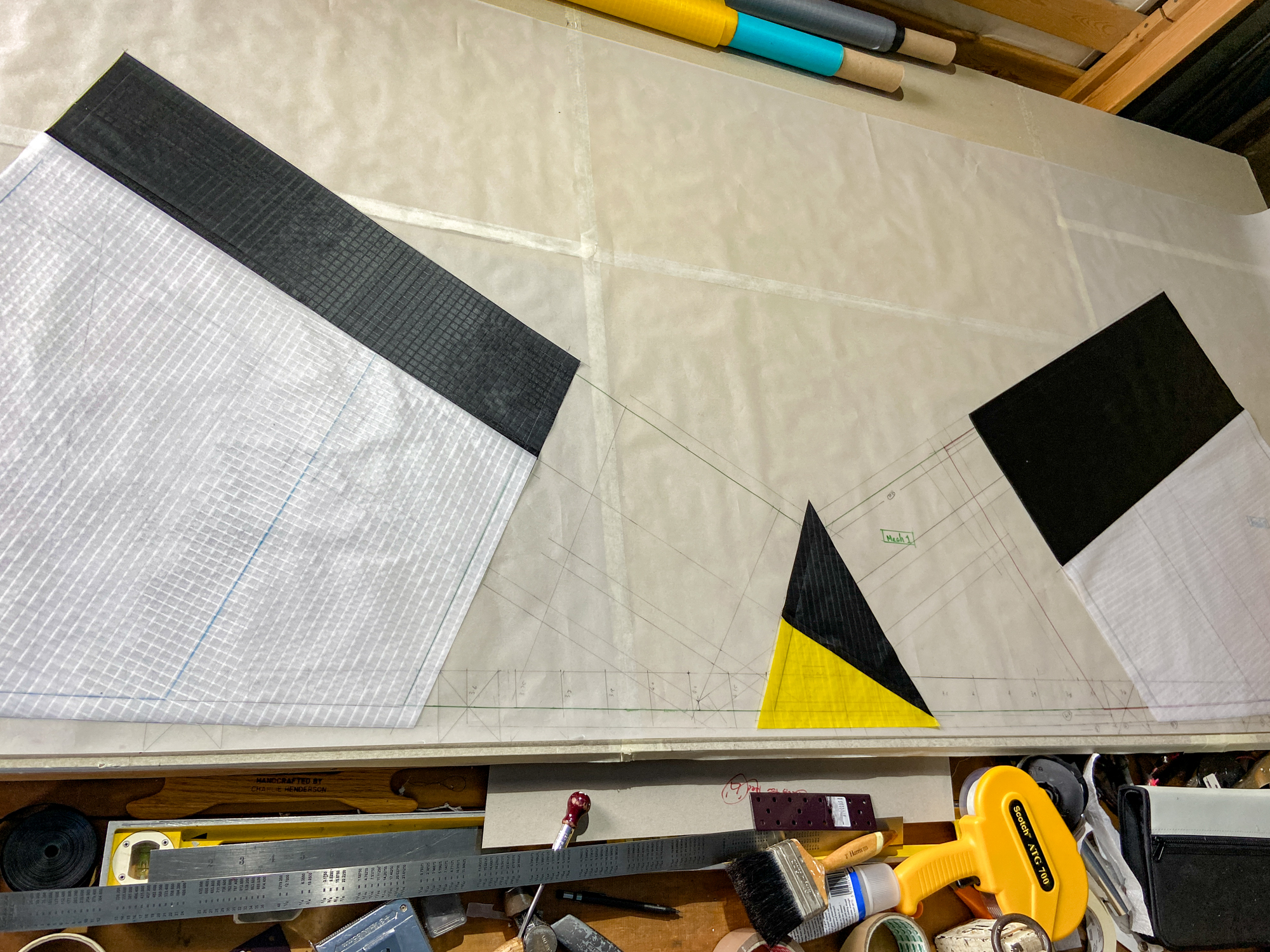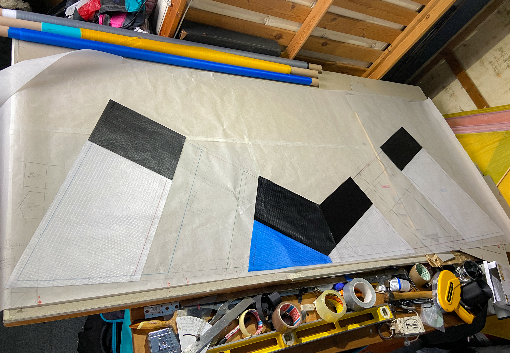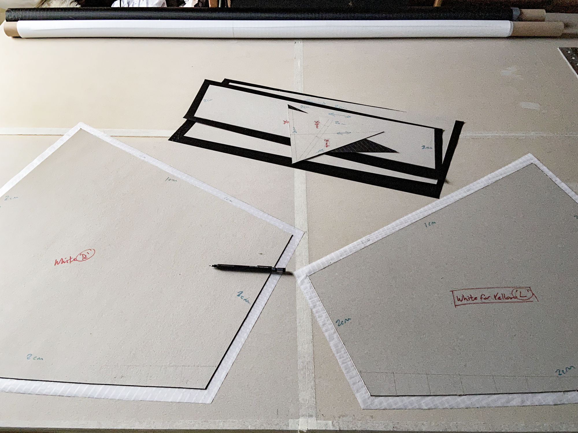 Sail elements were cut using card templates drawn from the initial tracing.