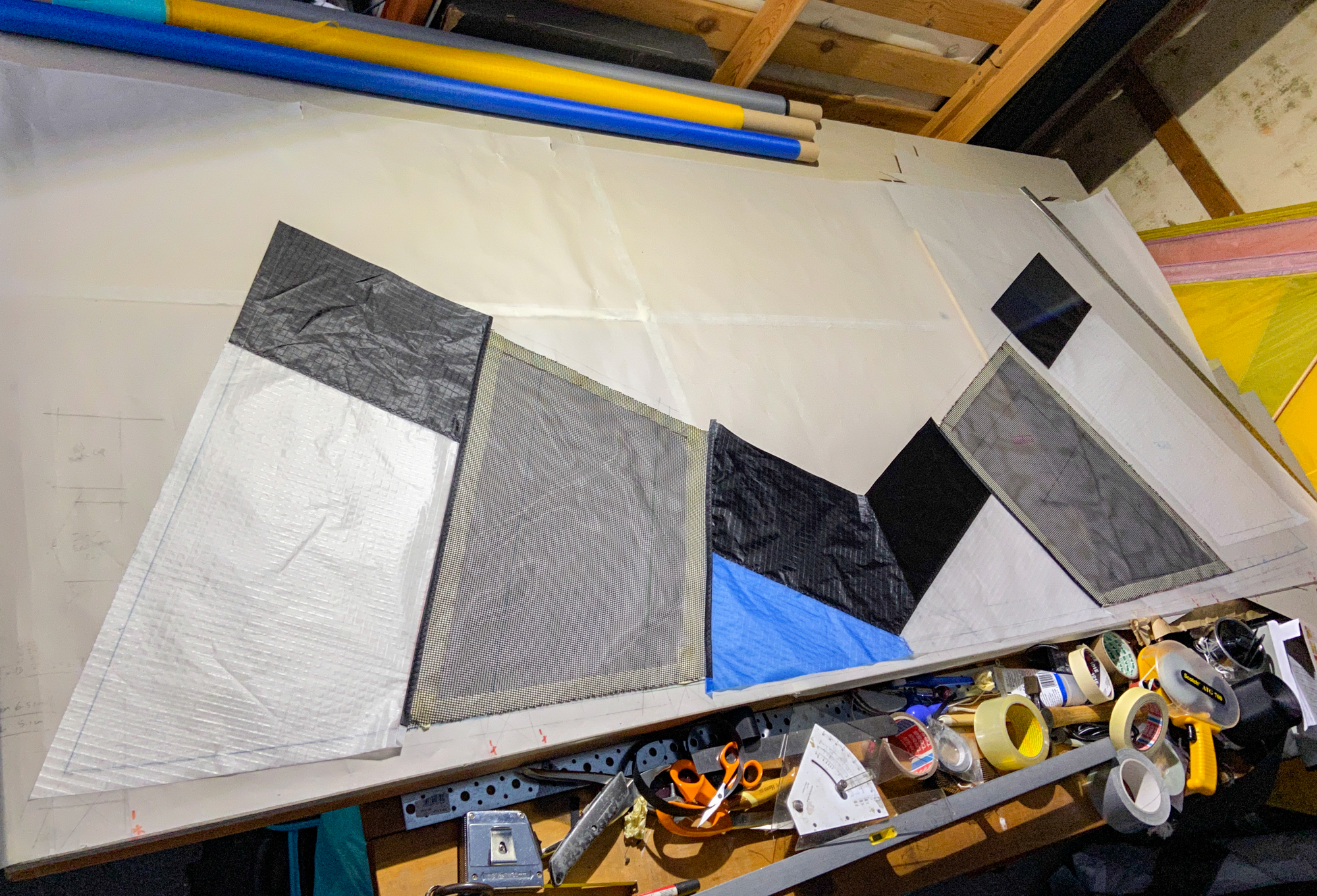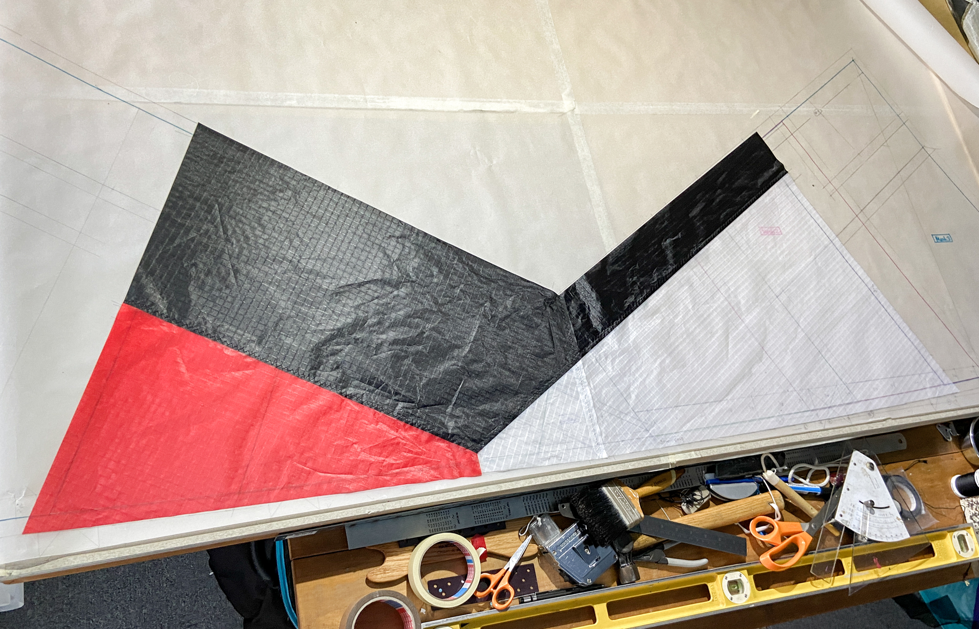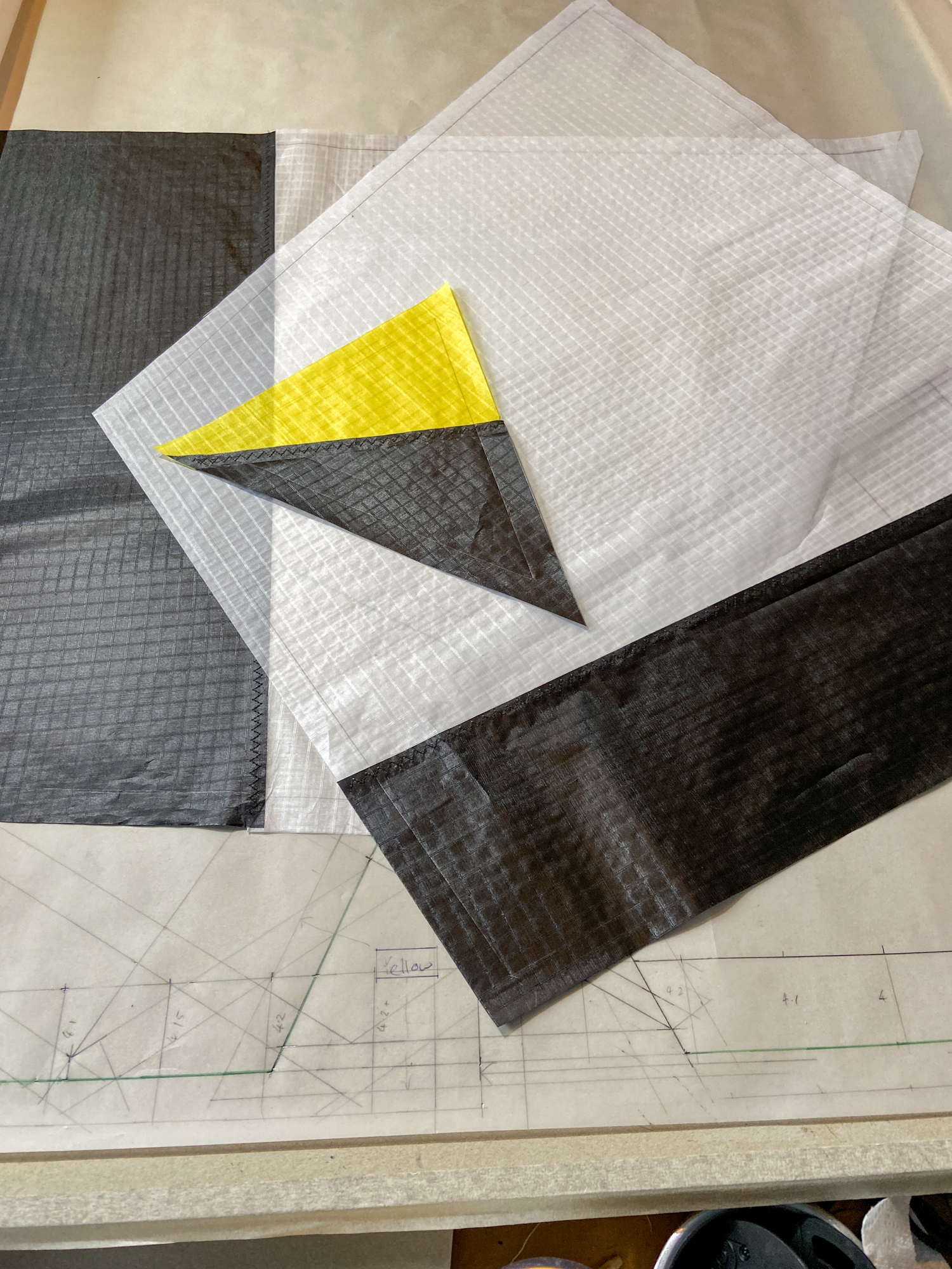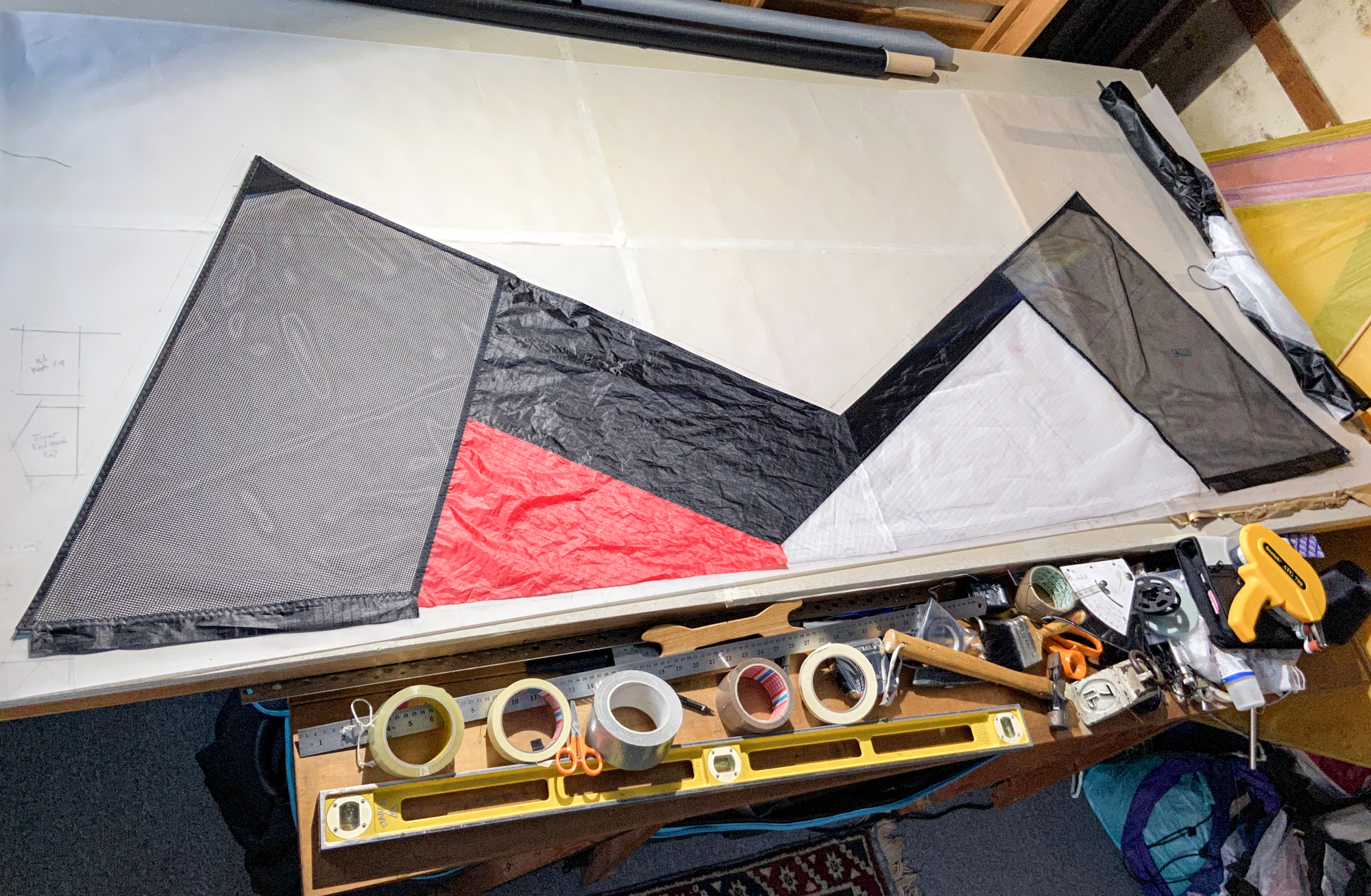 Blue Icarex arrived from Germany, 15th November 2022. All the components are now prepared for fabrication and the initial sewing of the Icarex is done, 16th November 2022.