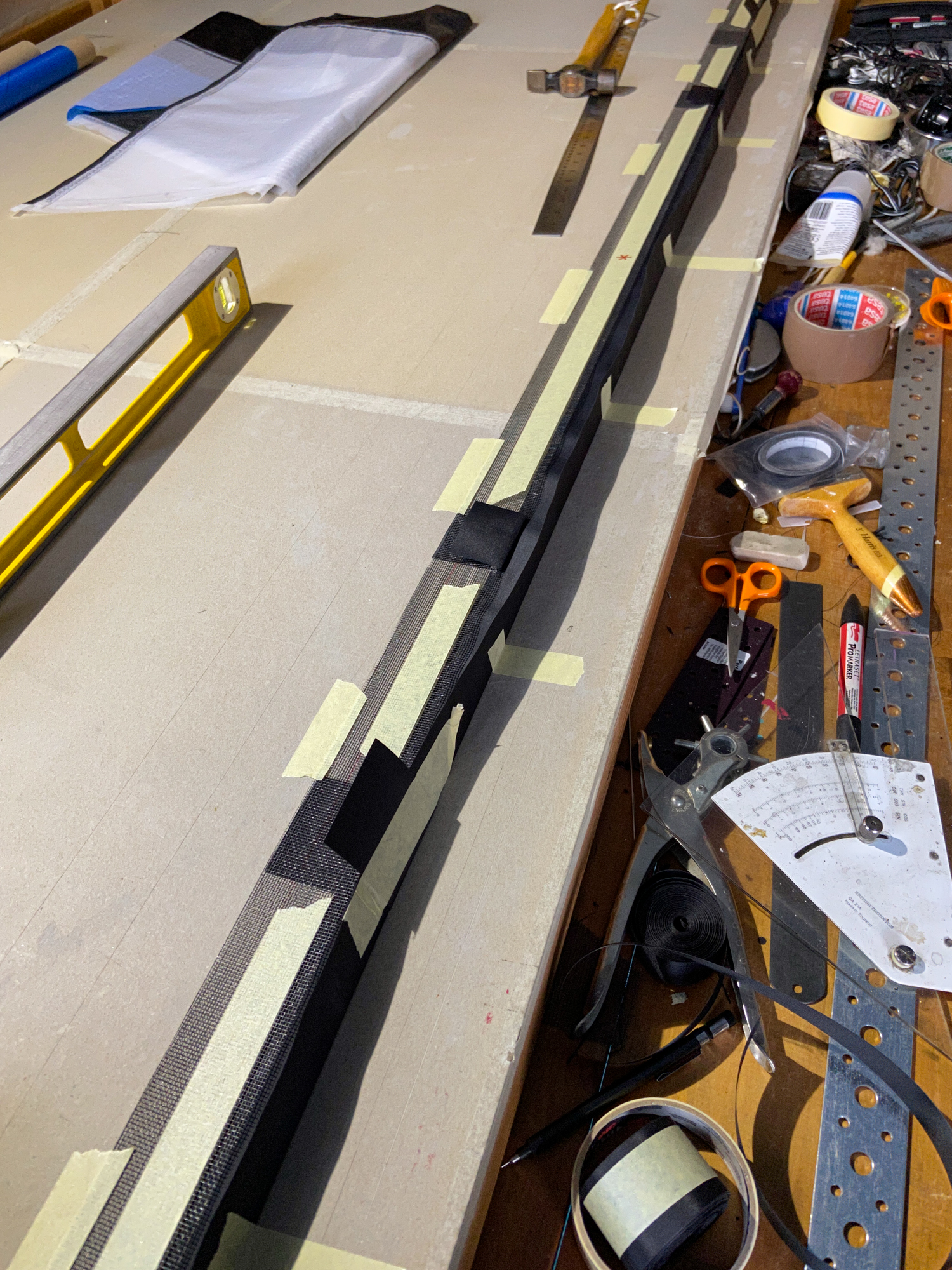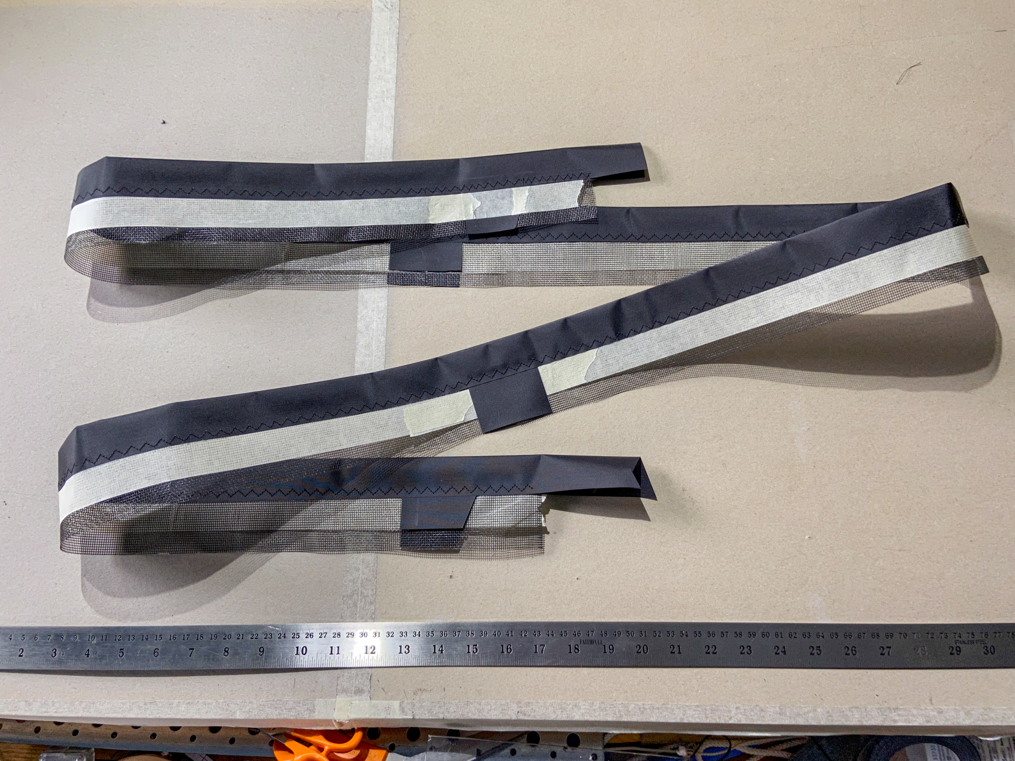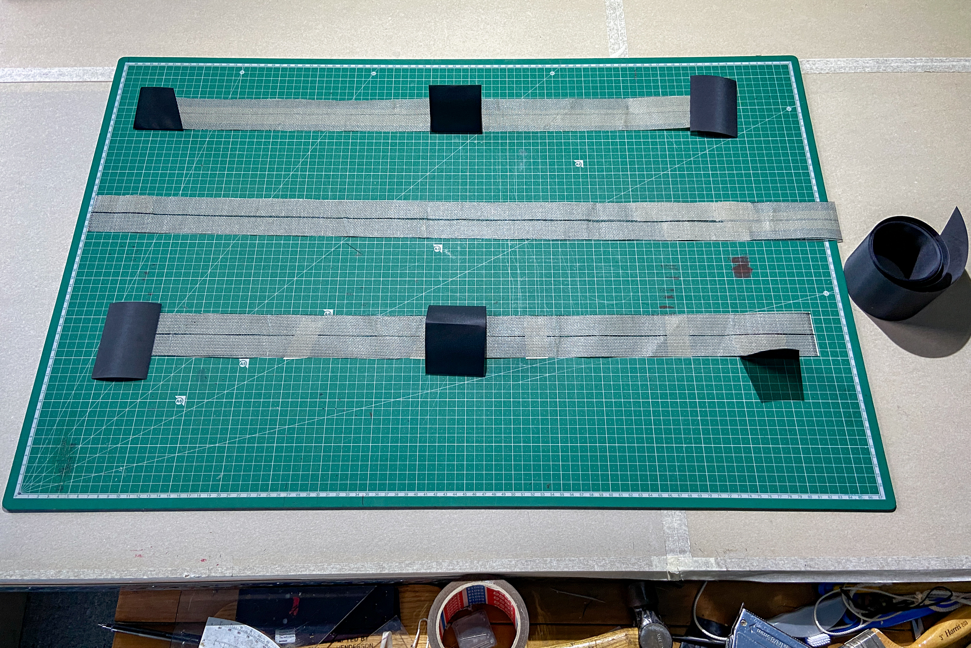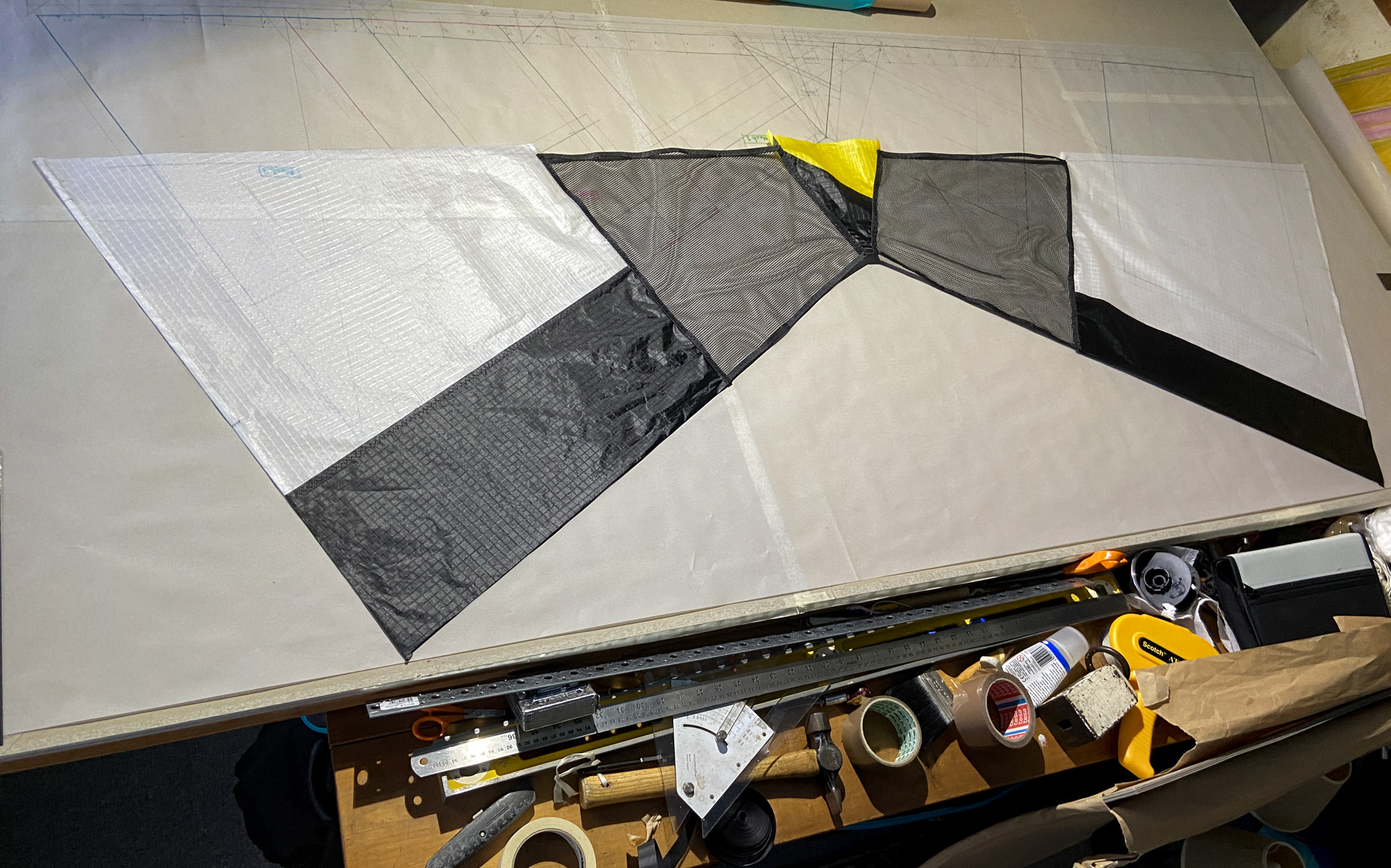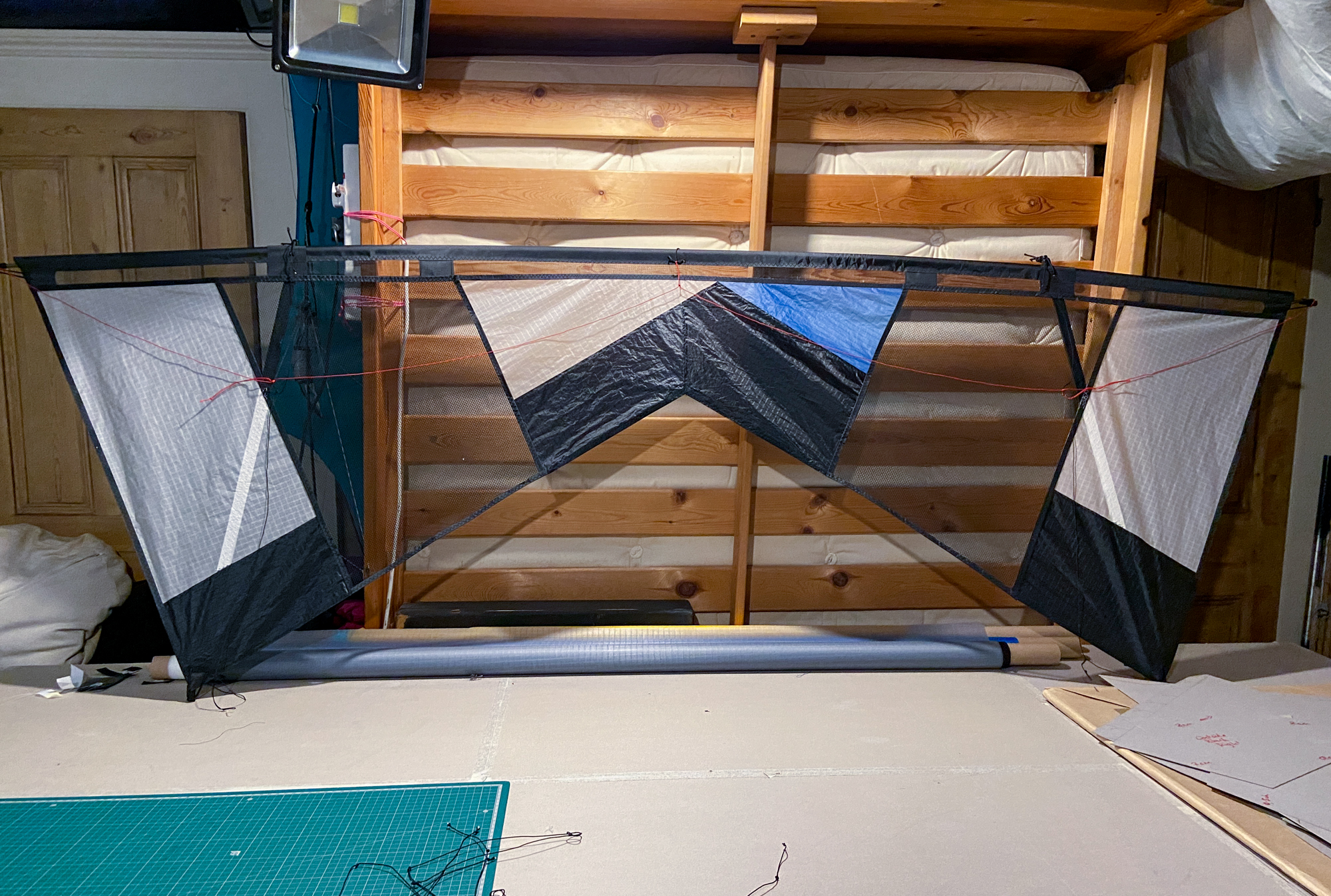 Spar strips added... Kevlar diagonal mesh lines prepared, 26th November 2022.