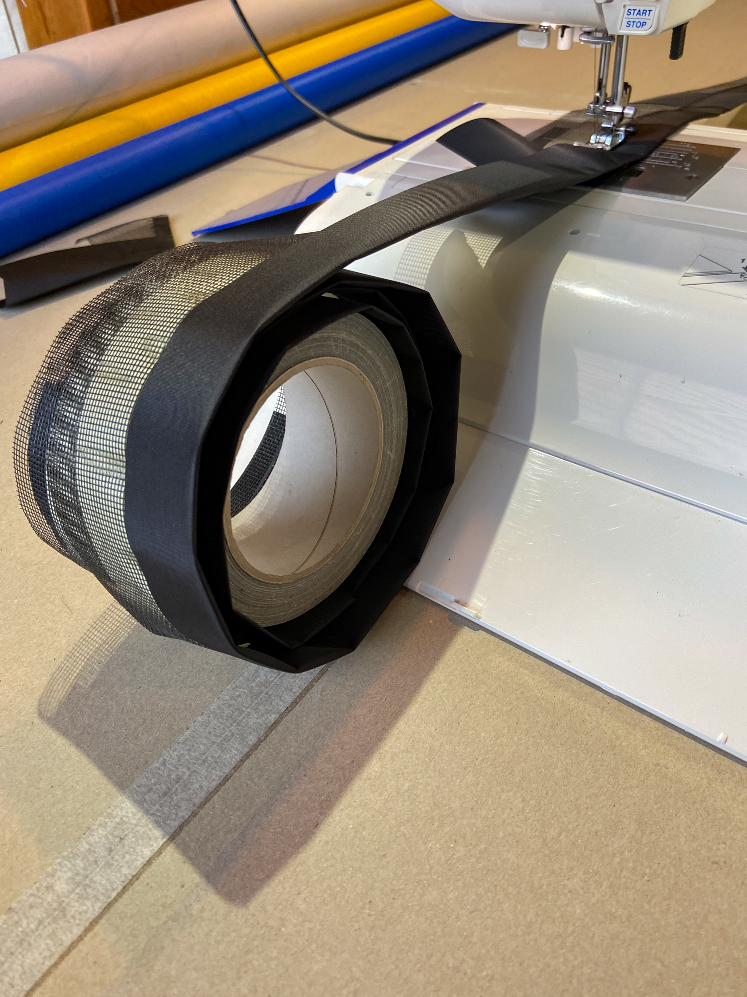 Main edges sewn and white edges taped, 19th October 2022.