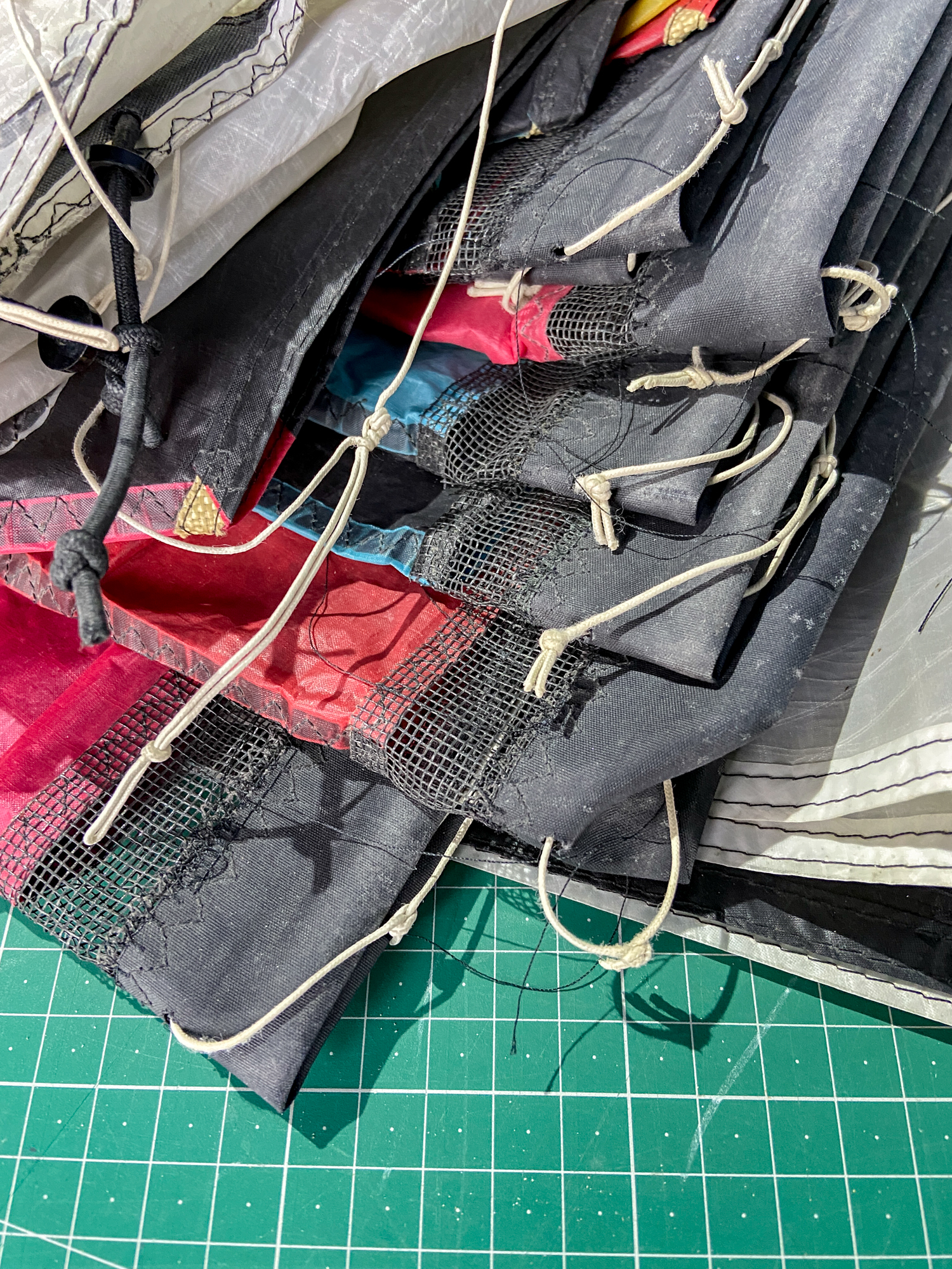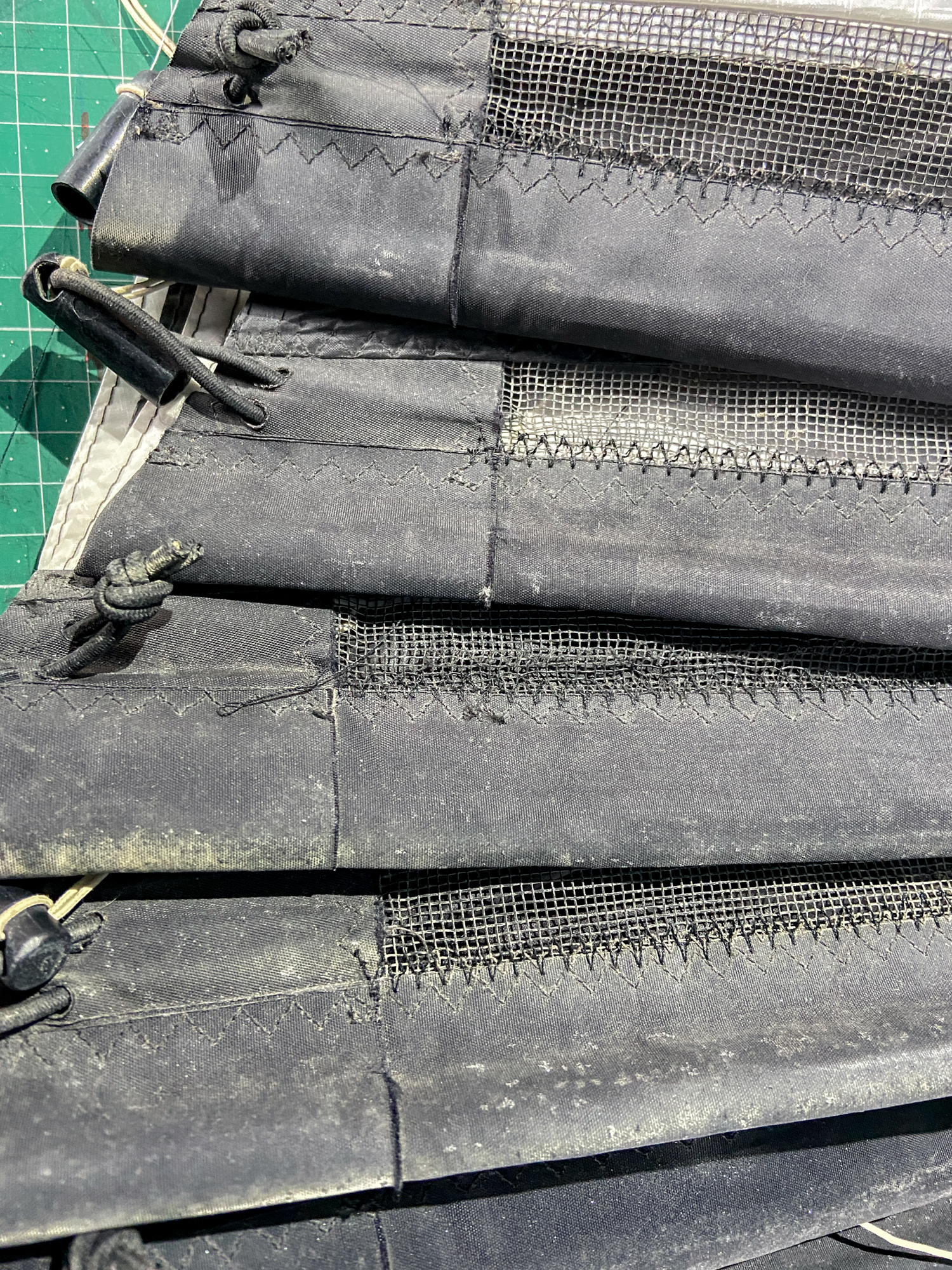The condition of the leading edge mesh on the 2009 sails is what inspired the making of the three new sails. A further examination of the oversewn mesh suggests that there is no immediate pressure to replace the leading edges. 18/03/2023