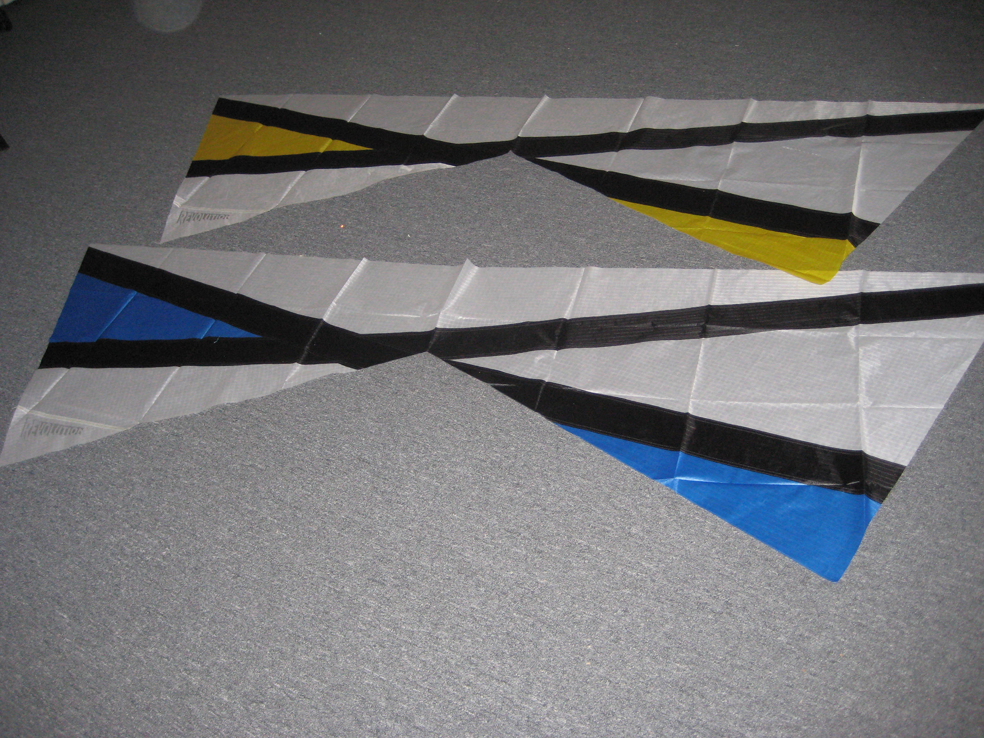 Jørgen gave us permission to use his design again, for two 1.5 sails sewn by Martin Lester and finished by Bazzer, which were raffled for the benefit of The Bristol Kite Festival 2009. (one yellow and one blue)