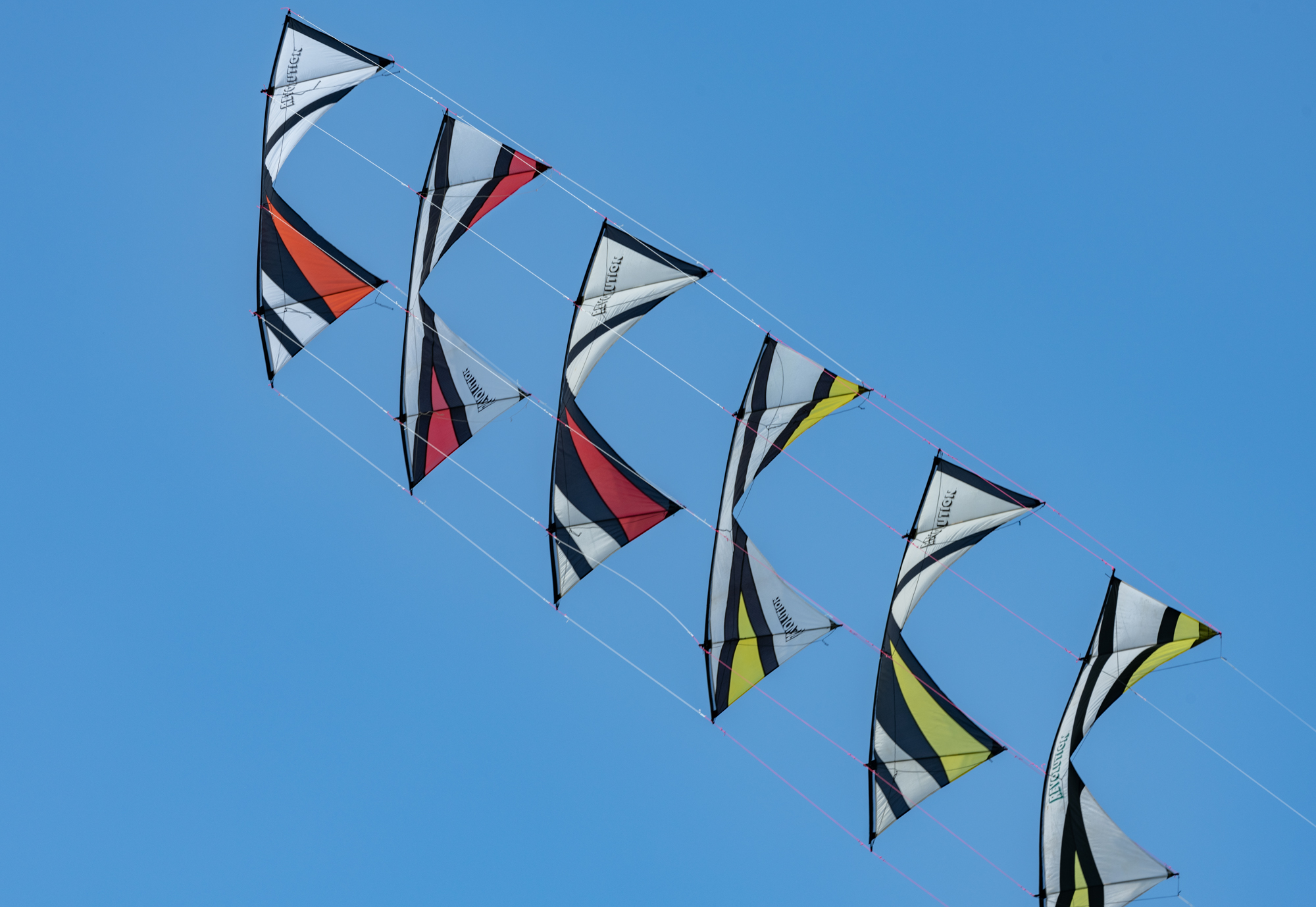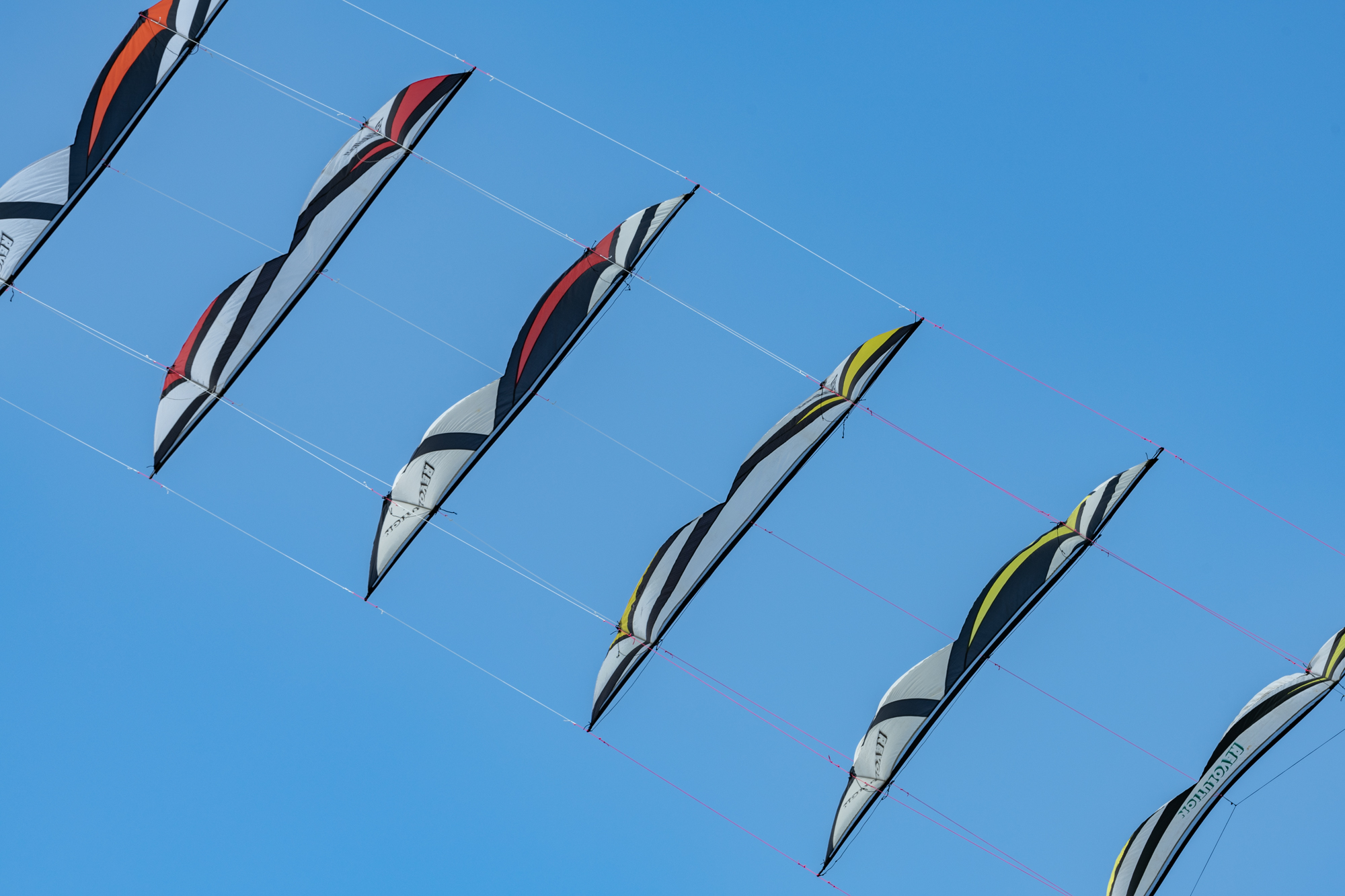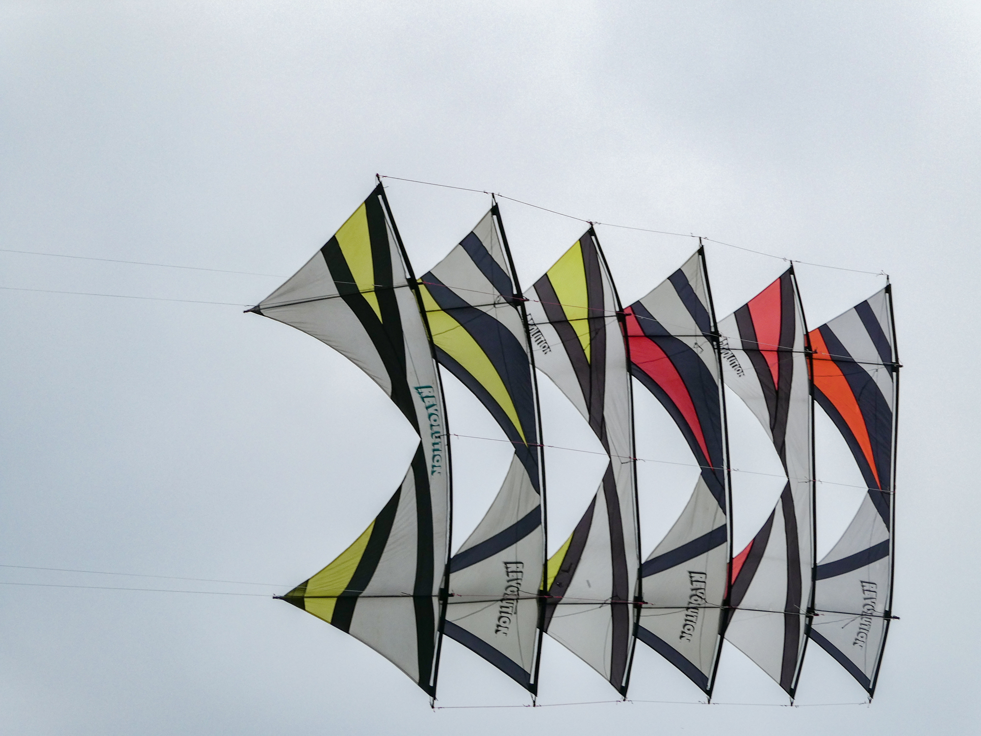 The stack of the 1991 and 1992 sails had been slightly reconfigured and flown today with the two 1992 Rokkakus, also in train.
