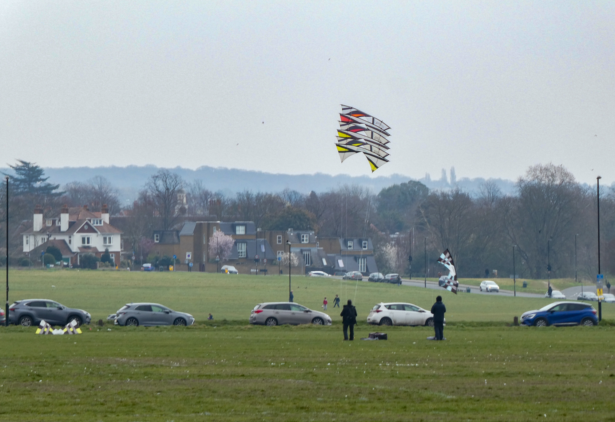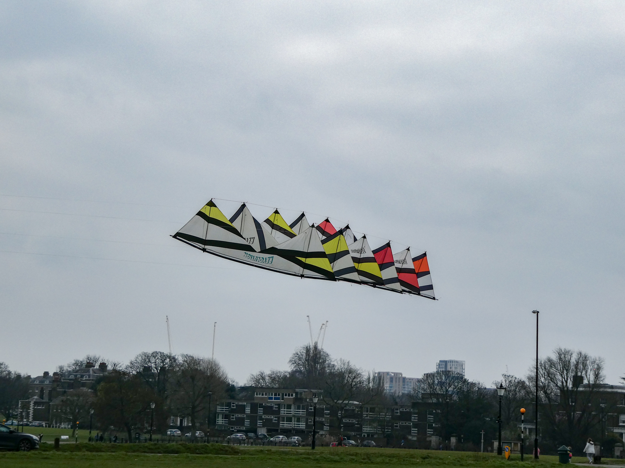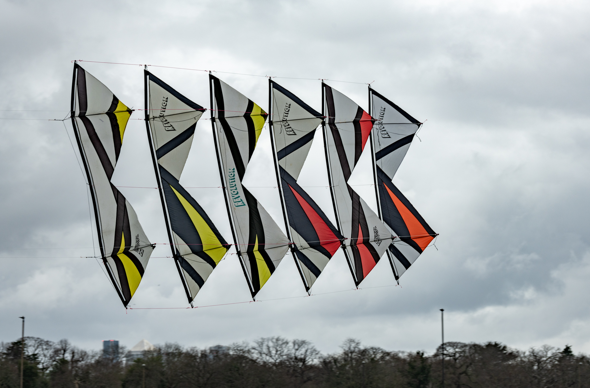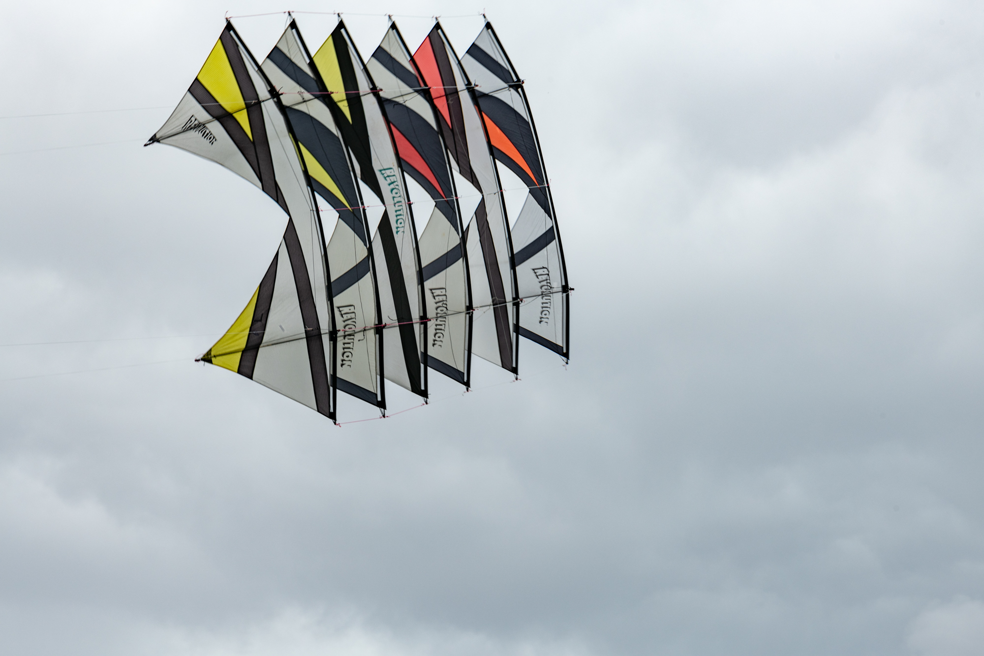 The stack of the 1991 and 1992 sails had been slightly reconfigured and flown today with the two 1992 Rokkakus, also in train.