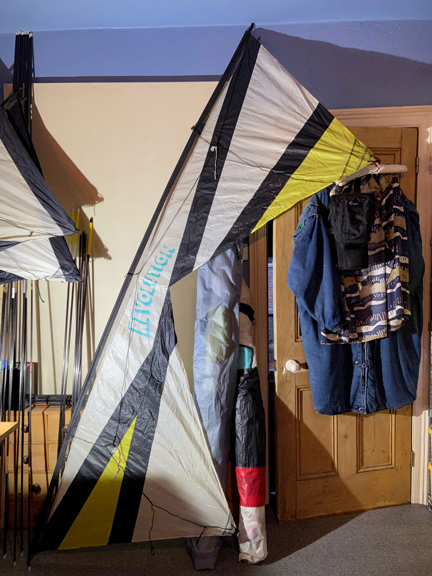 The stack of the 1991 and 1992 sails had been slightly reconfigured again, the spars in the last two kites have been replaced.