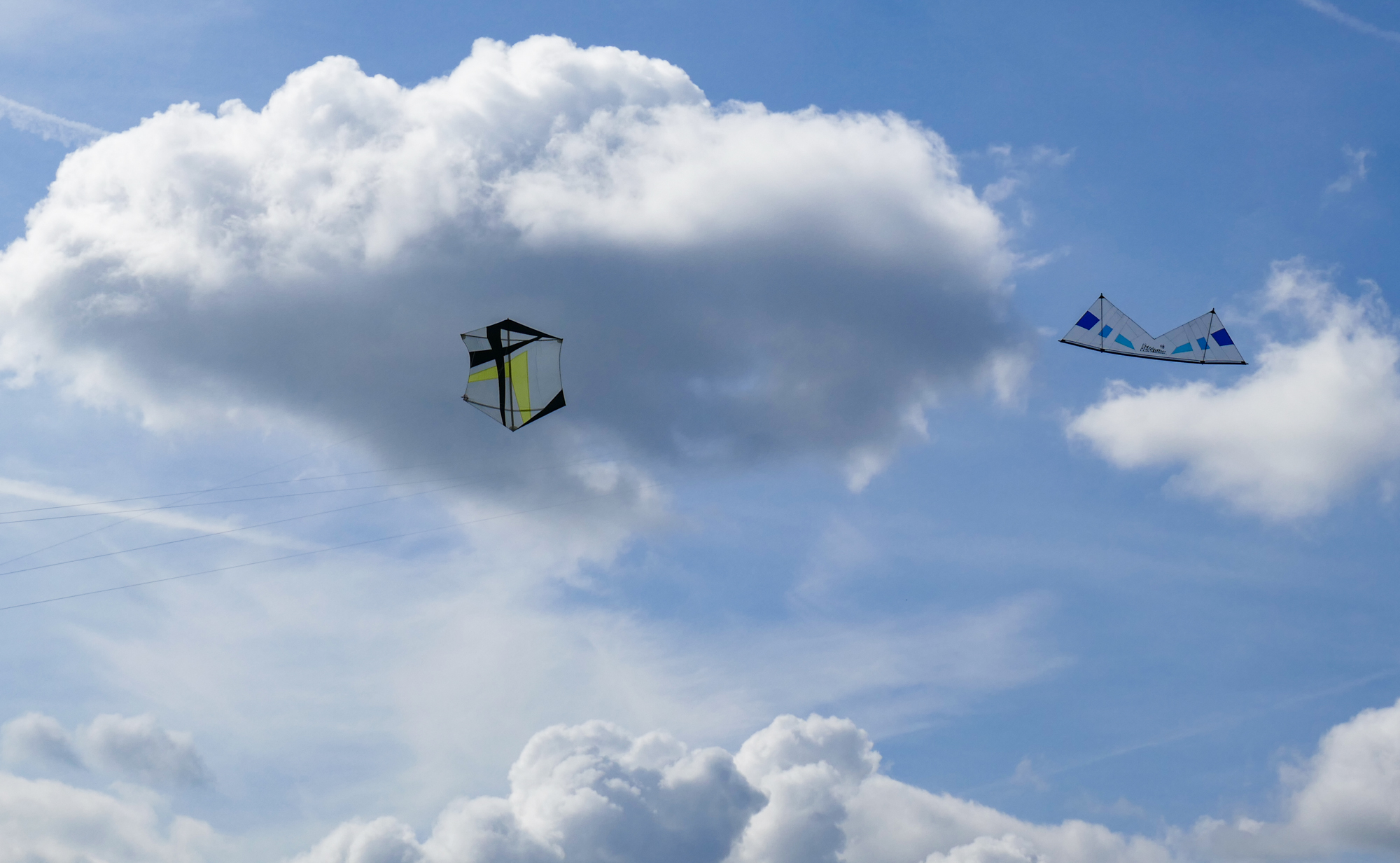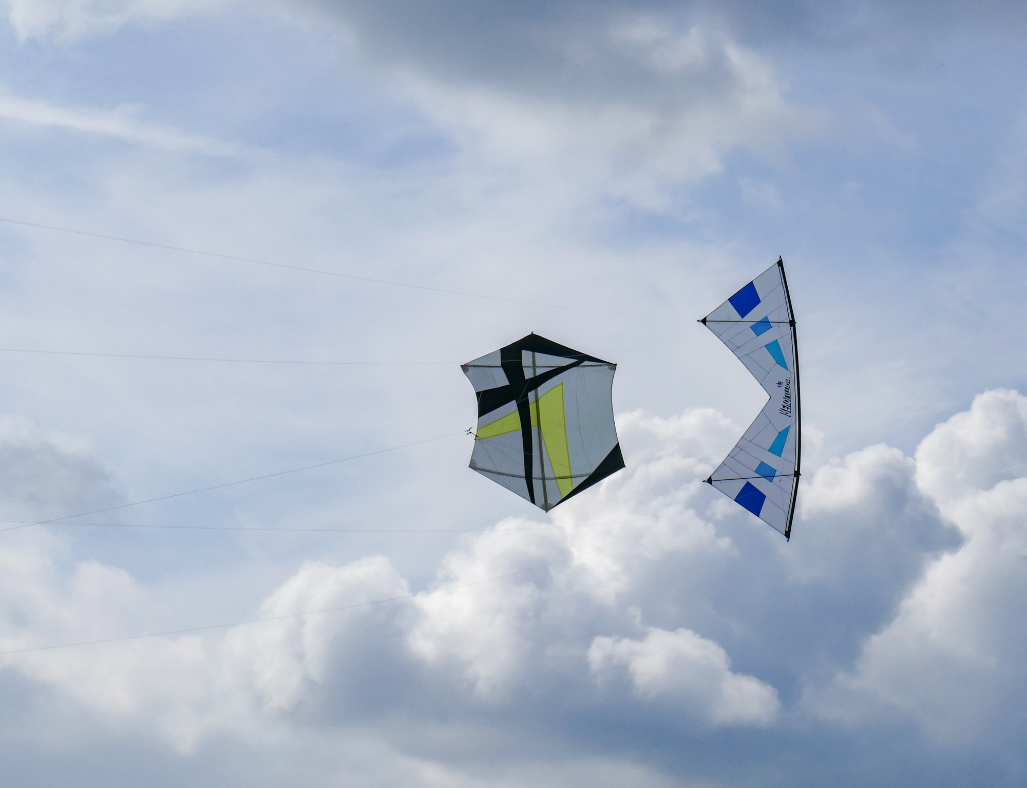 The blue kite was on c30m 2.5mm spectra on a ground anchor, the yellow kite on the same 2.5mm spectra but hand held.