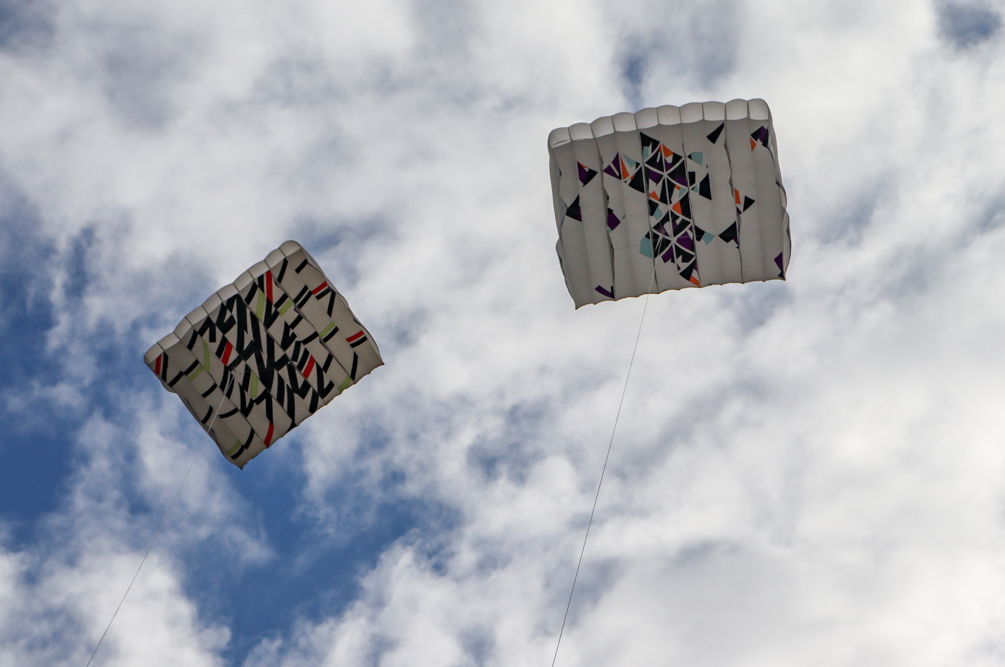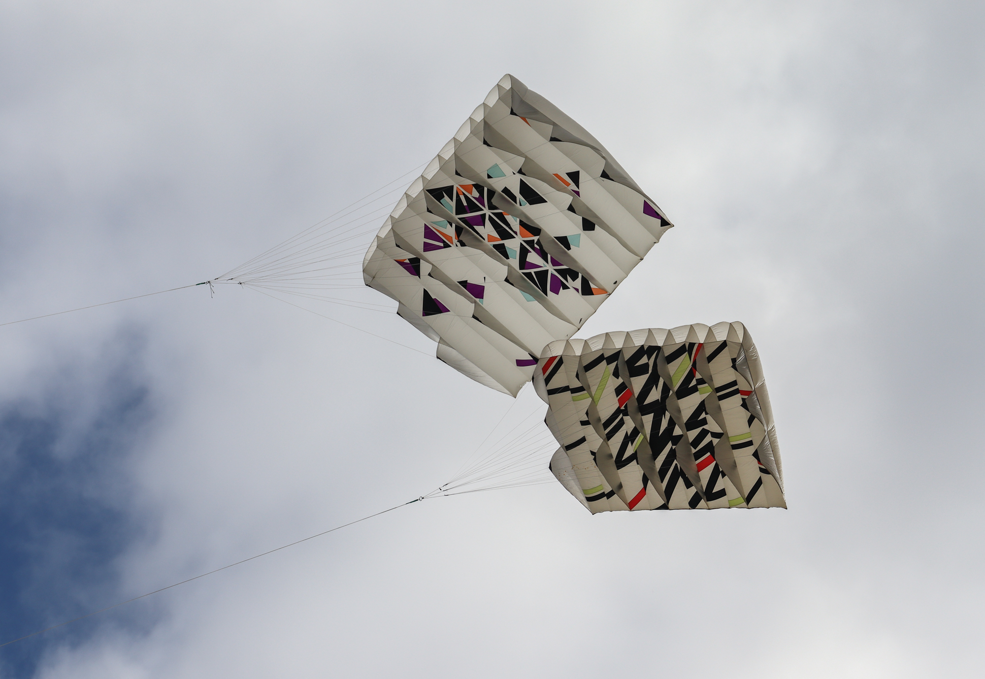 Lex Kraaijeveld caught the two parafoils, rokkaku stack and the revs in the one image, the other three images by Felix Mottram.