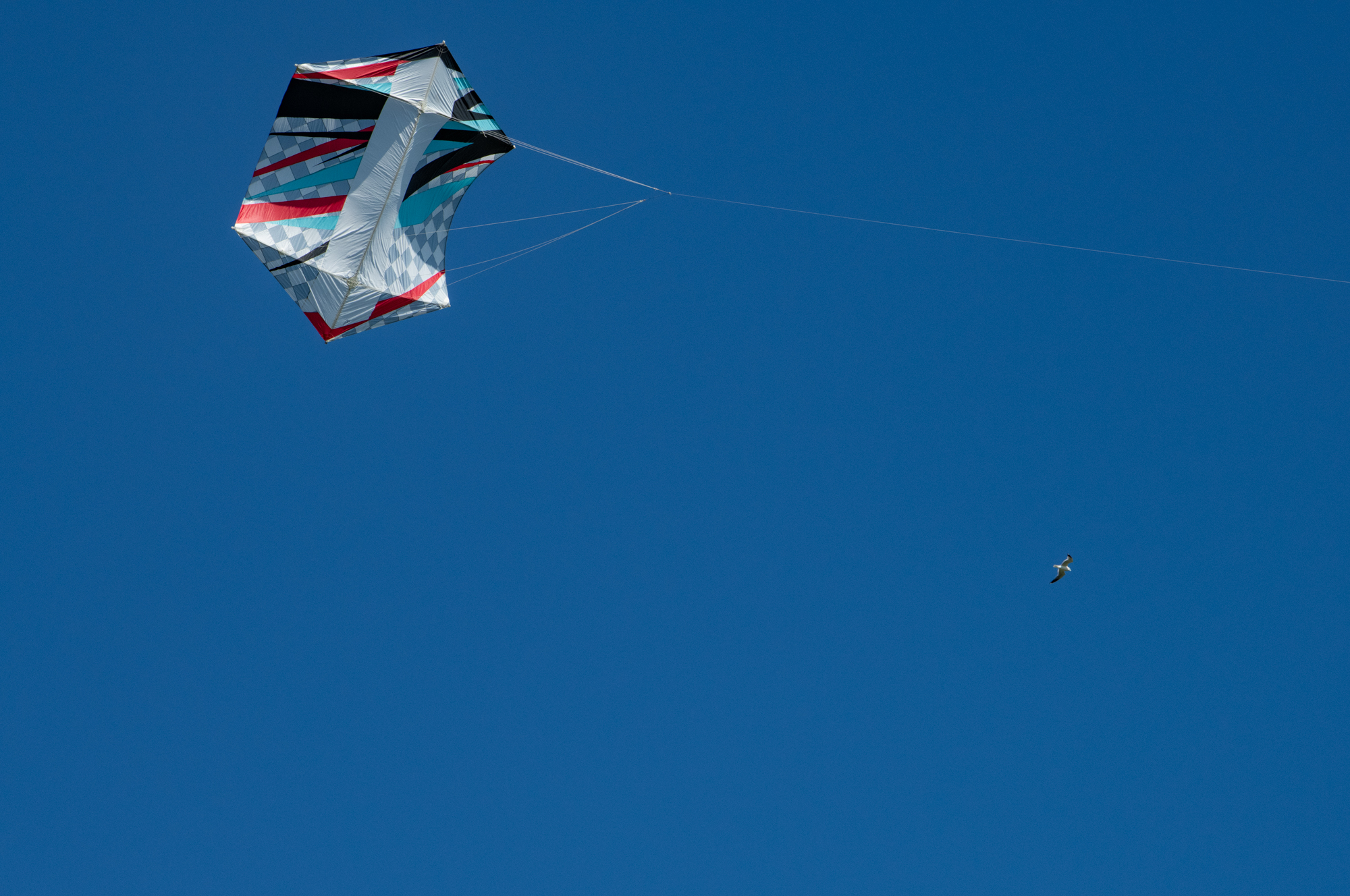 Once settled on the breeze the kite occasionally topped out with slacked line and bridle.