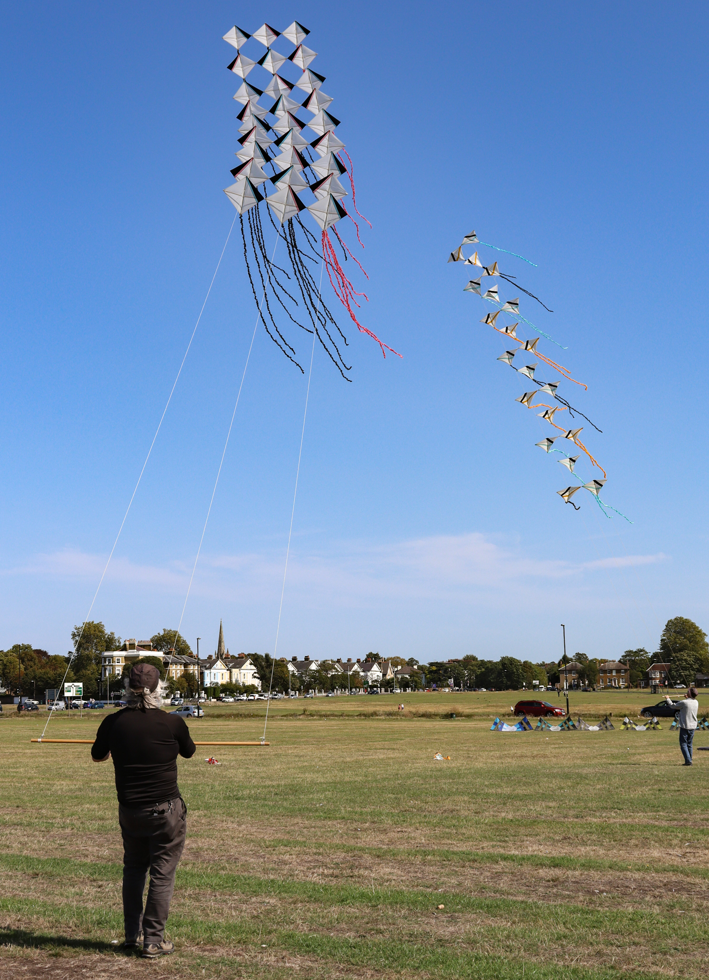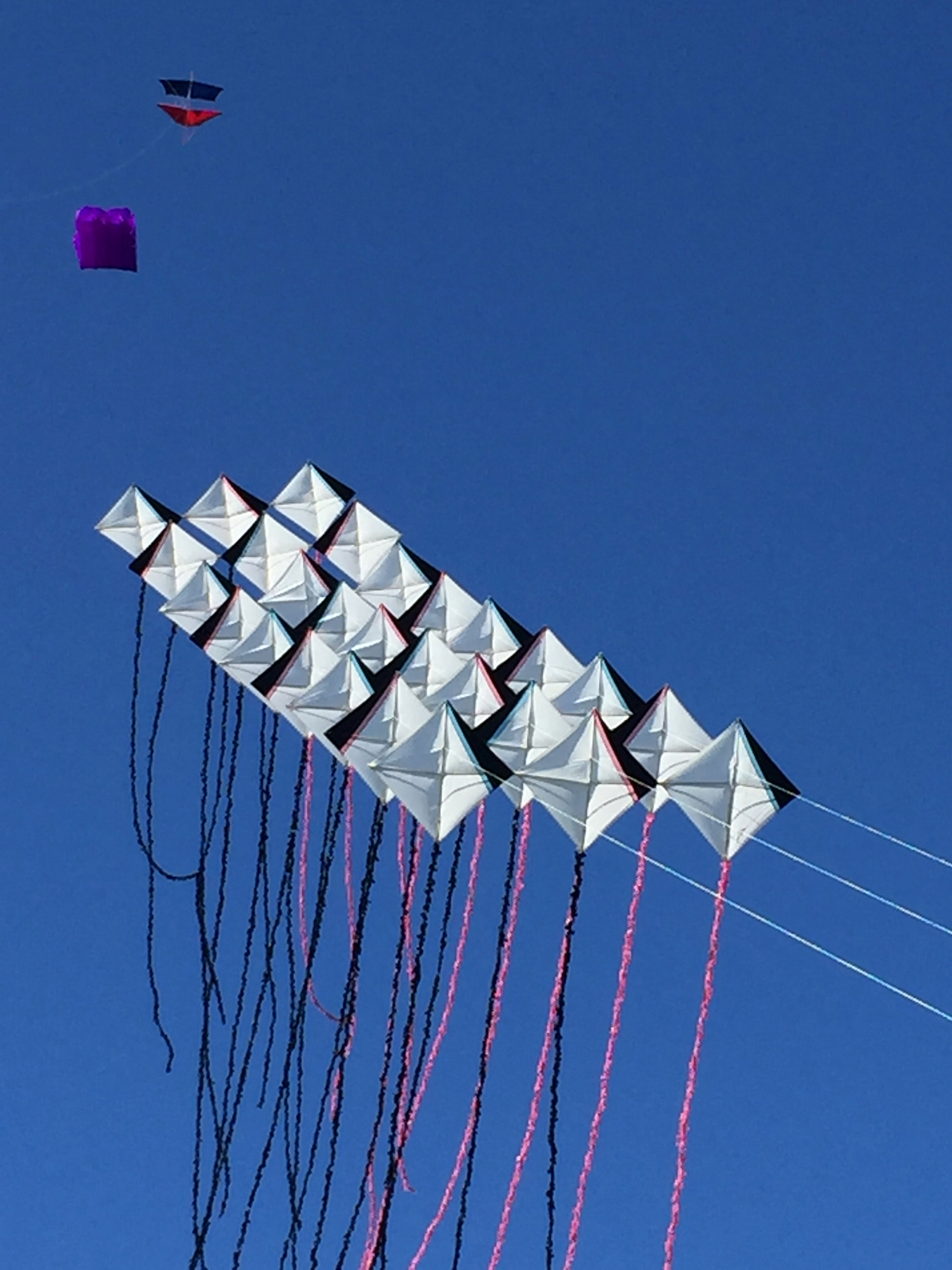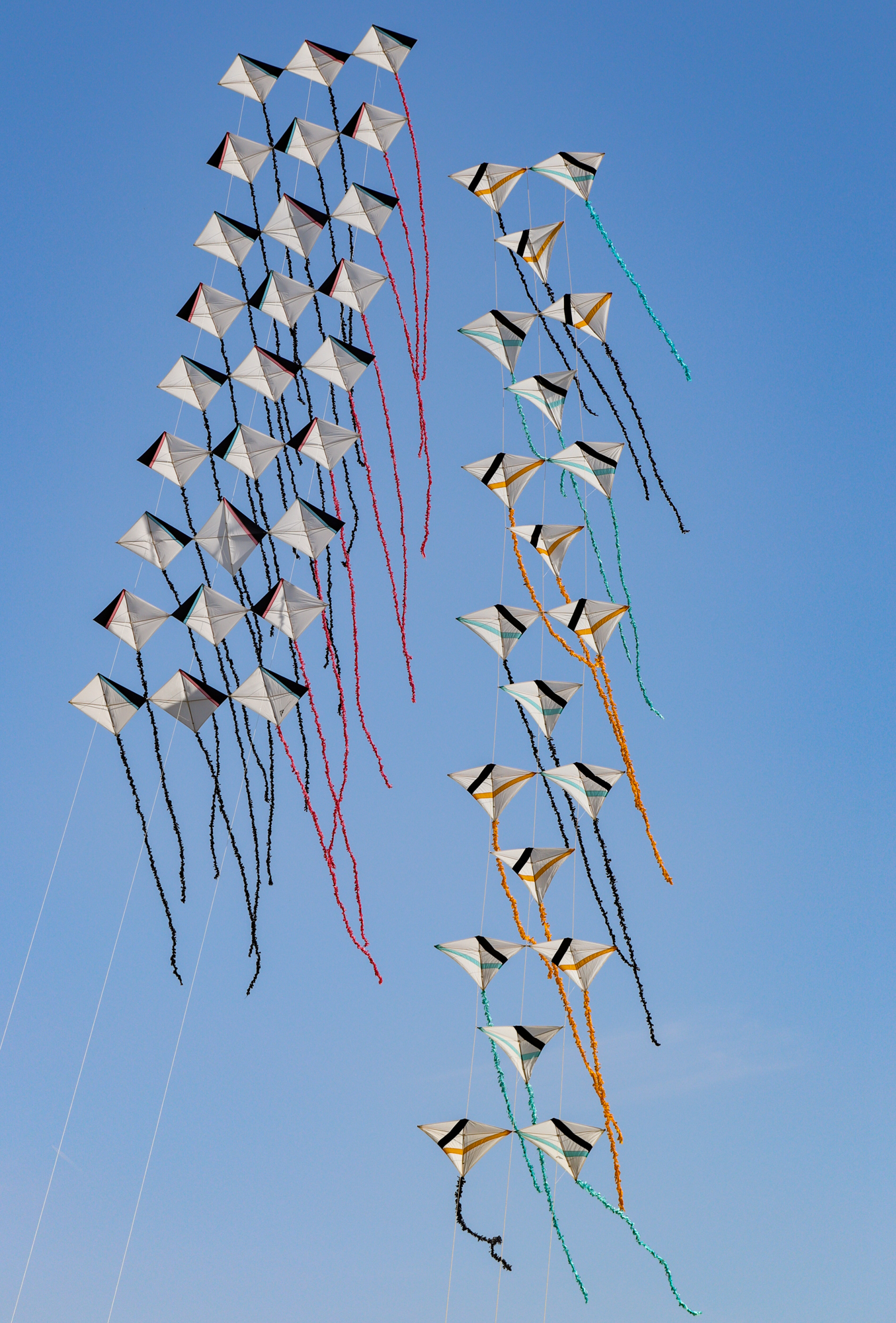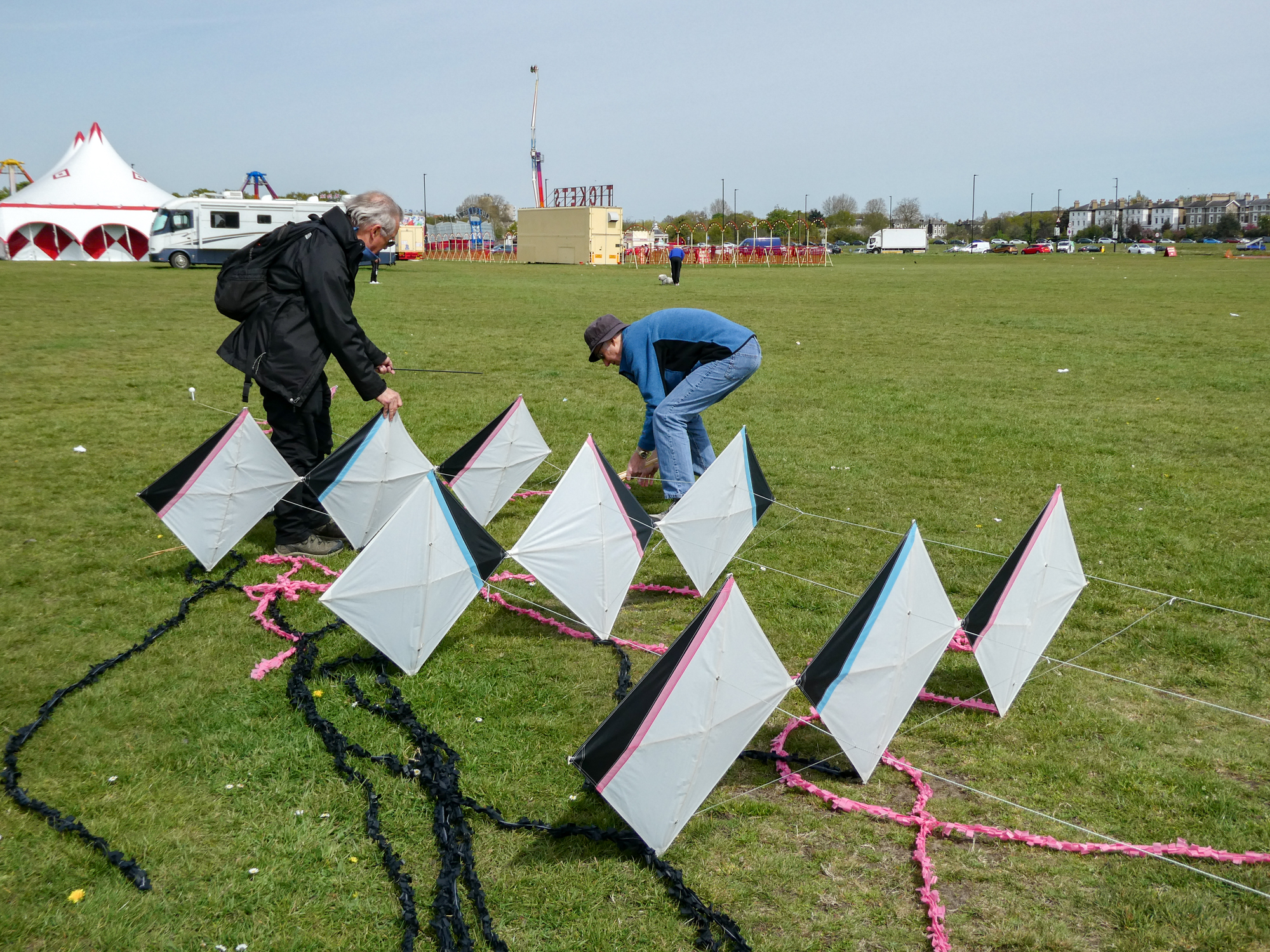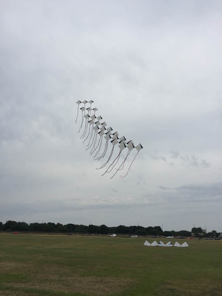 The two stacked kites were prepared for the afternoon session, launched together and walked into the arena.
