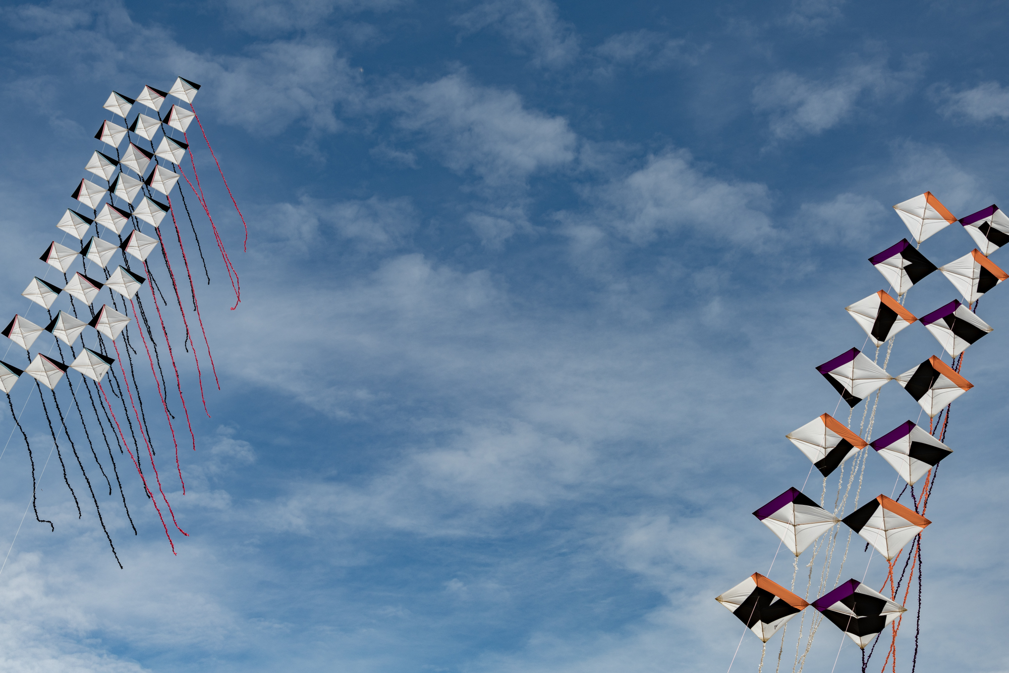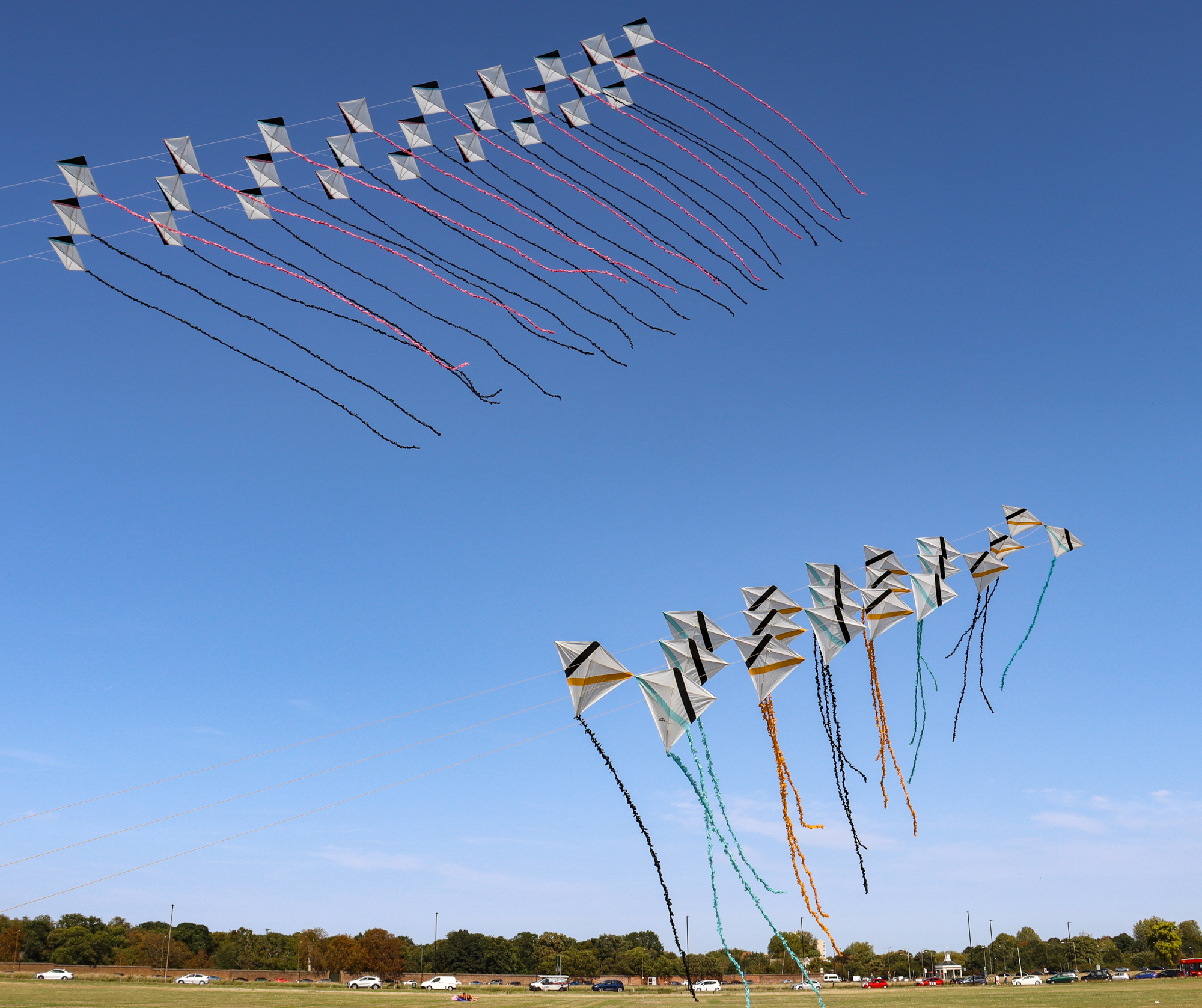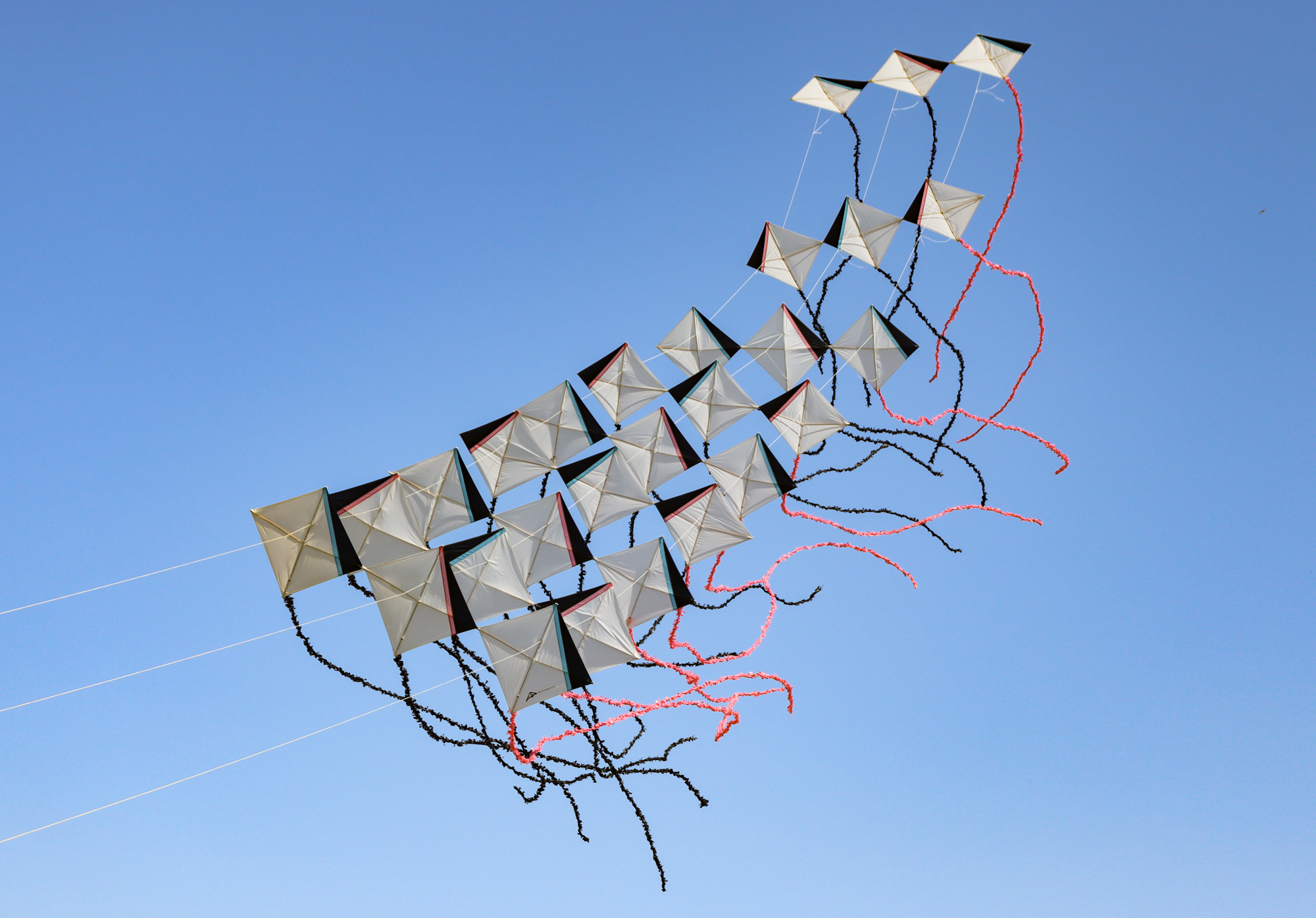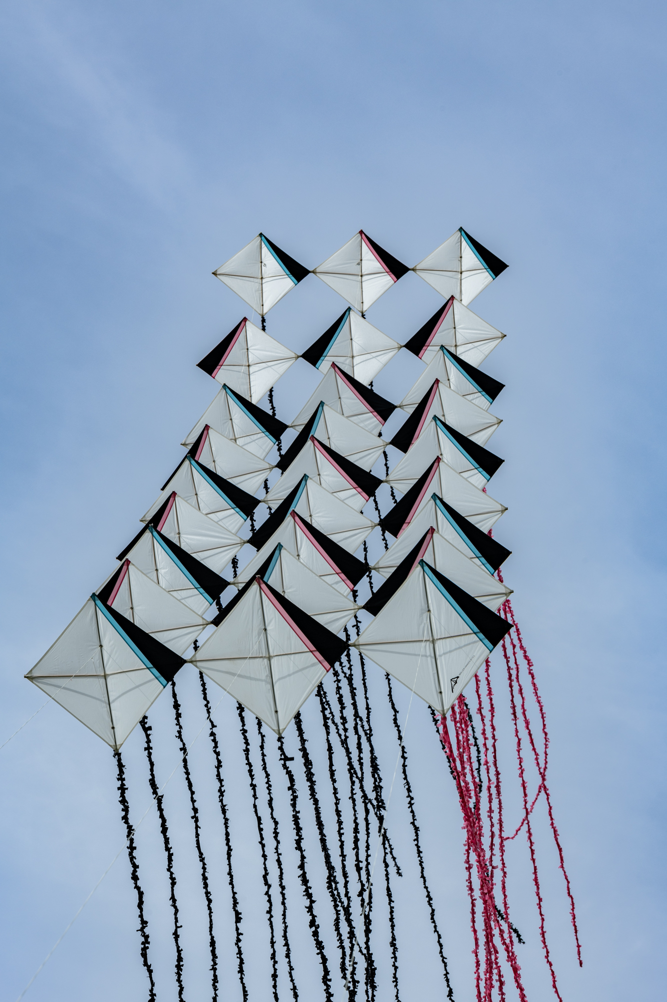 The two stacked kites were prepared for the afternoon session, launched together and walked into the arena.