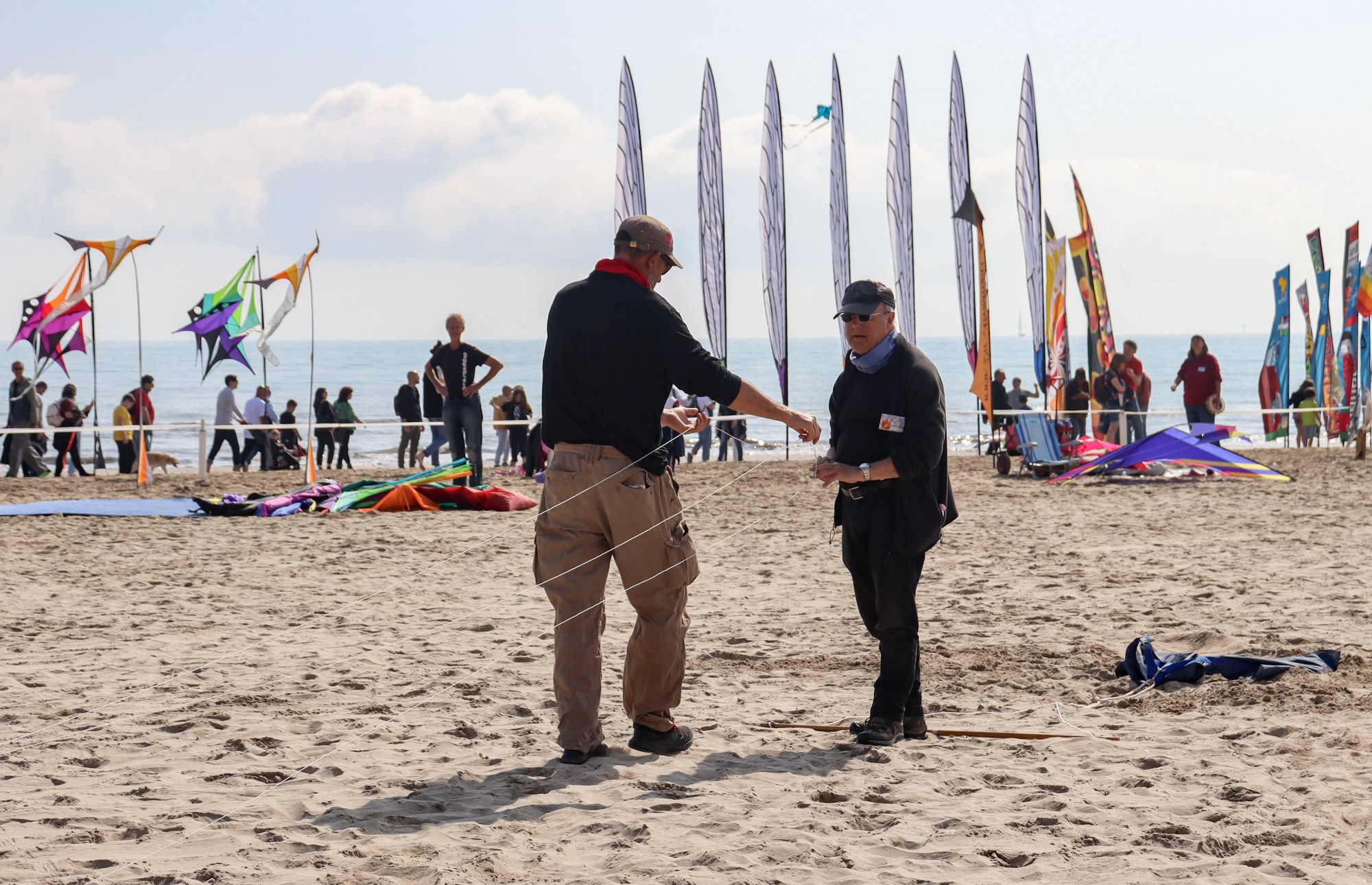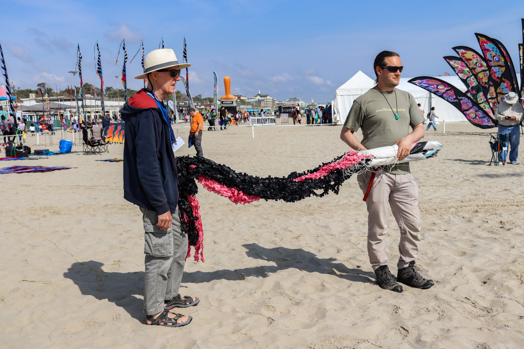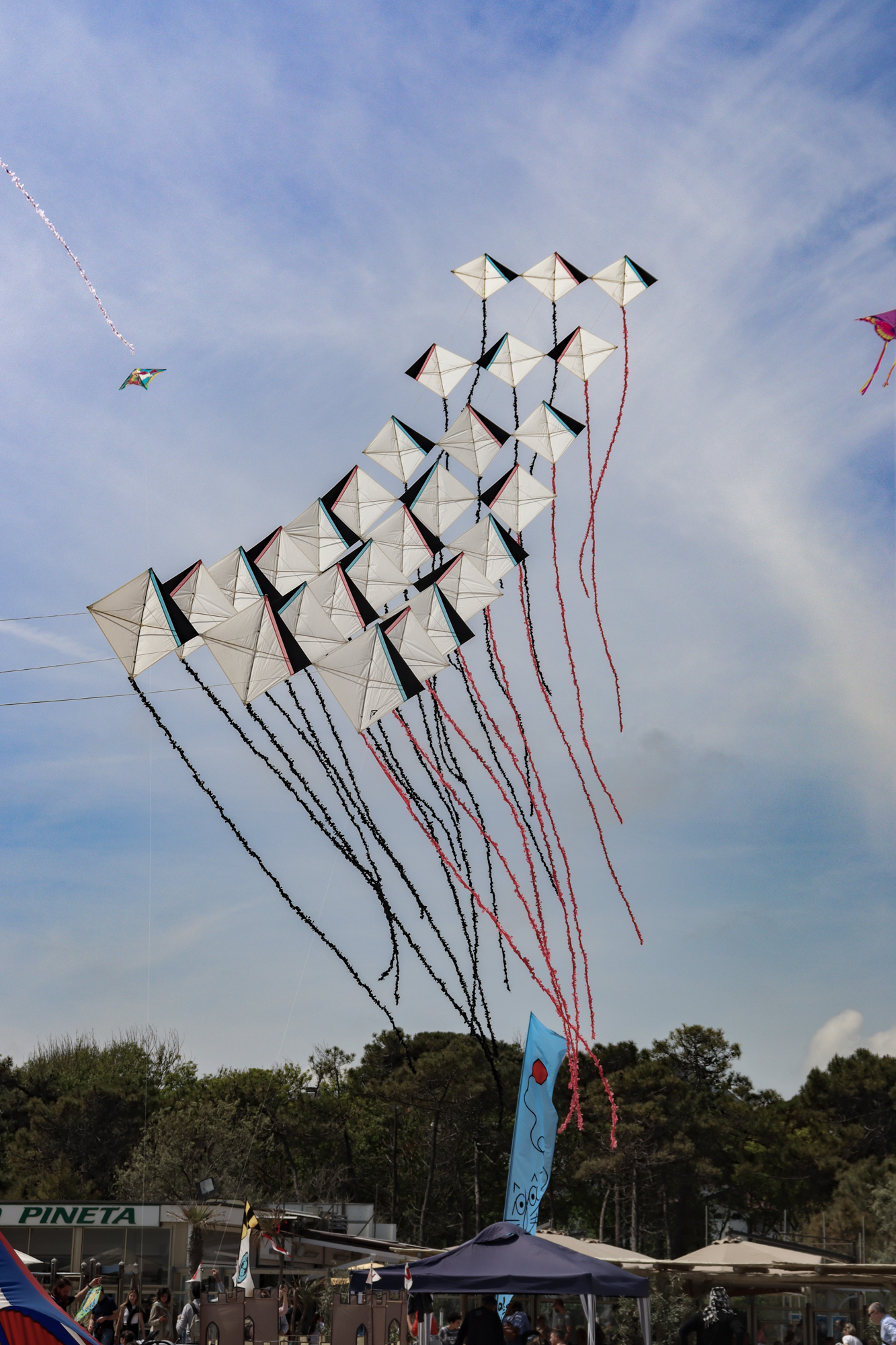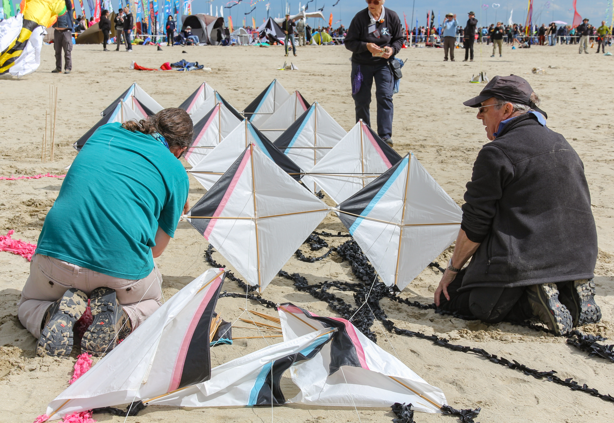 The two stacked kites were prepared for the afternoon session, launched together and walked into the arena.