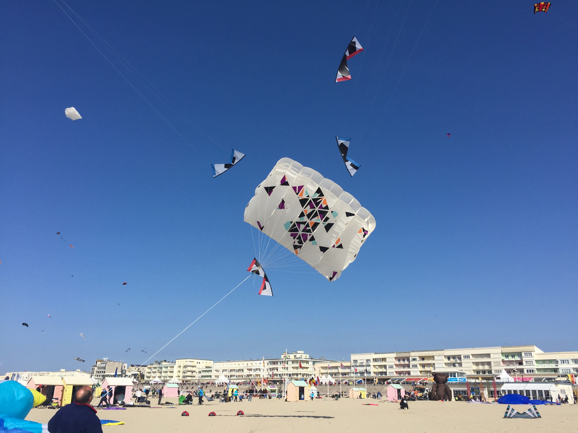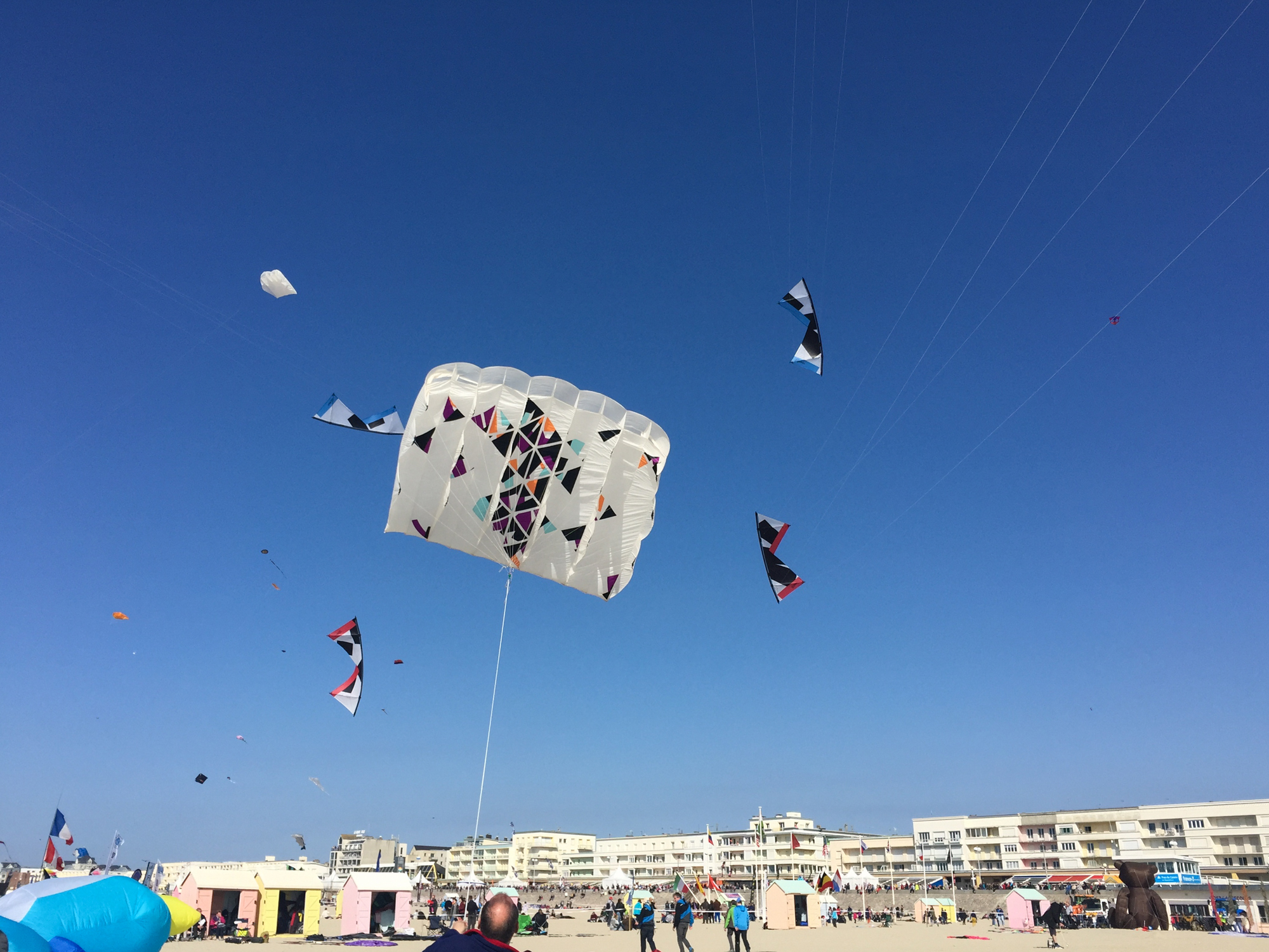 This was the first time the team had a chance to fly the new Zen proportioned sails fabricated by Martin Lester using the 1994 Rev1 graphic by Jørgen. In the event there was not even time to fly the kites before we were called for an arena spot.