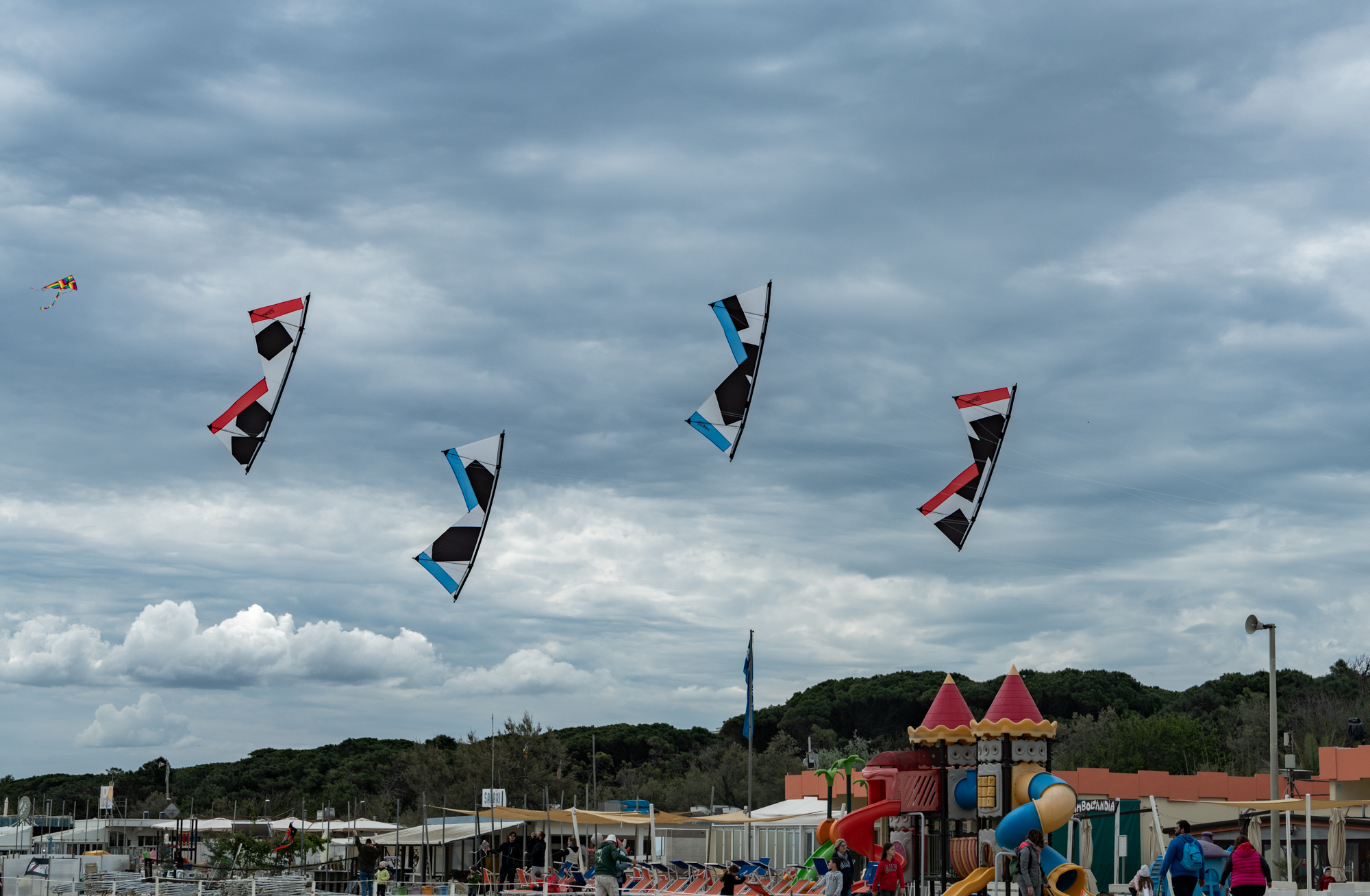 The weather for the first day at Cervia was forecast to be difficult but we did get a good fly with the 1997 Jørgen Møller Hansen design Rev 1.5 sails.