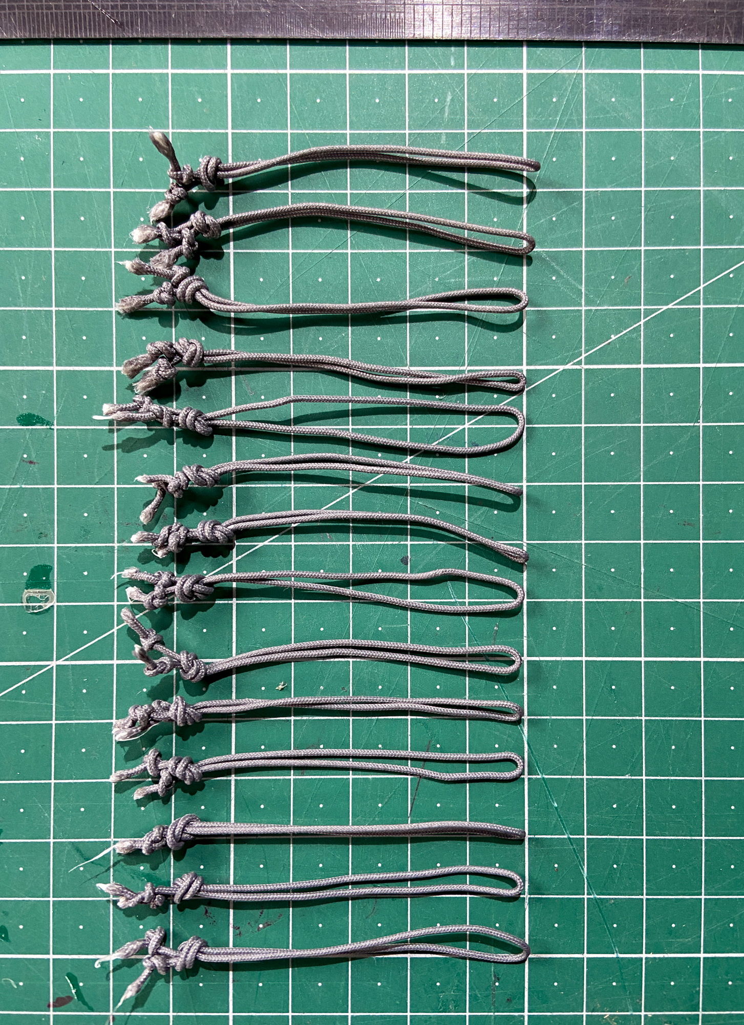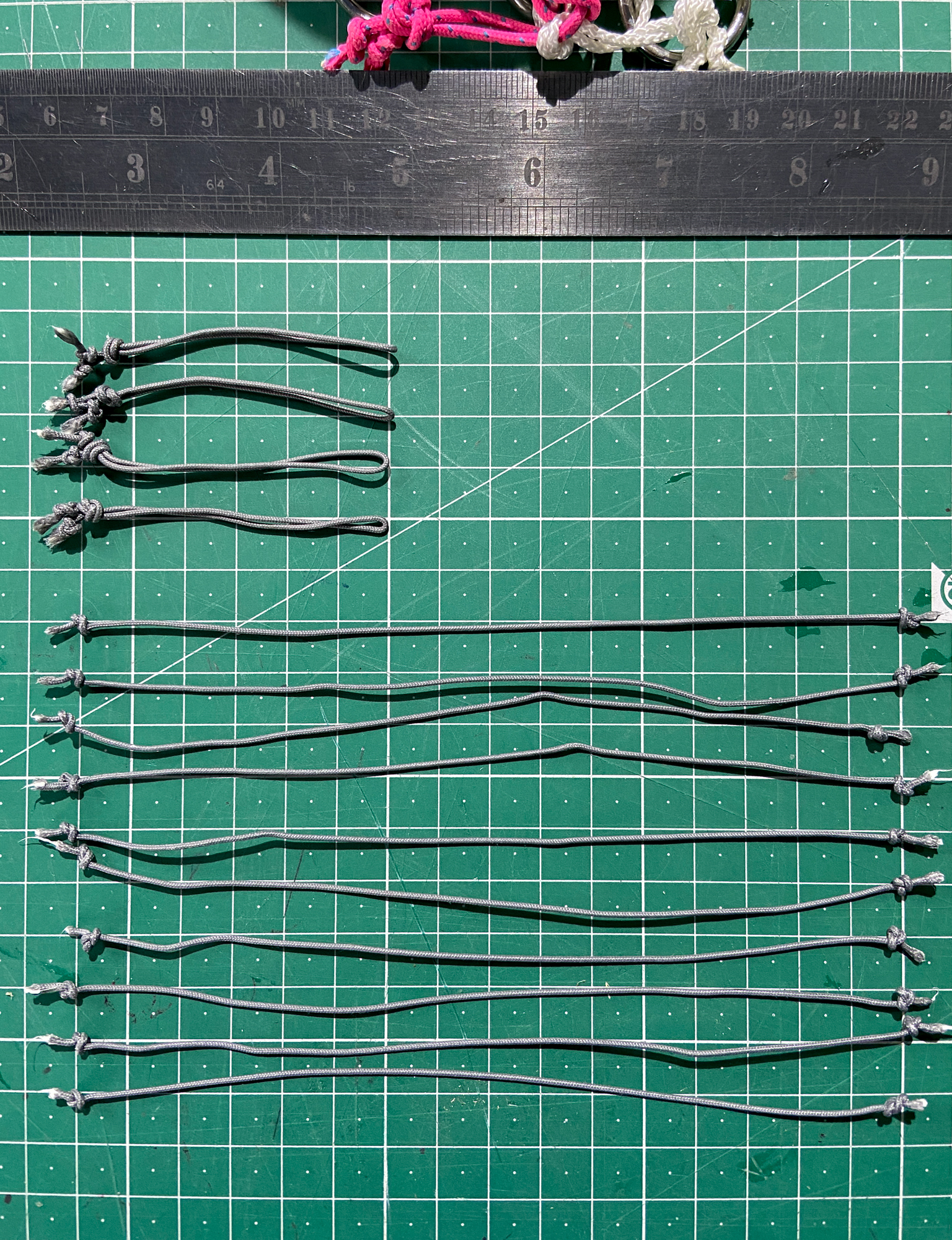 Prusik loops made out of 20cm lengths of Climax 'High Quality Filament'