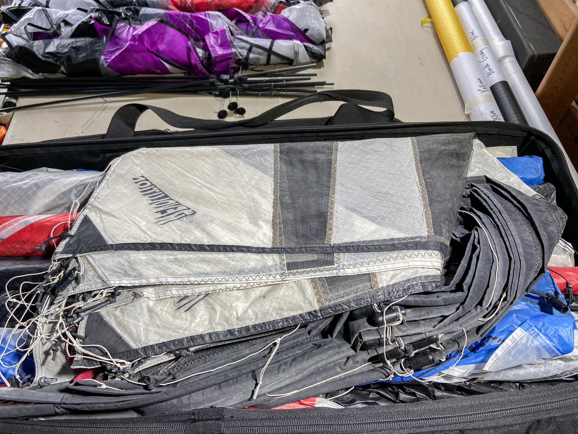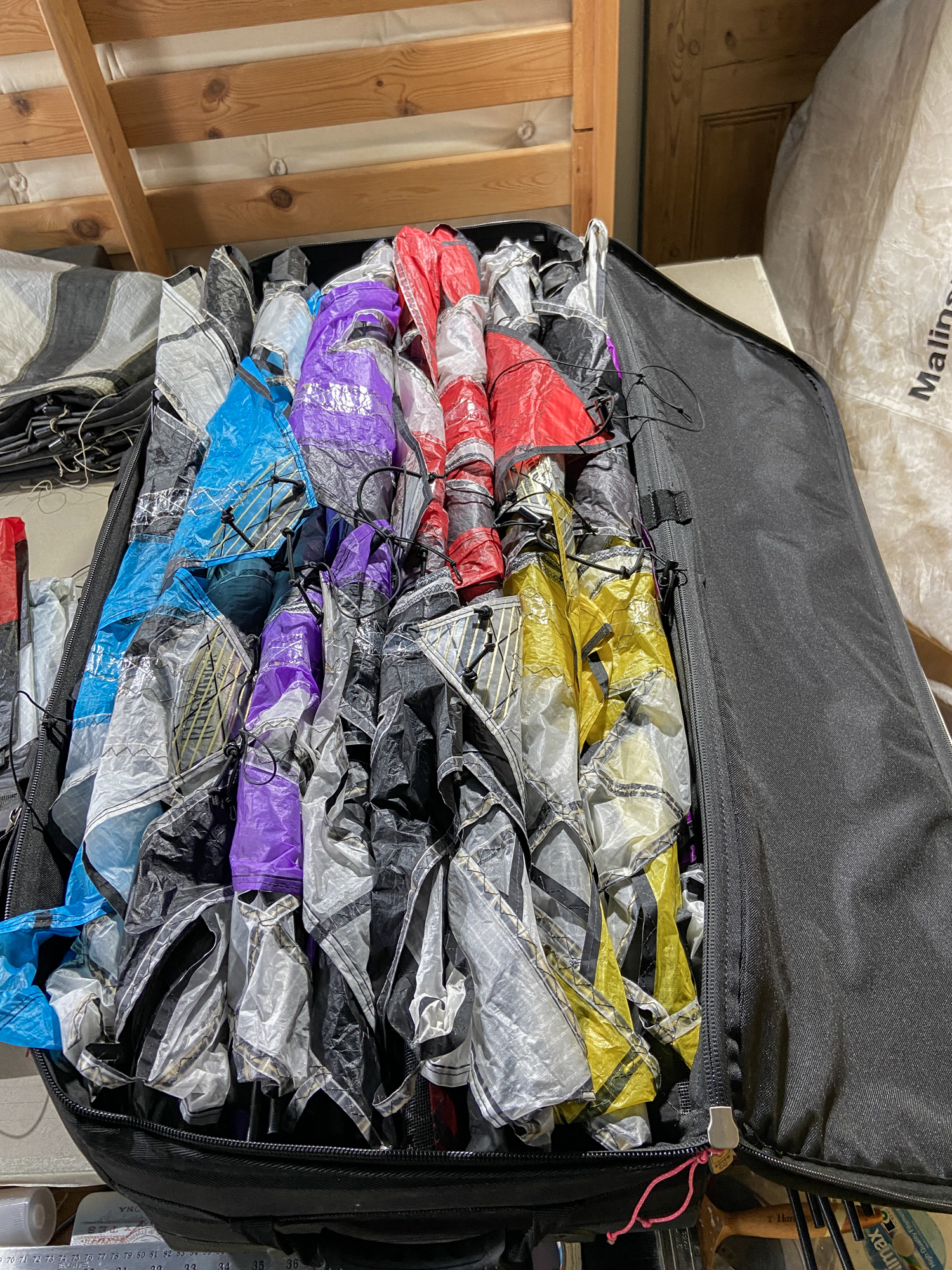 8 spare RSS spars plus green race sets for black sails --- Confirmed 10/04/2024. FJM Kites Bag