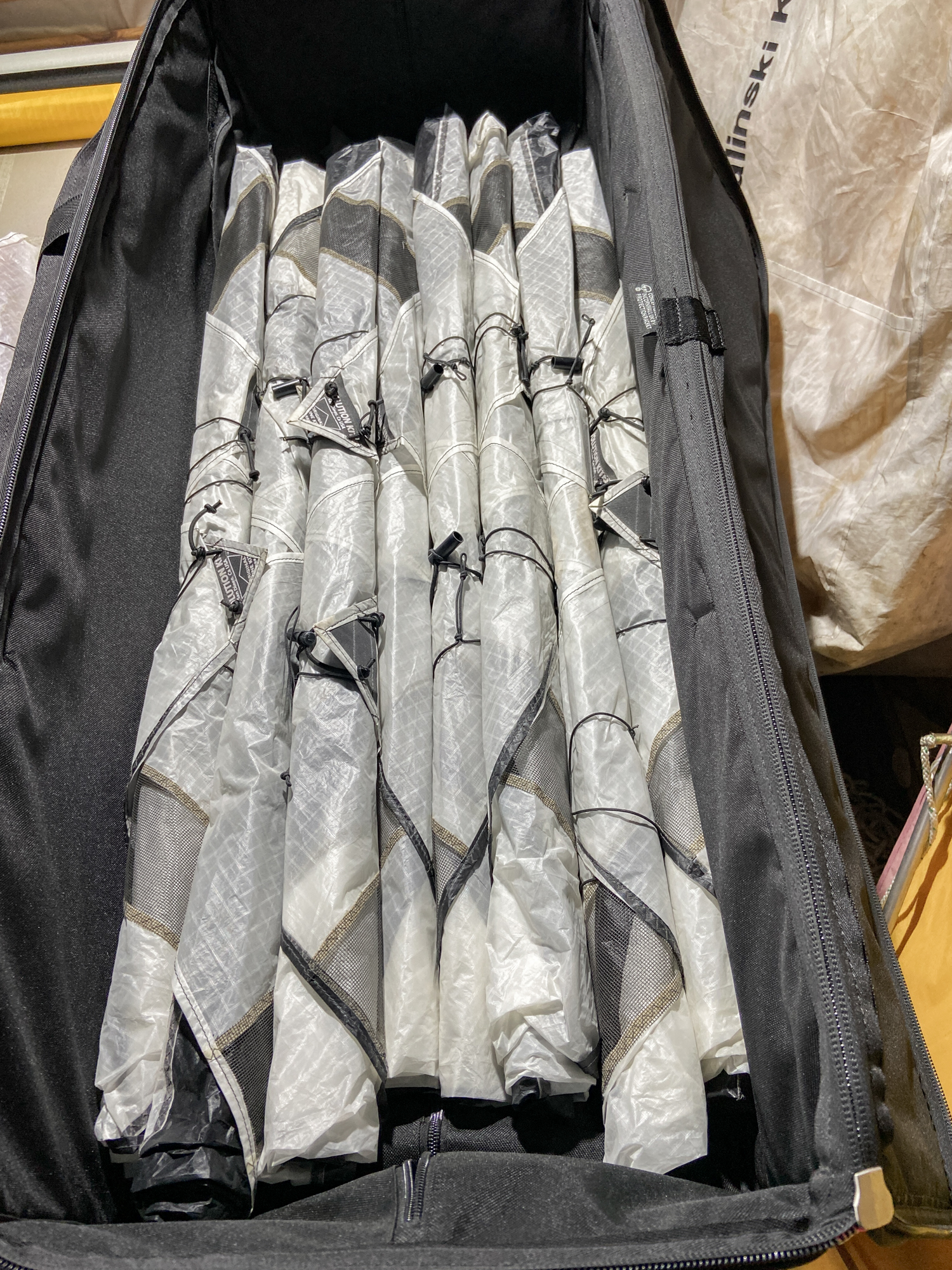 A final decision will have to be made regarding which parafoil will fit. Folded flat they do not take too much space but there really was not space, as at 10th April.