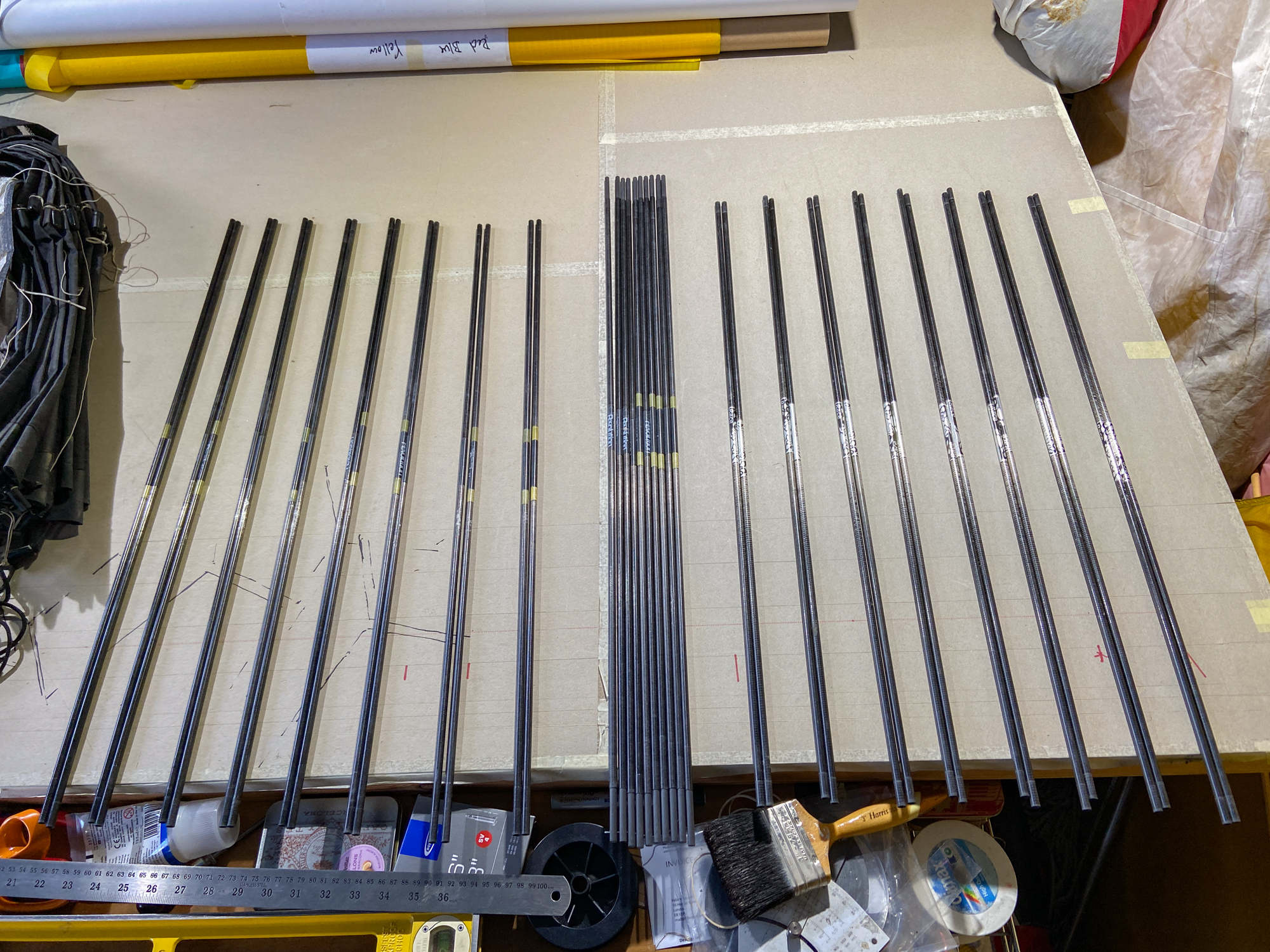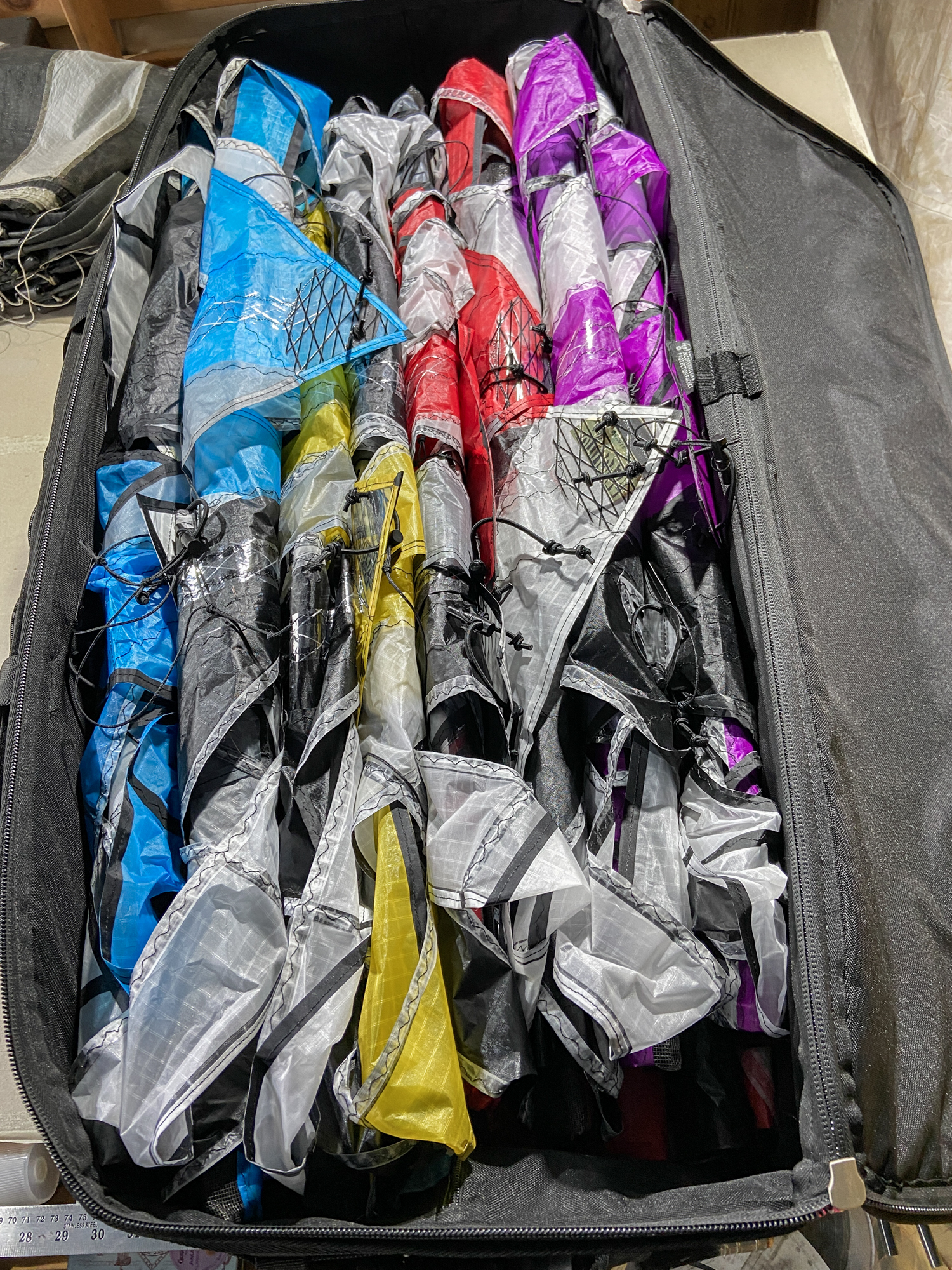 16 sets Not Zens spars, race and green race. (standard rods moved to FJM Kite Bag) --- Confirmed 10/04/2024. JMH Kites Bag