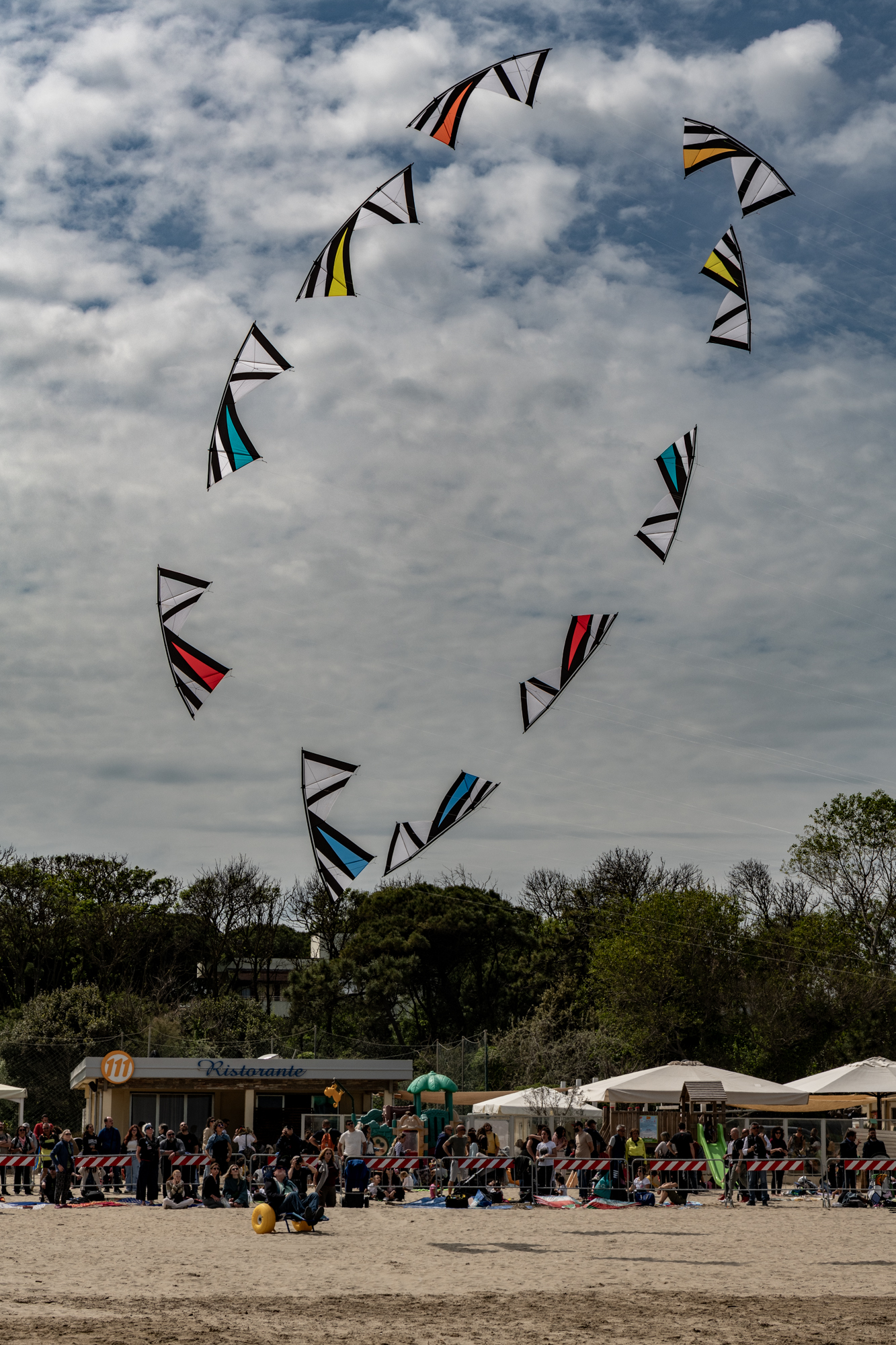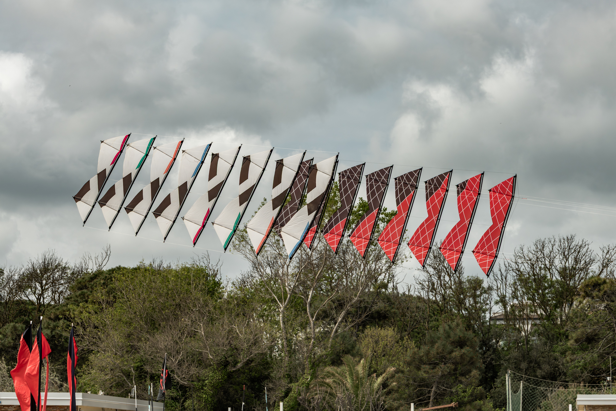 The 2008 Decs set needs some further adjustment as there are a few loose link lines and the final two kites are not engaging fully.