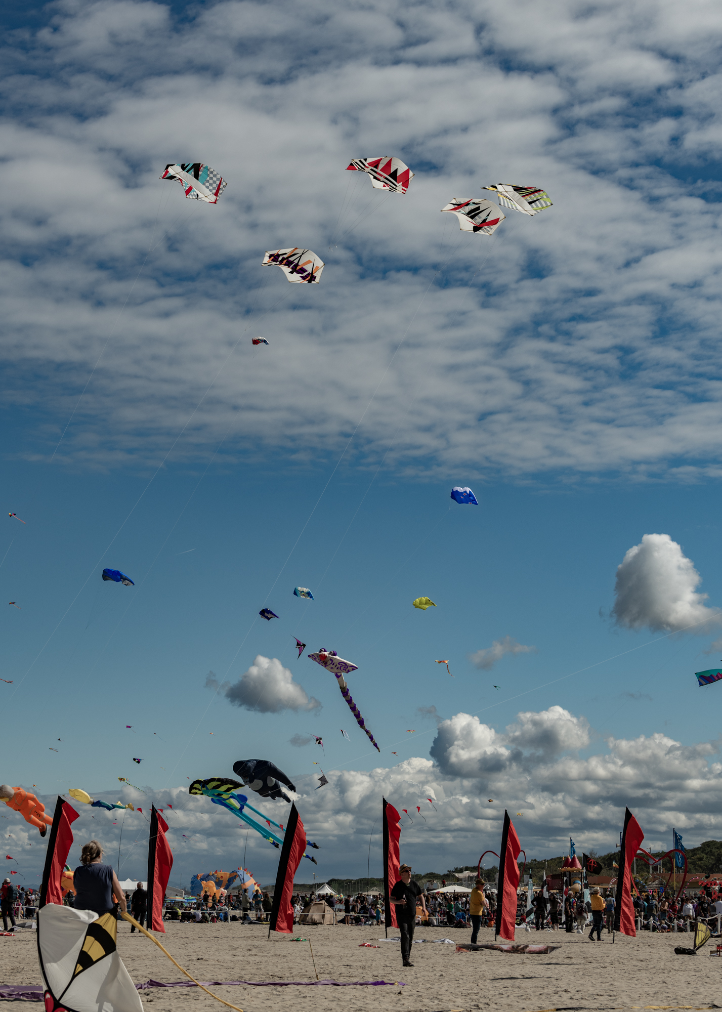 The wind conditions were near perfect and so the kites did not need to be worked in the sky. This was good because the fliers were not all experienced with flying large rokkaku kites.