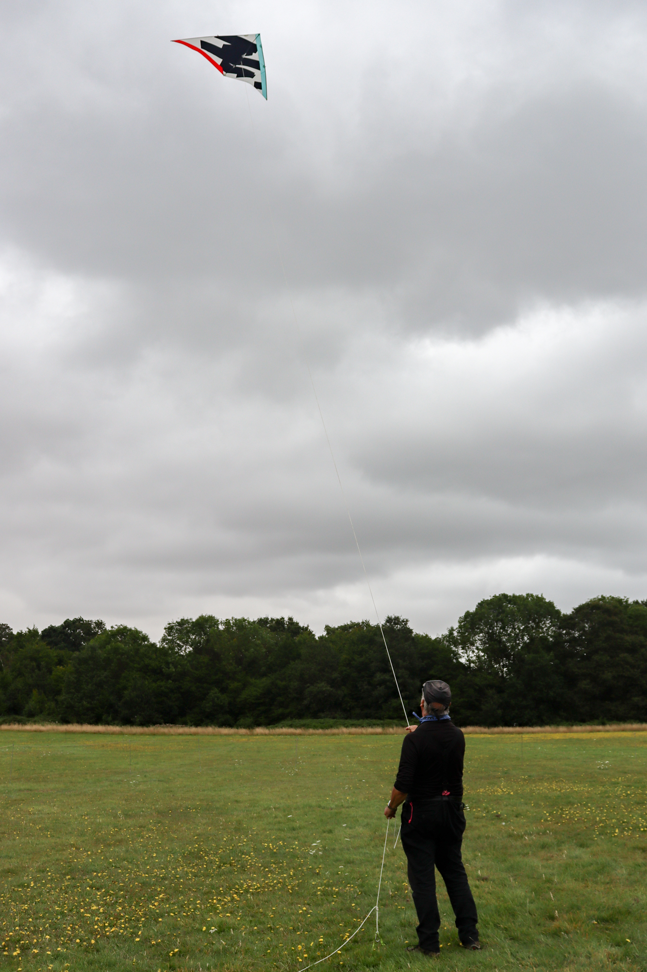 Flying the Delta on 5mm polyester worked well with the 100ft/30m marked line. The wet line did not generate friction heat so could be run through the hands freely. The heavy spars coped with the abrupt changes in effective wind speed and despite the damp it was a pleasure to fly the kite.