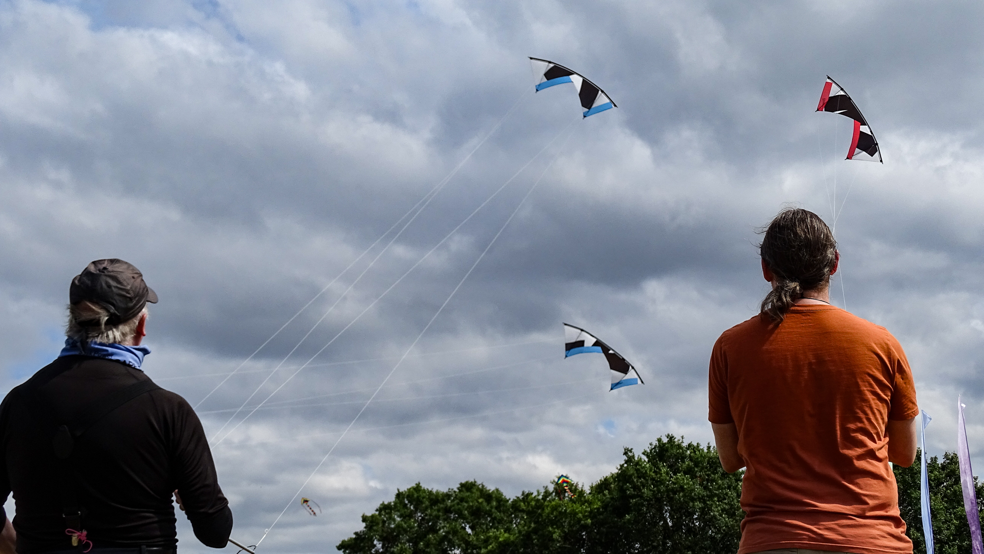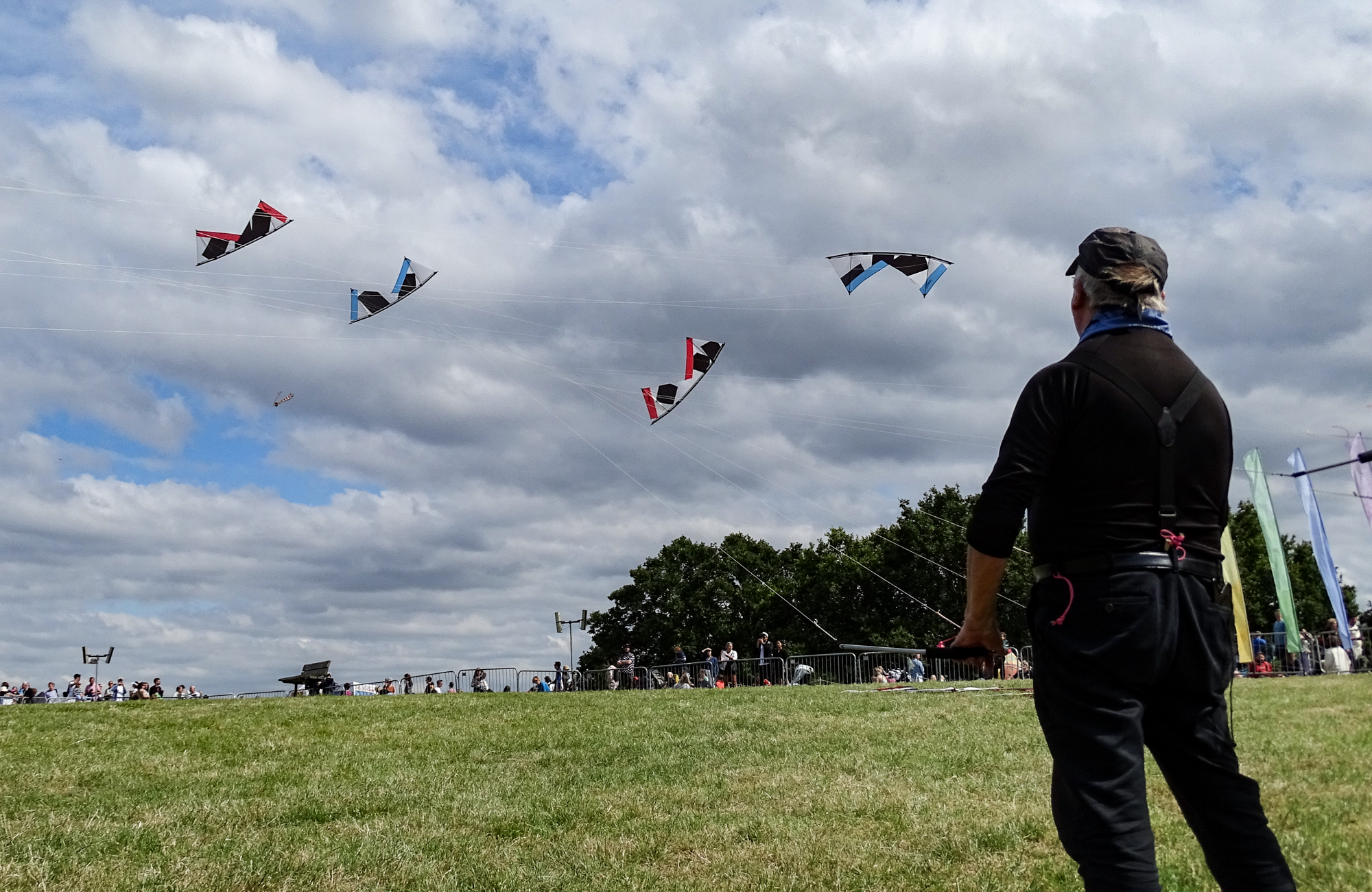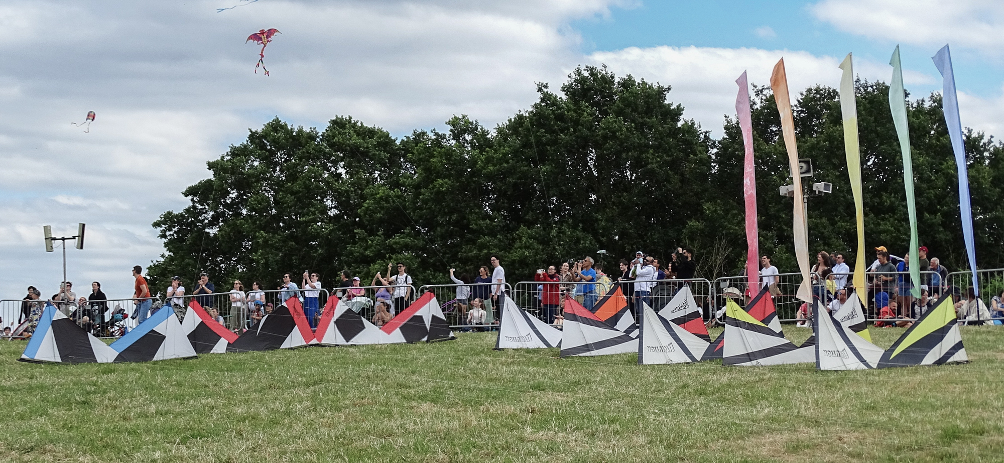 We took a selection of Jørgen Møller Hansen kites but the conditions and the proximity of other struggling fliers meant that we focused on flying the team kites on 100ft/30m lines and the Rev1 stack.