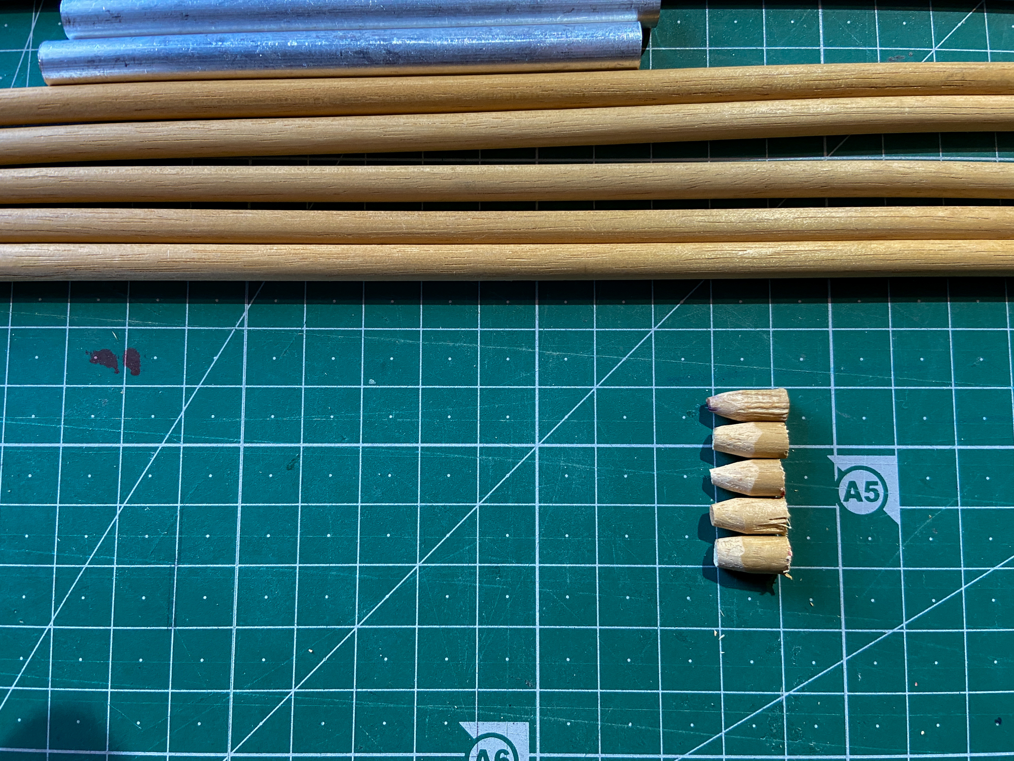 A jig was made to cut down the 6 x 30mm fluted dowels.
