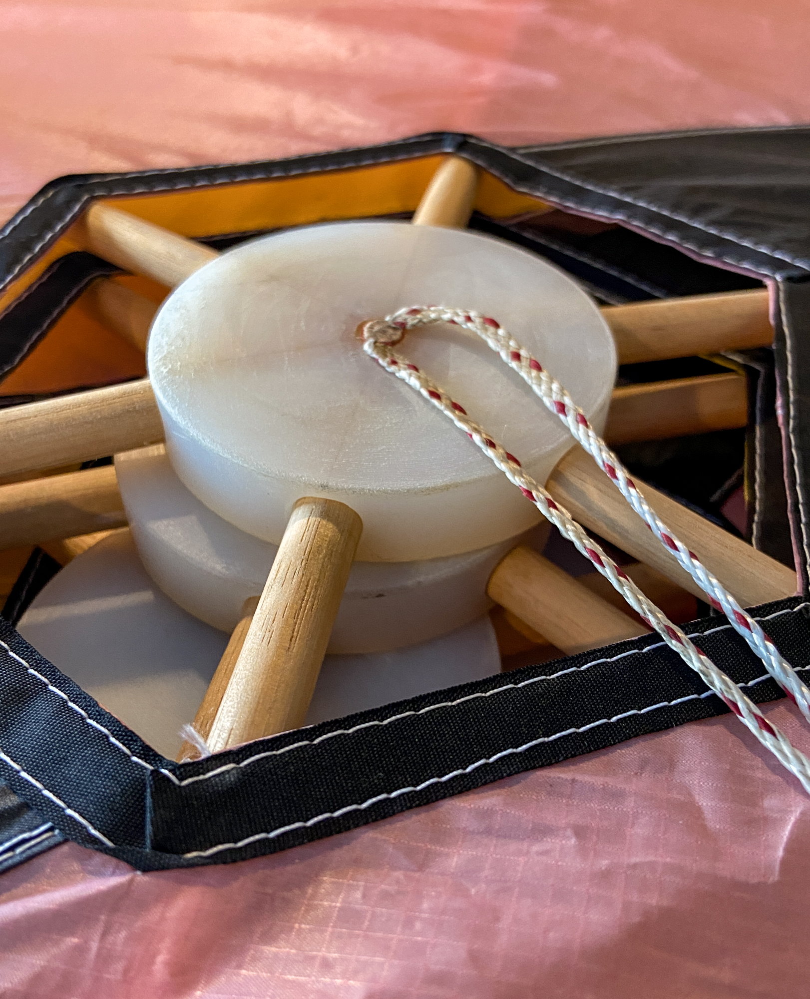 The main tying bar is tied to the leading kite for transit.