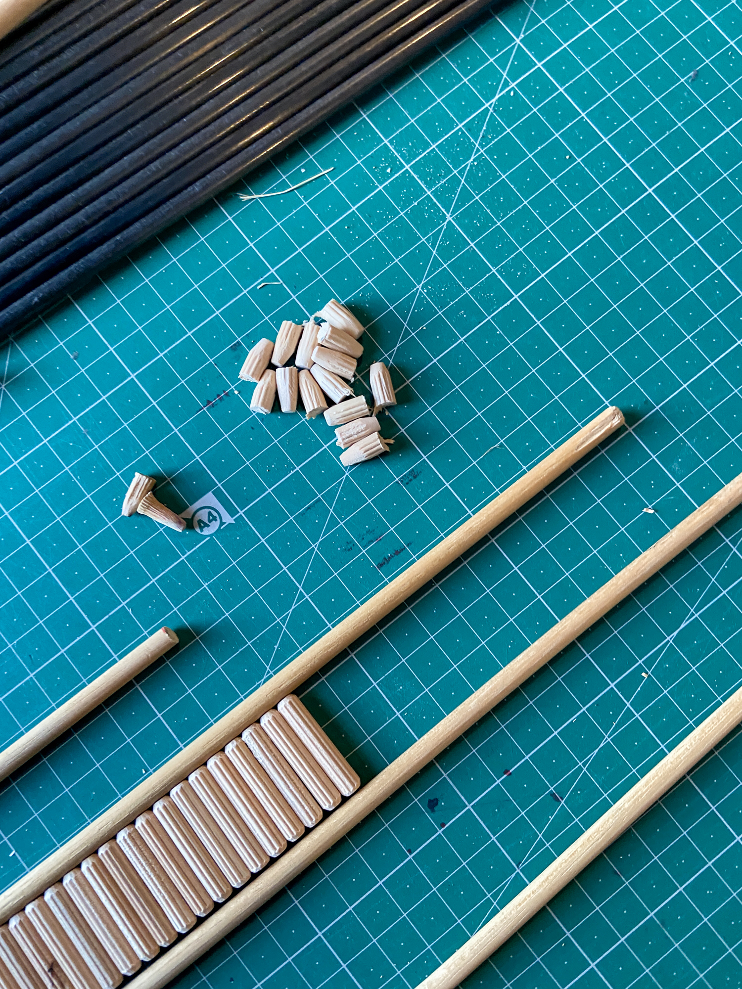 One was cut and fitted and then a few more were made and some fluted hardwood dowels ordered.