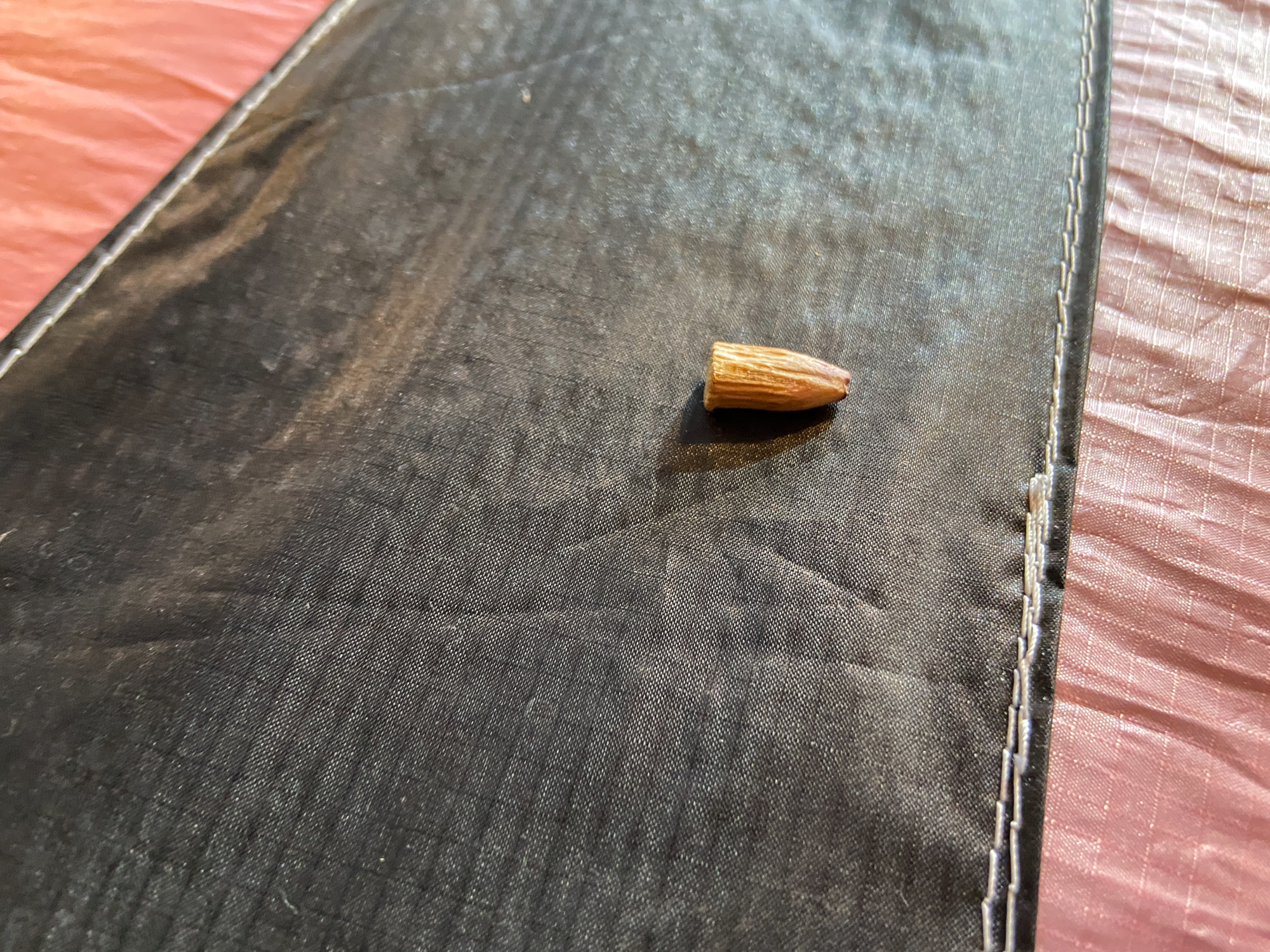 Silver gaffer tape marks final repair points for flying line attachment and punctured spar pocket.