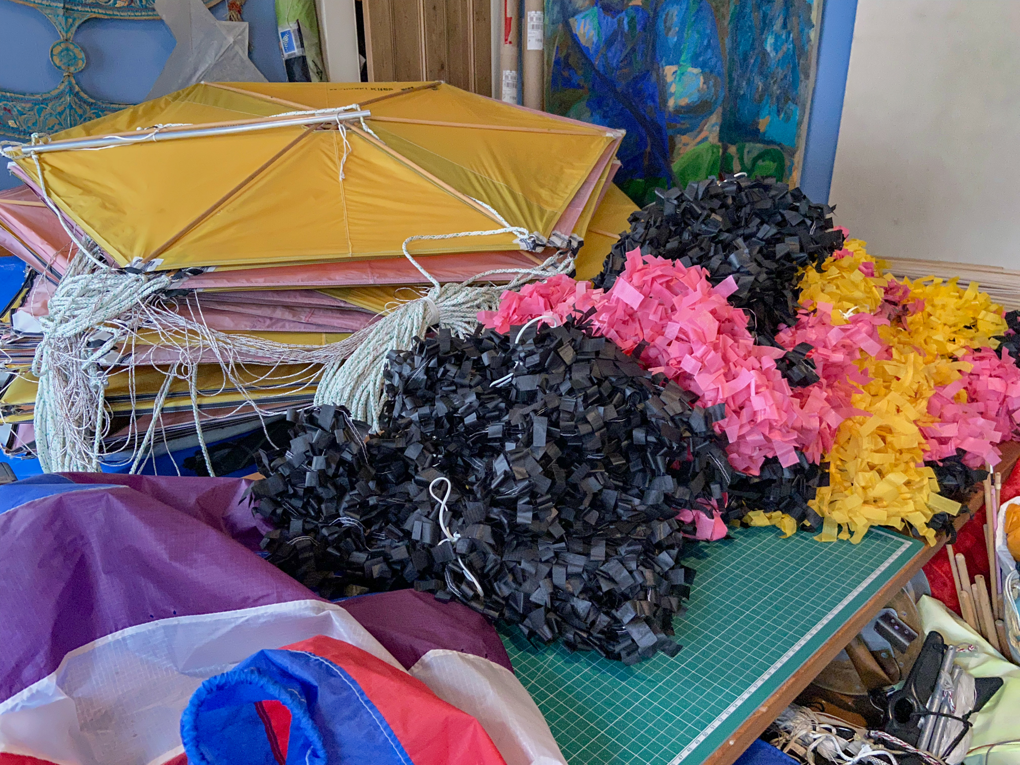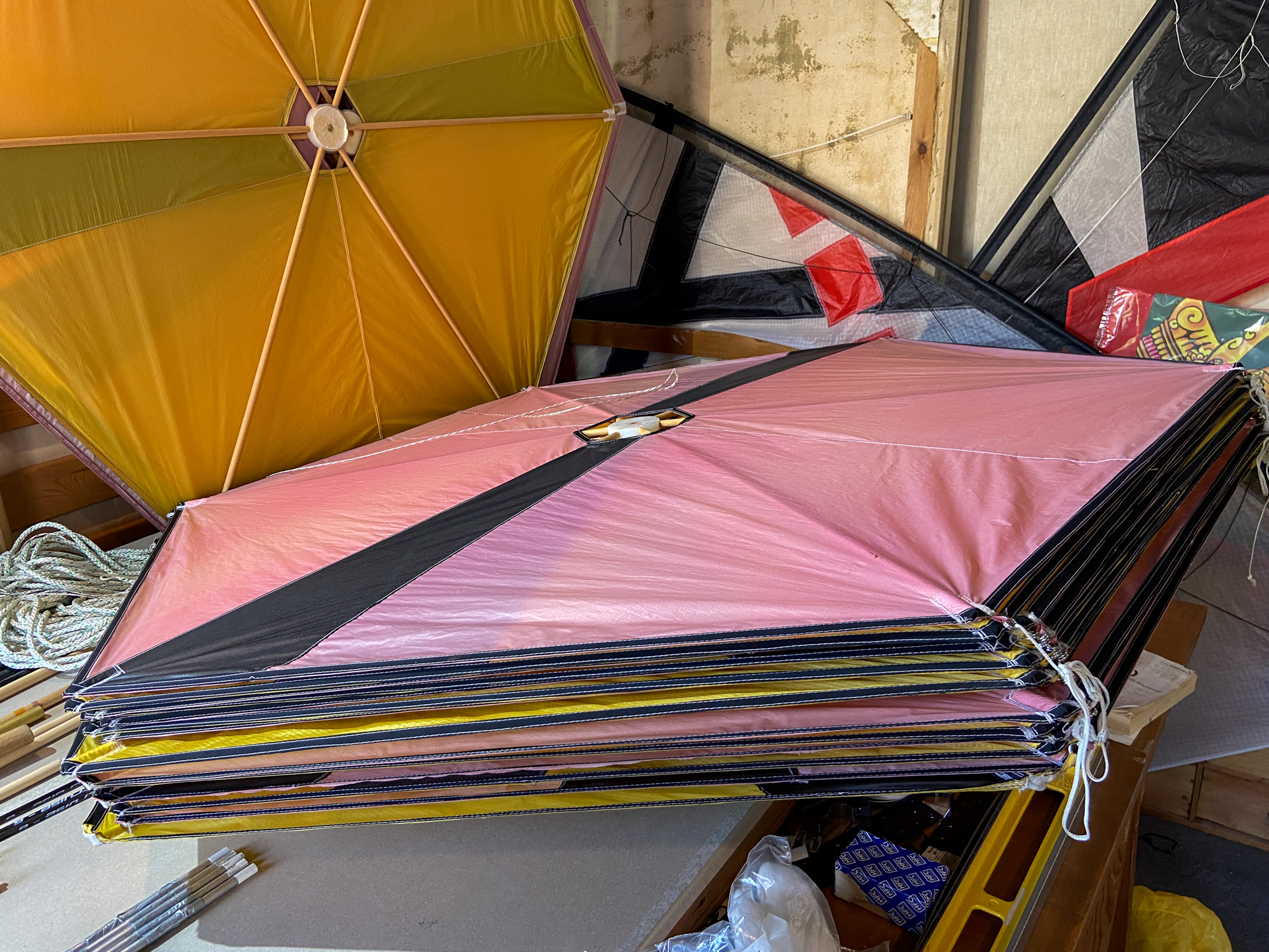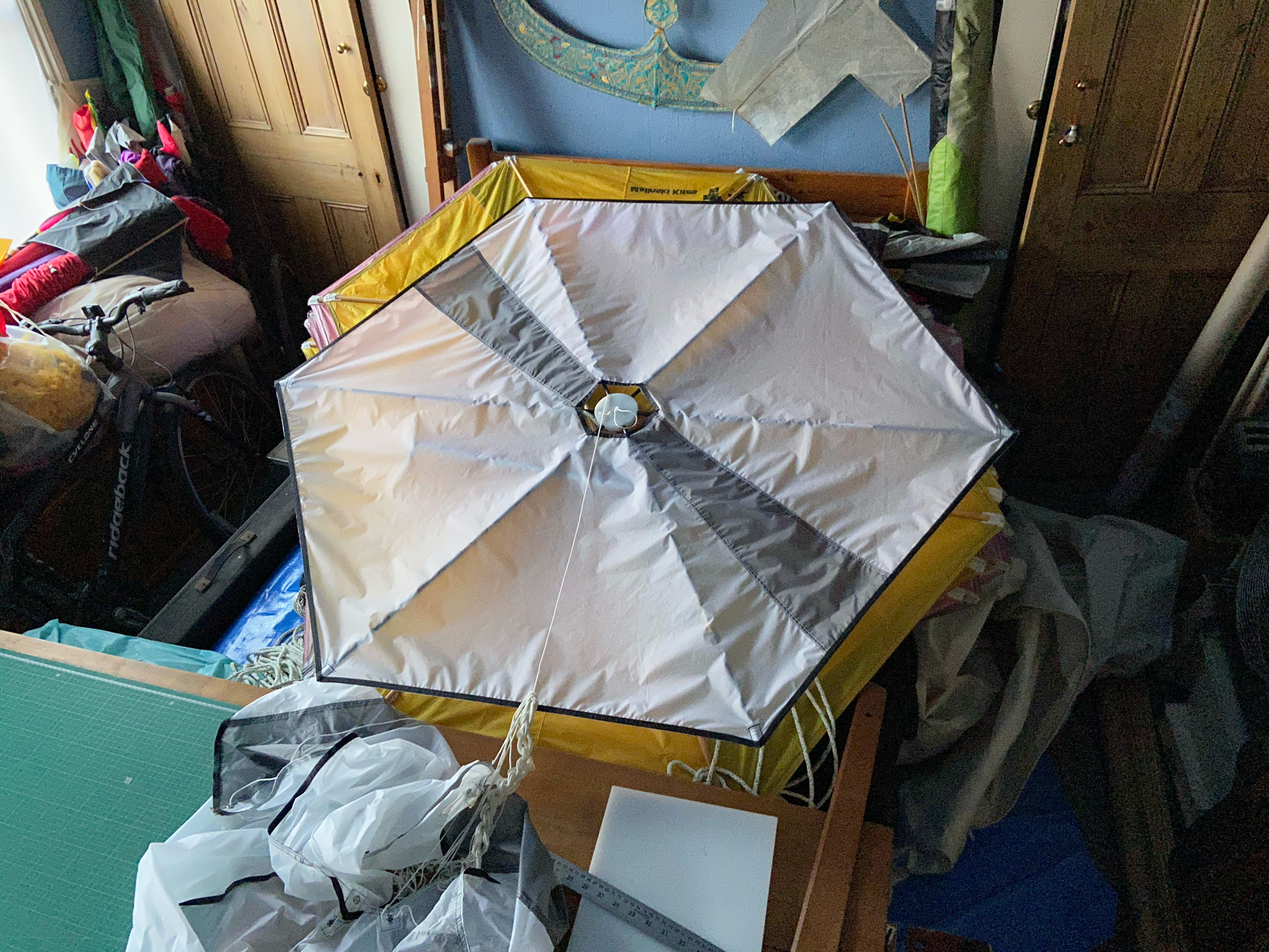 One yellow sail is missing and so a white and grey version will be made, like the pilot kite, to replace the missing element.
