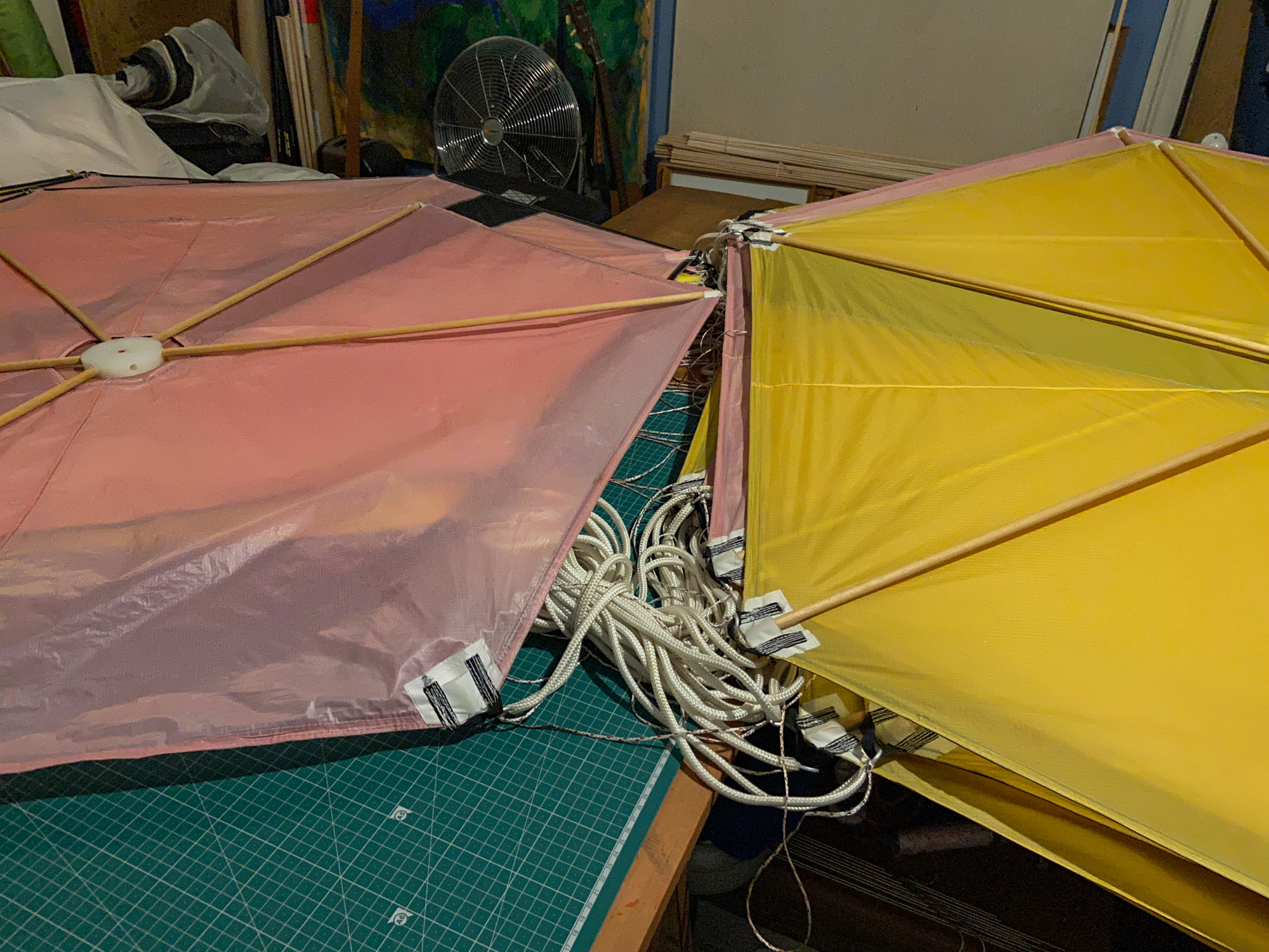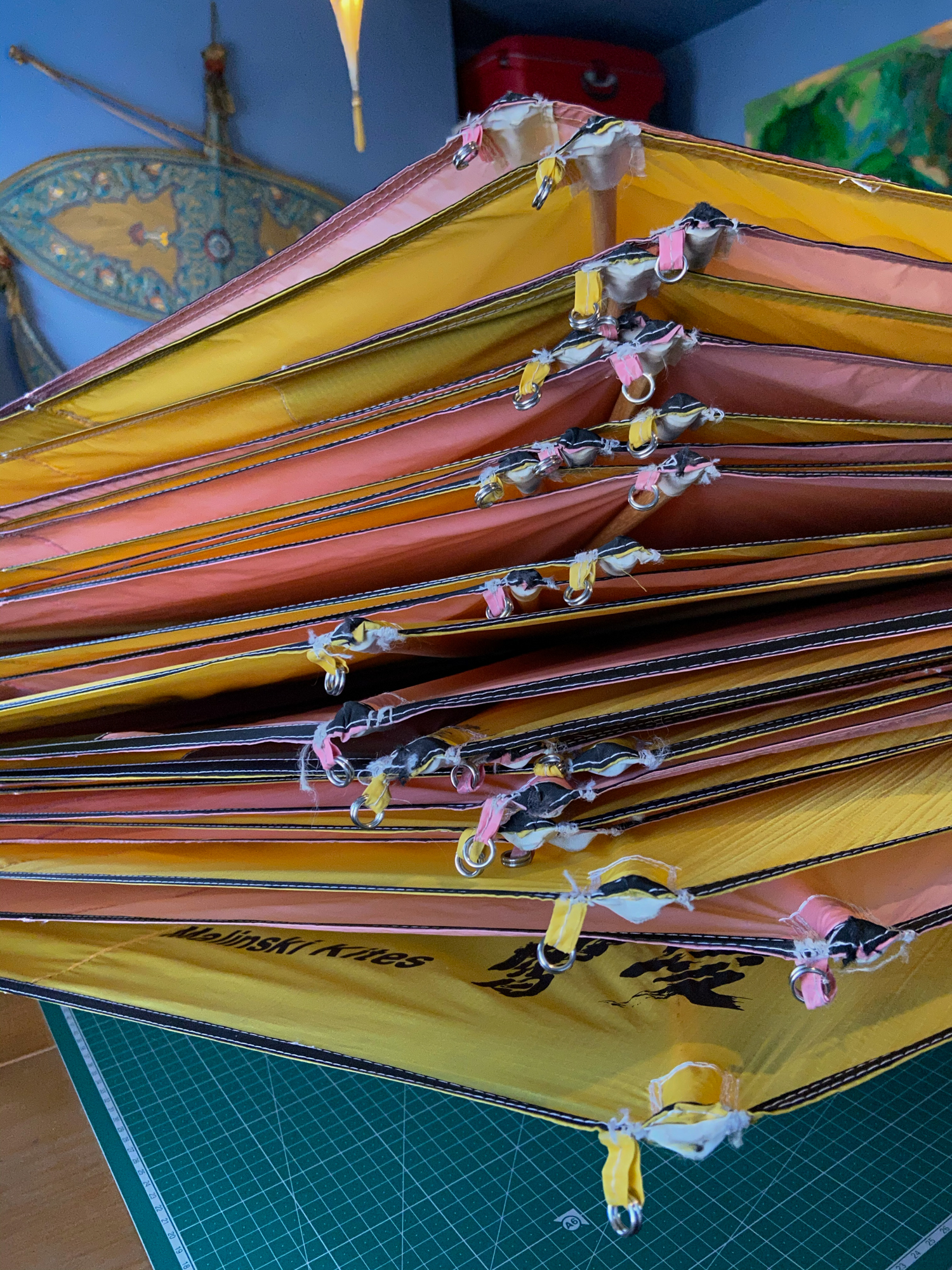 10 original spars were replaced with new ones and then the kites were prepared for the the final fixes to this set as at 30th January 2021.