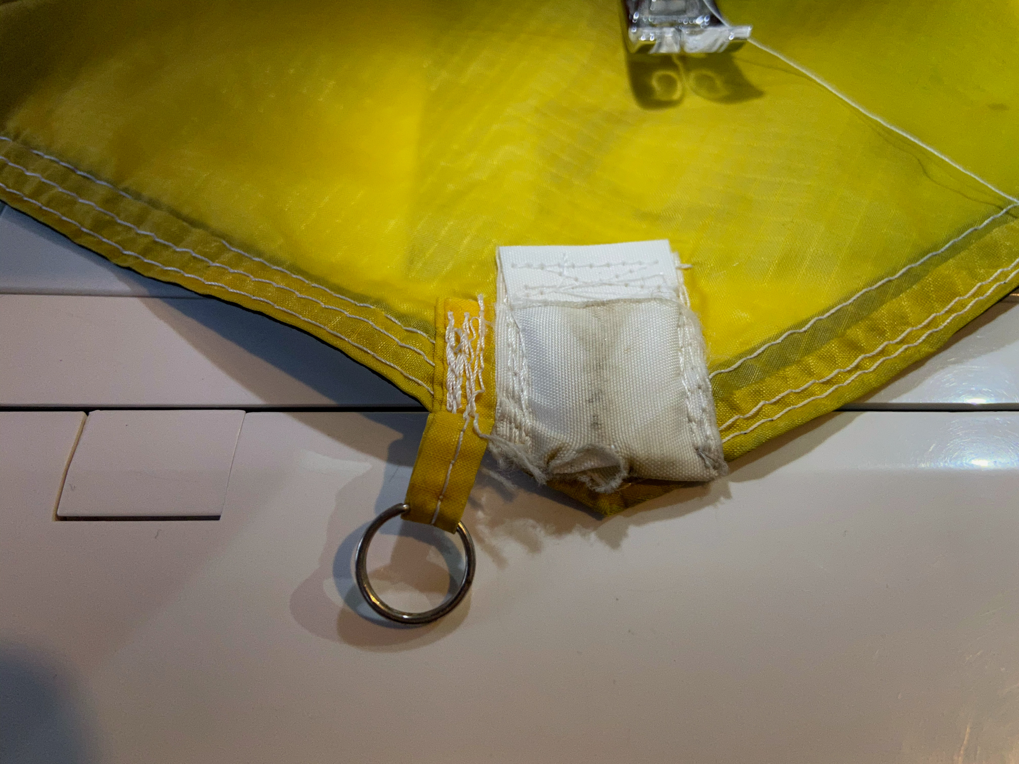 Split rings replaced and sails secured.